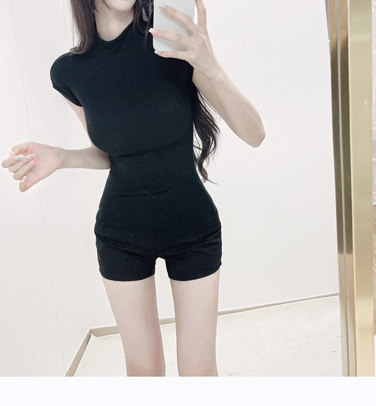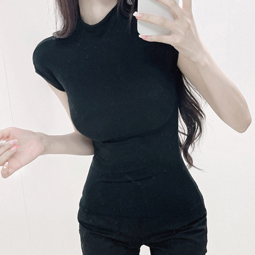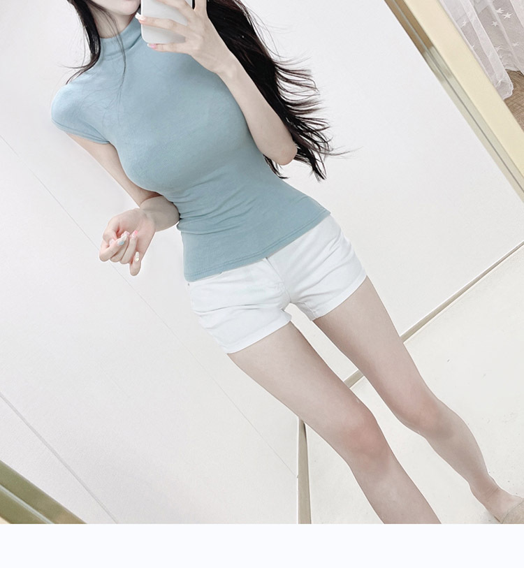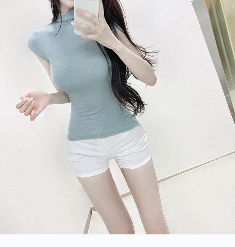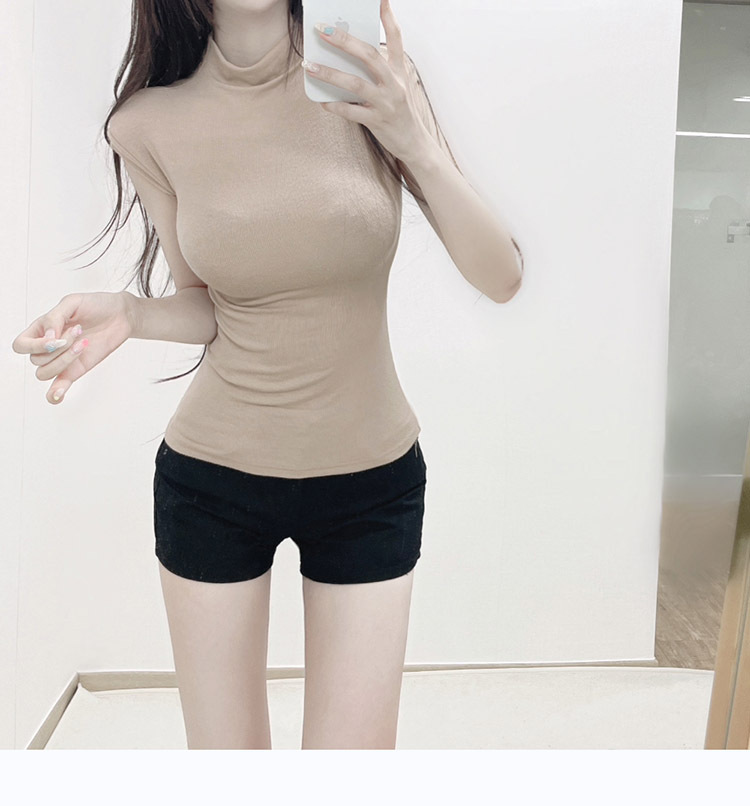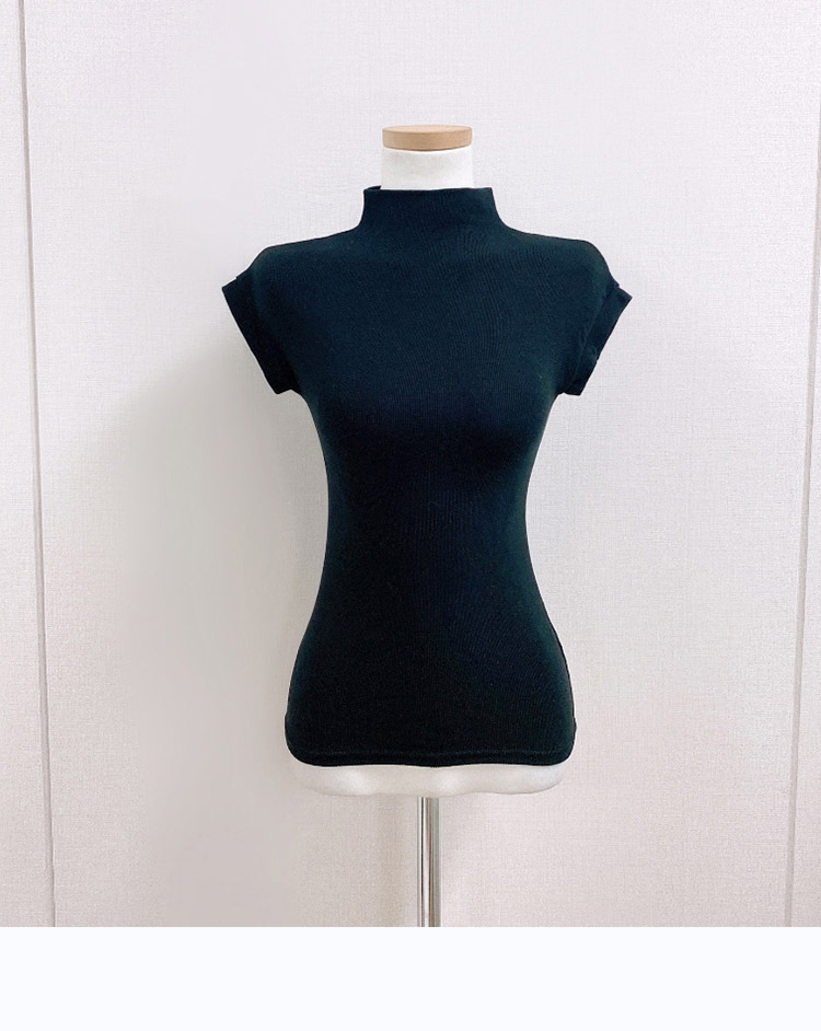 이른 가을 새로운 슬림 핏 슬리밍 탑 디자인 센스 니쉬 여성 우아한 하프 하이 칼라 한국 스타일 올 매치 쇼트 셔츠 여성스토어 가기