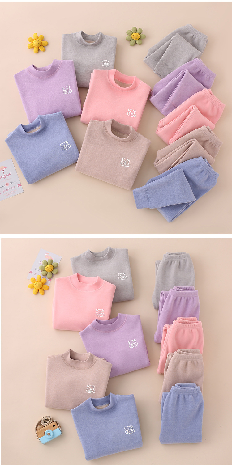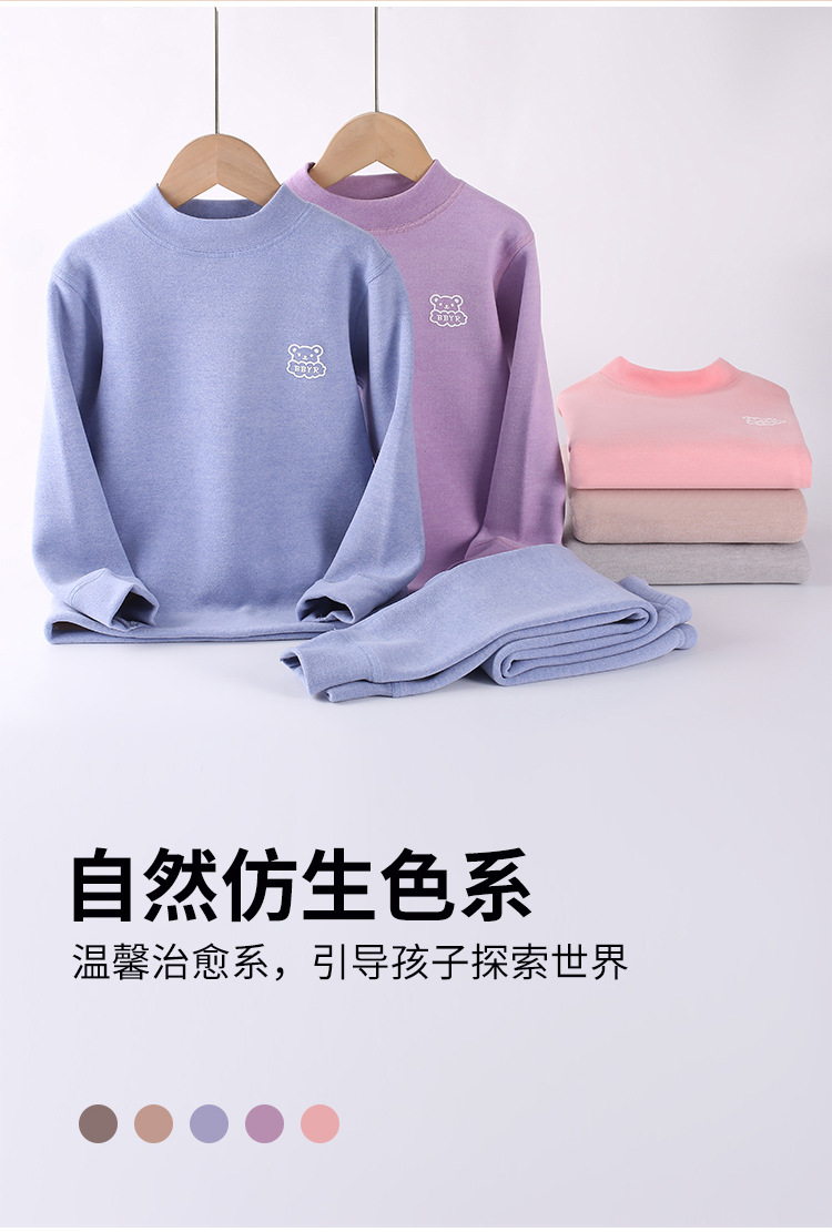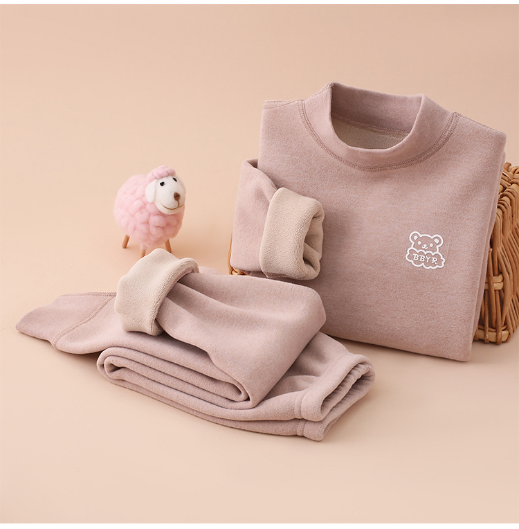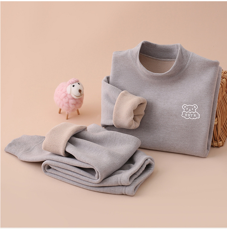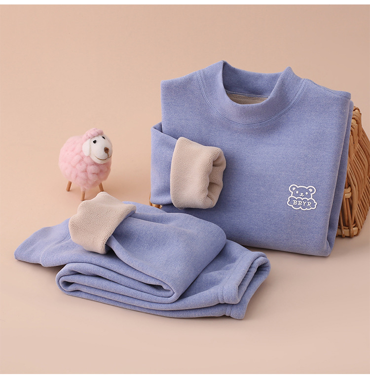 가을과 겨울 기모 아동복 어린이 안쪽 따뜻한 바닥 셔츠 큰 어린이 미드 칼라 가을 바지 어린이 홈 의류 세트