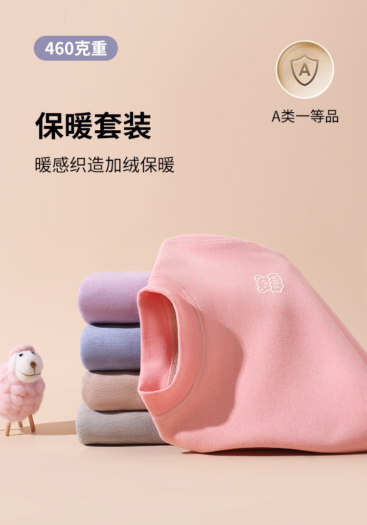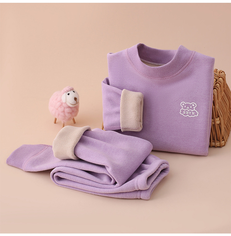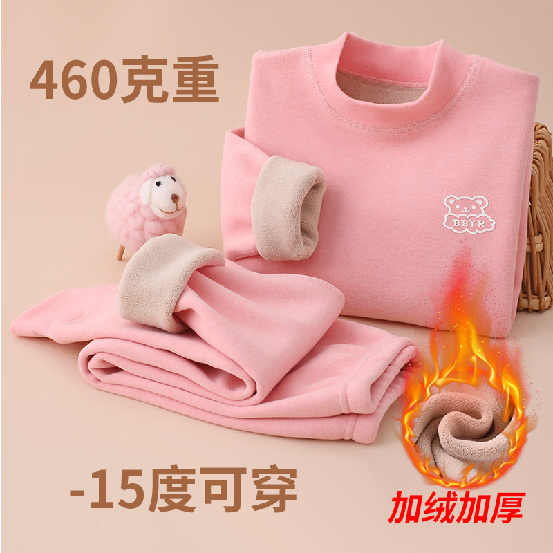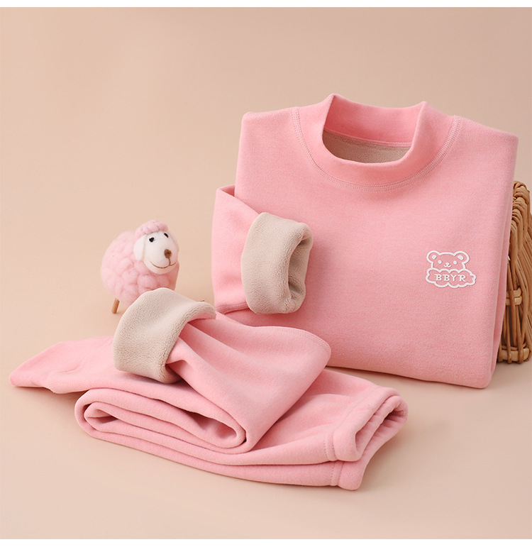 가을과 겨울 기모 아동복 어린이 안쪽 따뜻한 바닥 셔츠 큰 어린이 미드 칼라 가을 바지 어린이 홈 의류 세트