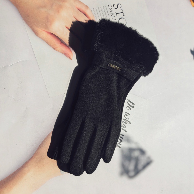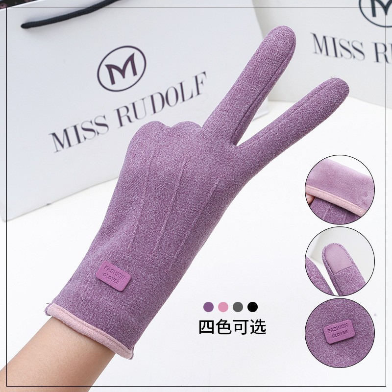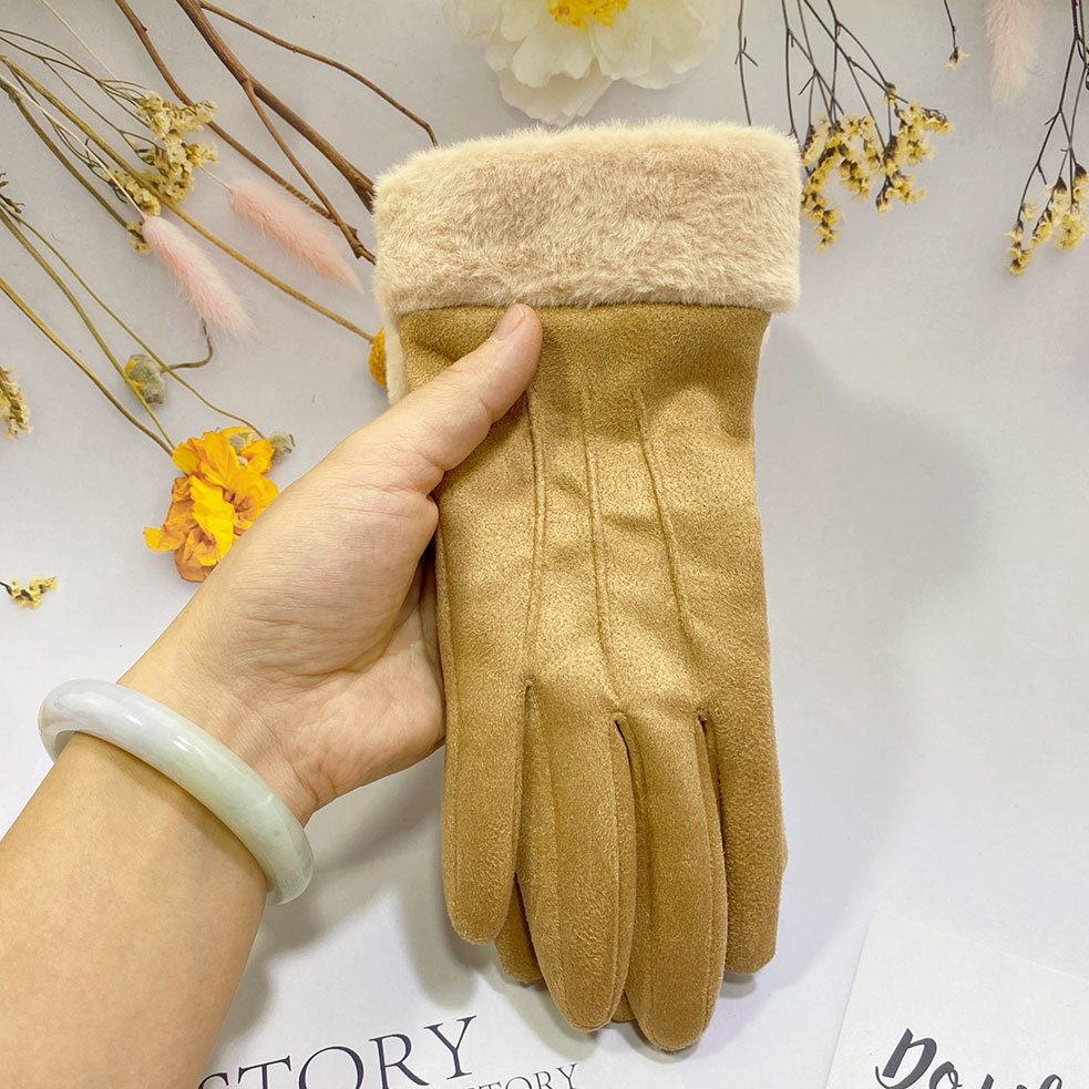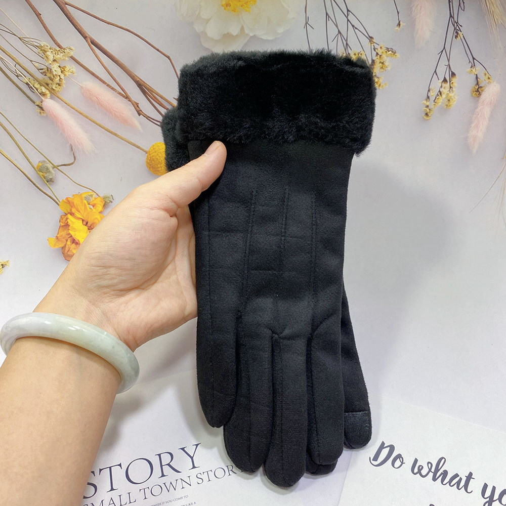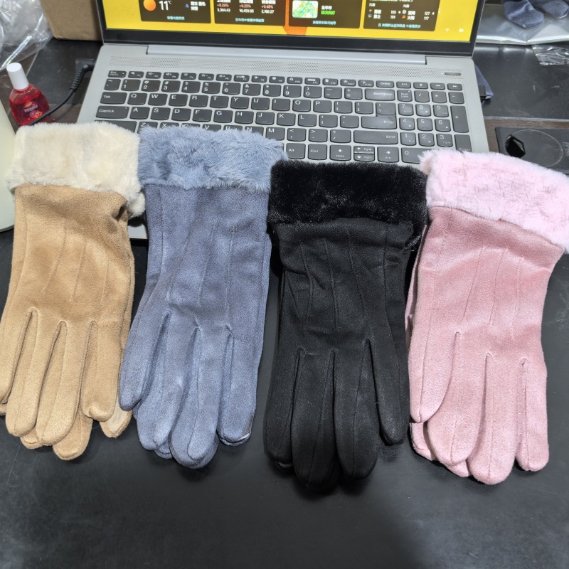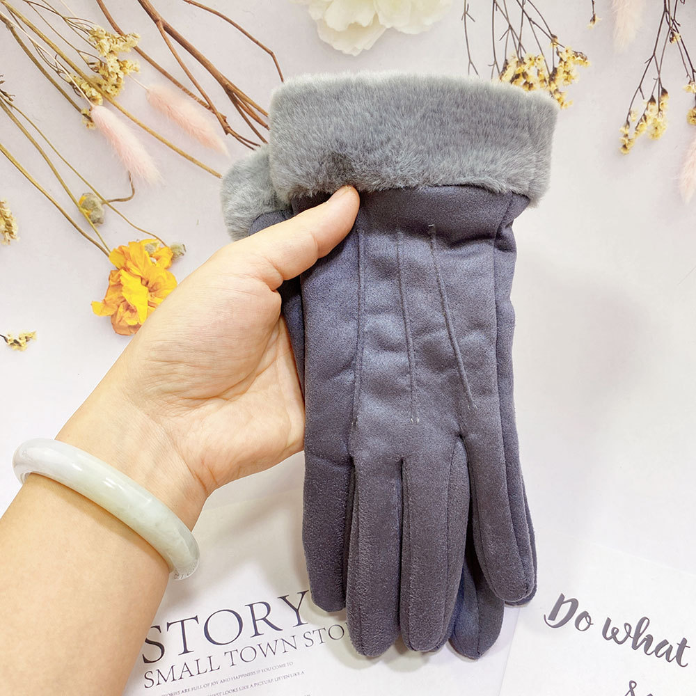 즉시 출고 도매 인기 여성용 스웨이드 보온 장갑, 야외 라이딩 및 운전용, 터치스크린 사용 가능