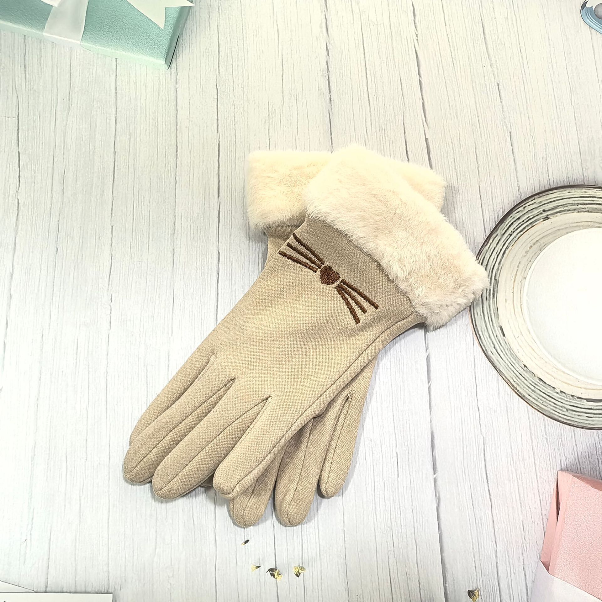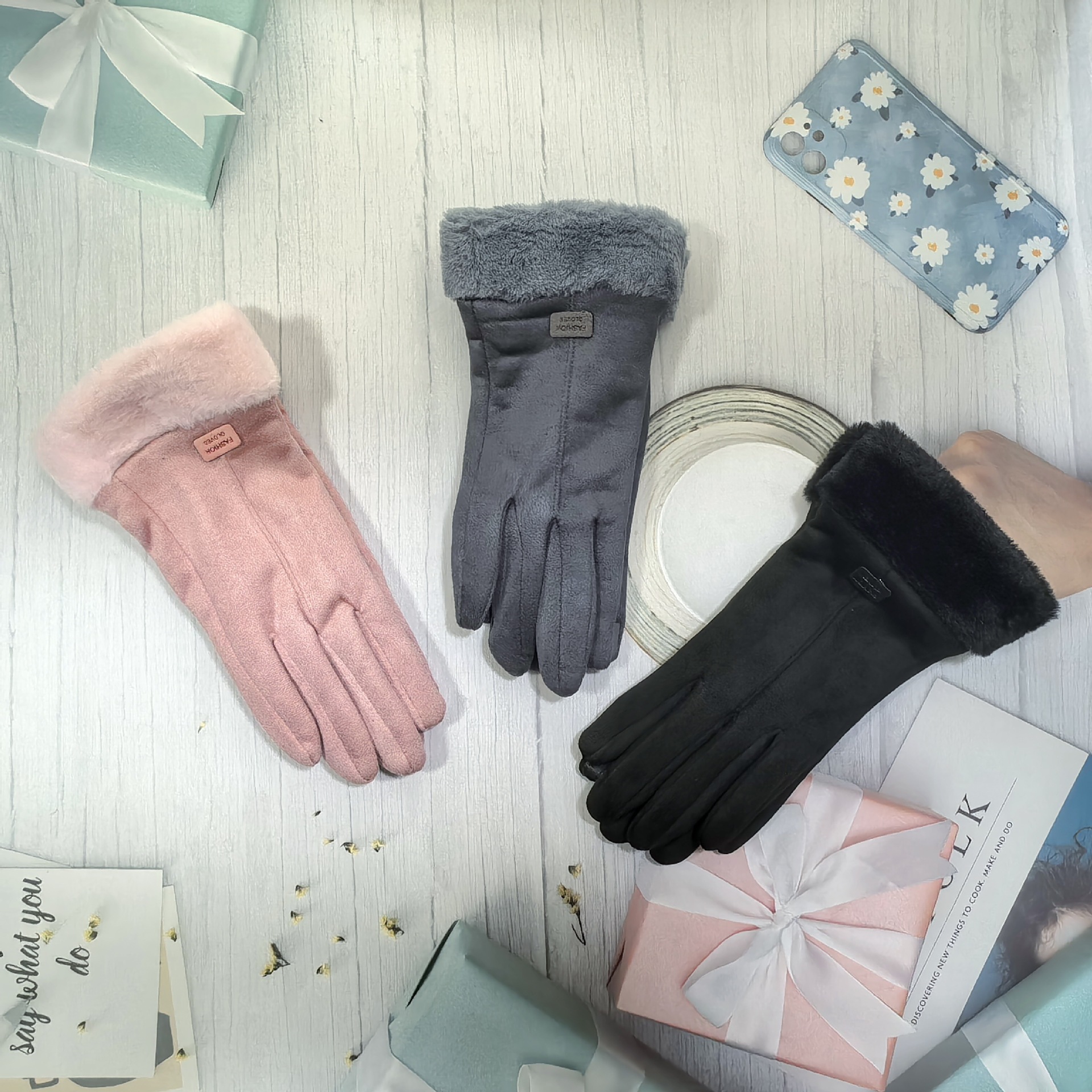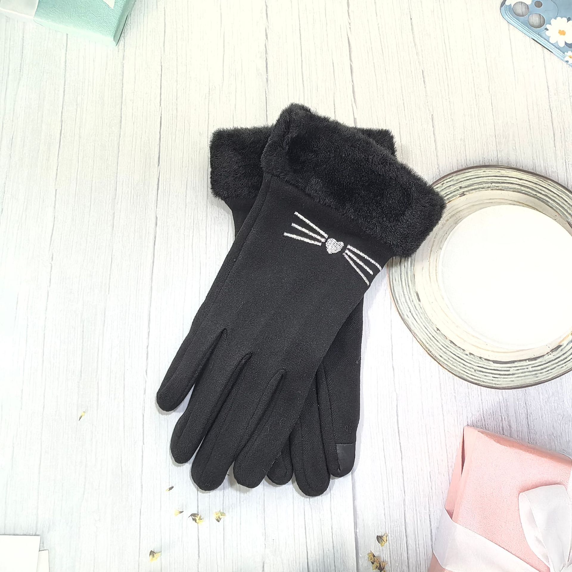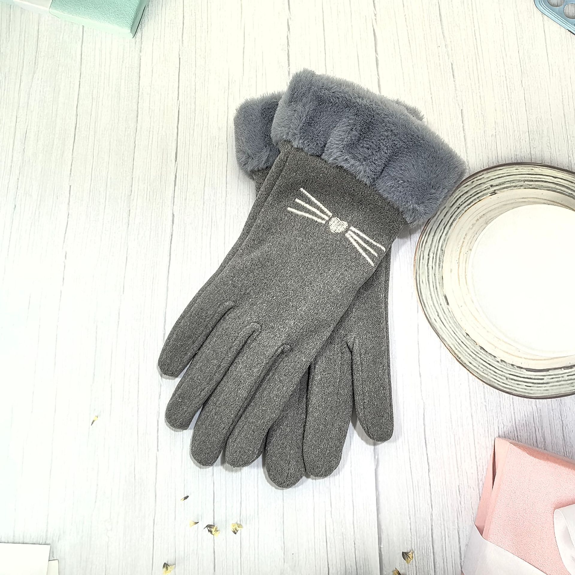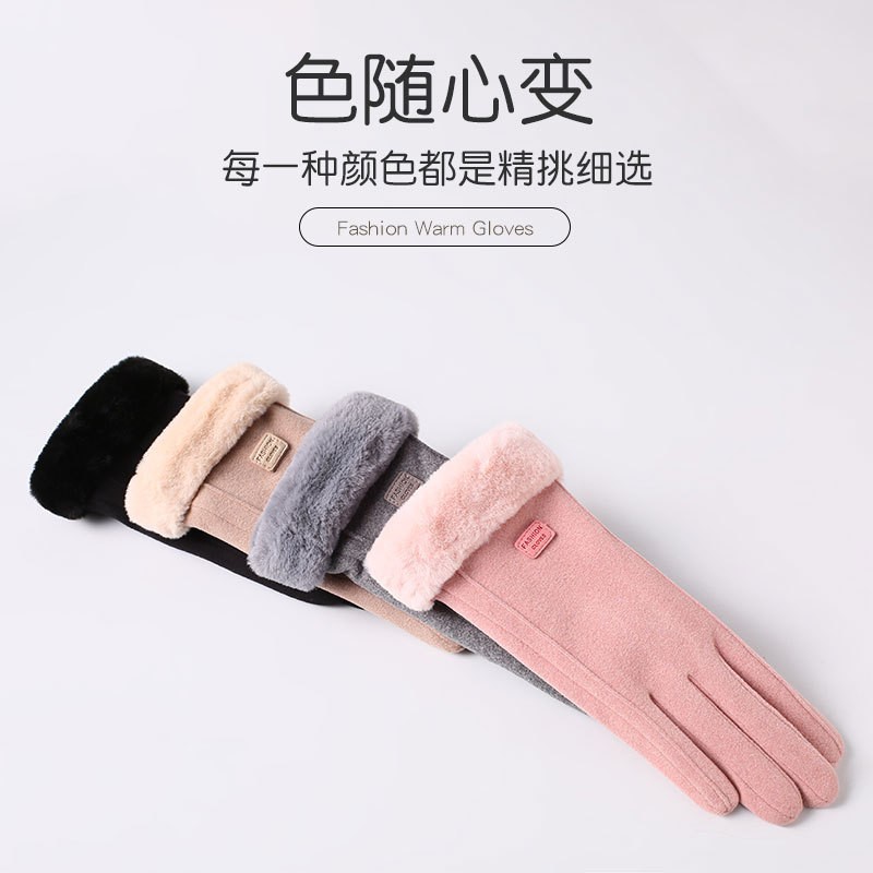 즉시 출고 도매 인기 여성용 스웨이드 보온 장갑, 야외 라이딩 및 운전용, 터치스크린 사용 가능