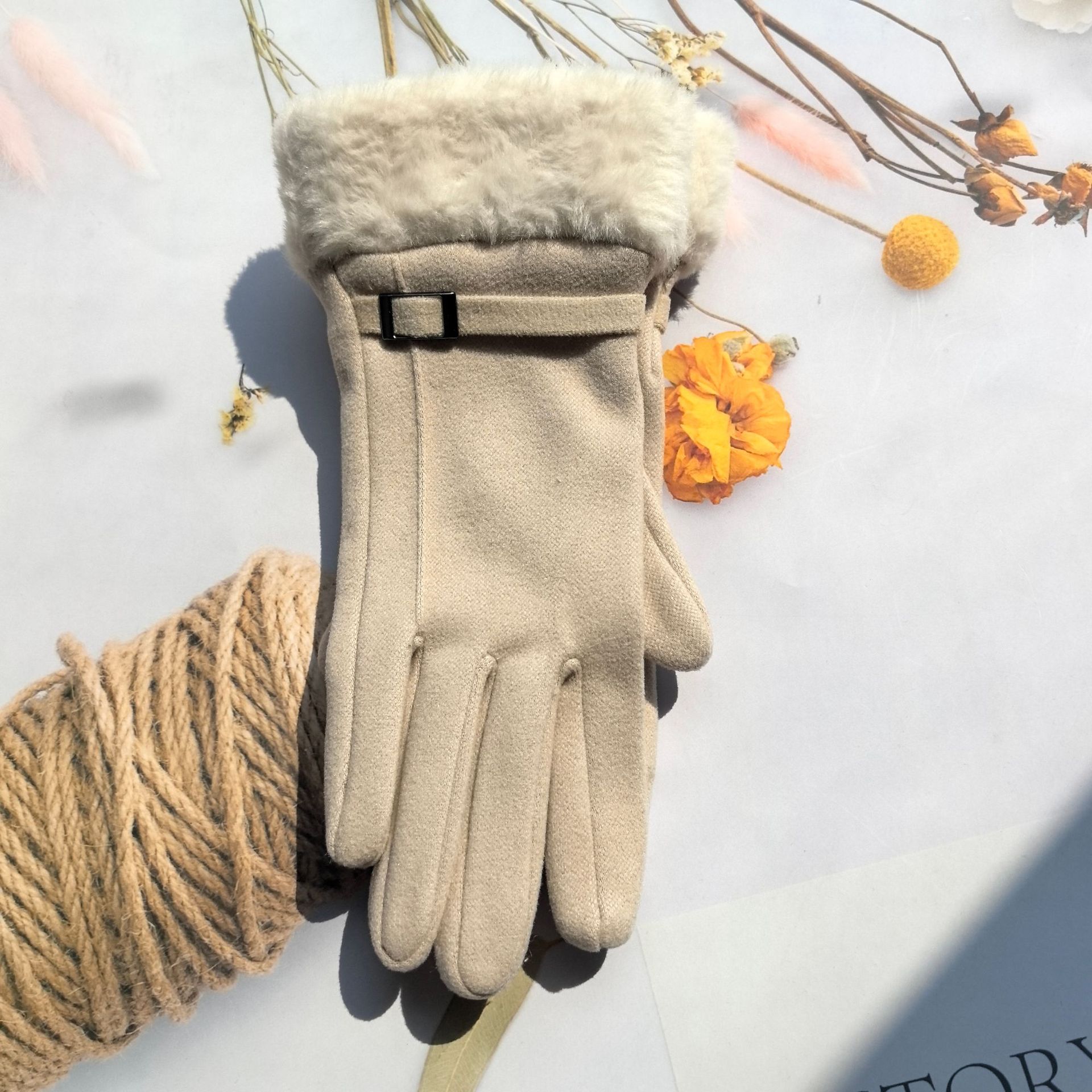 즉시 출고 도매 인기 여성용 스웨이드 보온 장갑, 야외 라이딩 및 운전용, 터치스크린 사용 가능스토어 가기