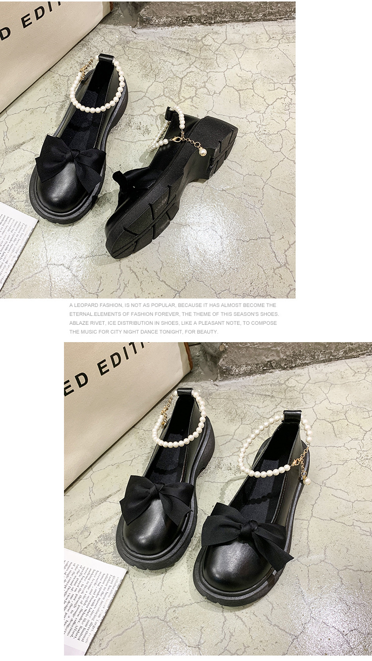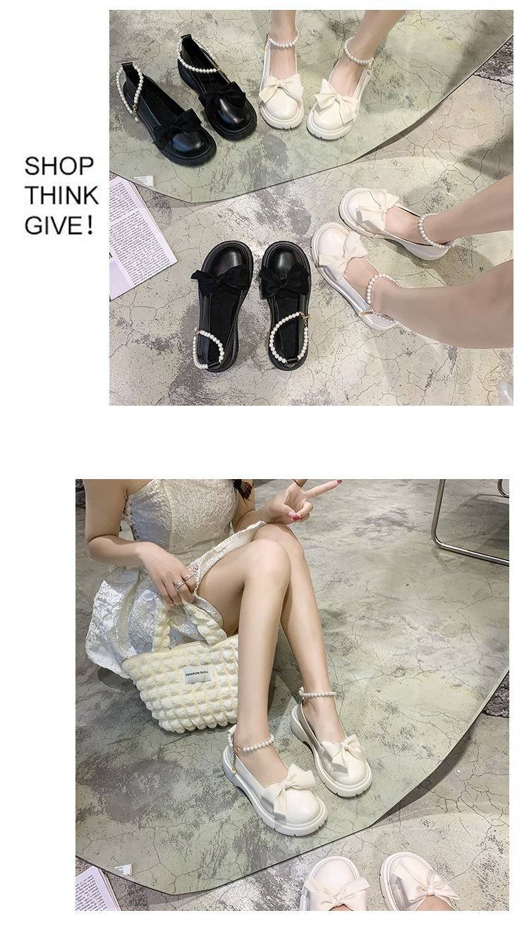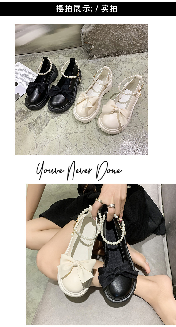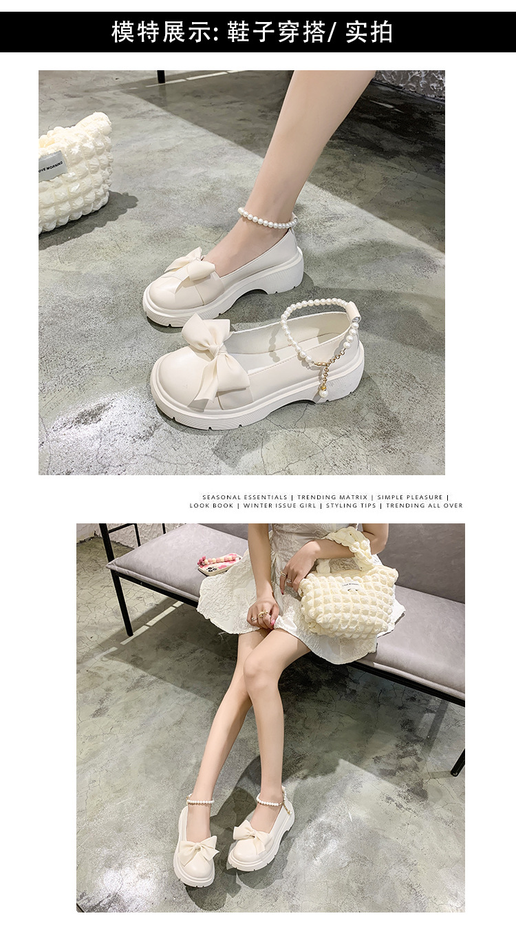 프랑스 스타일 메리 제인 신발 여성의 2024 봄과 가을 새로운 진주 활 소녀 신발 두꺼운 힐 요정 스타일 로퍼스토어 가기