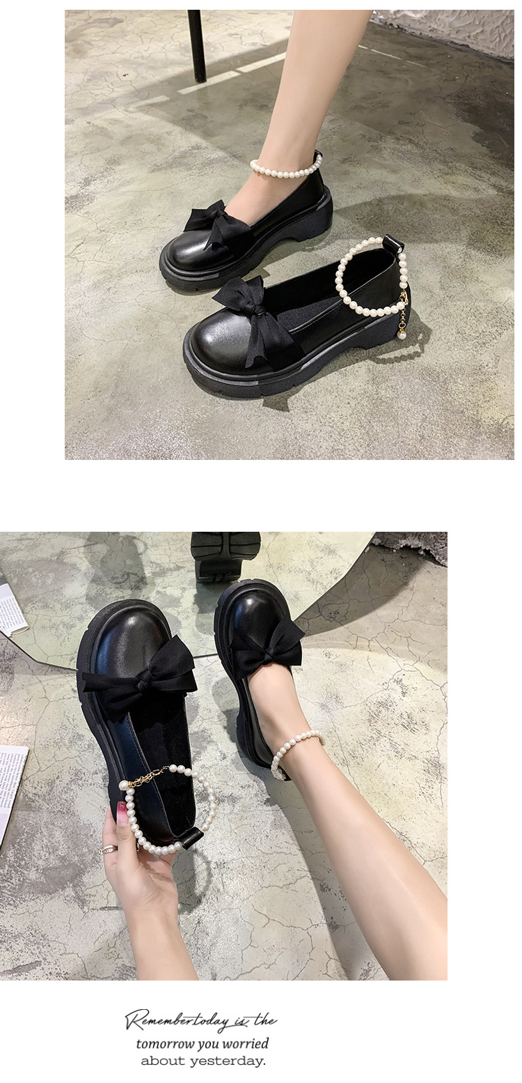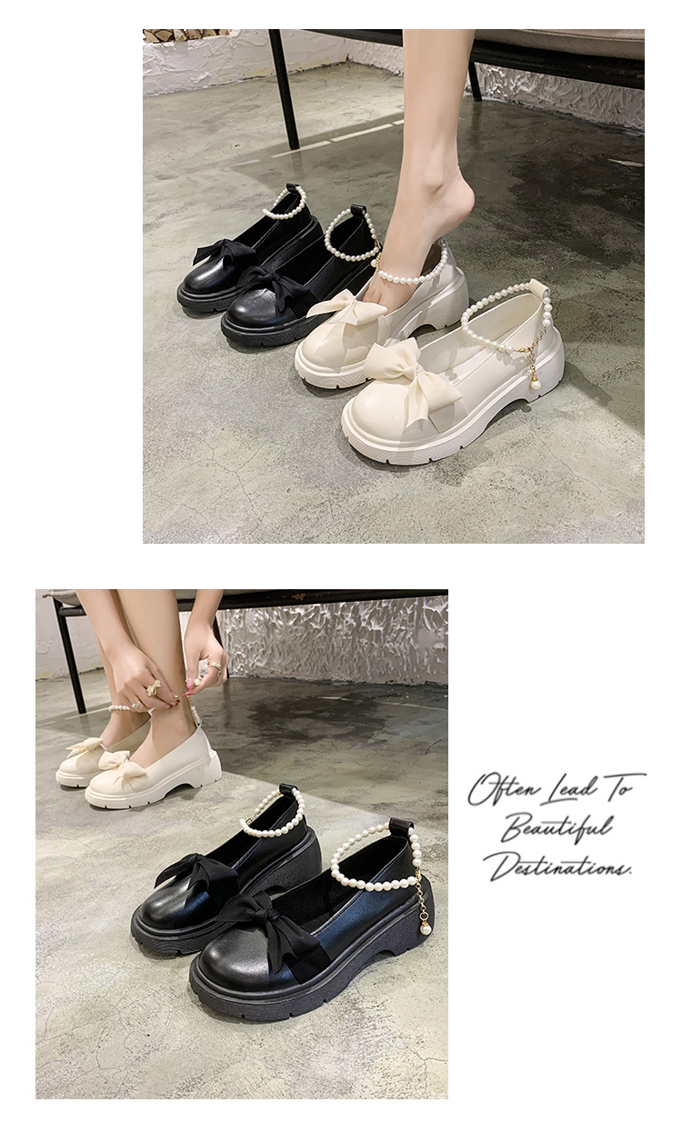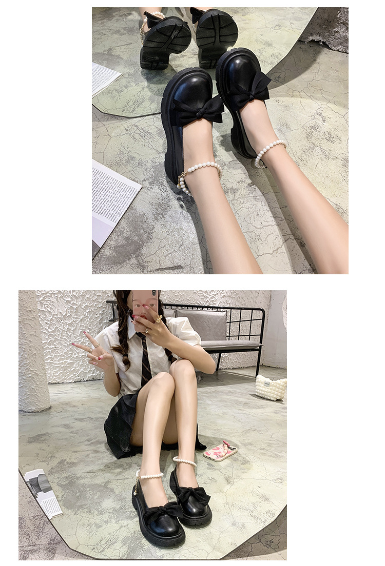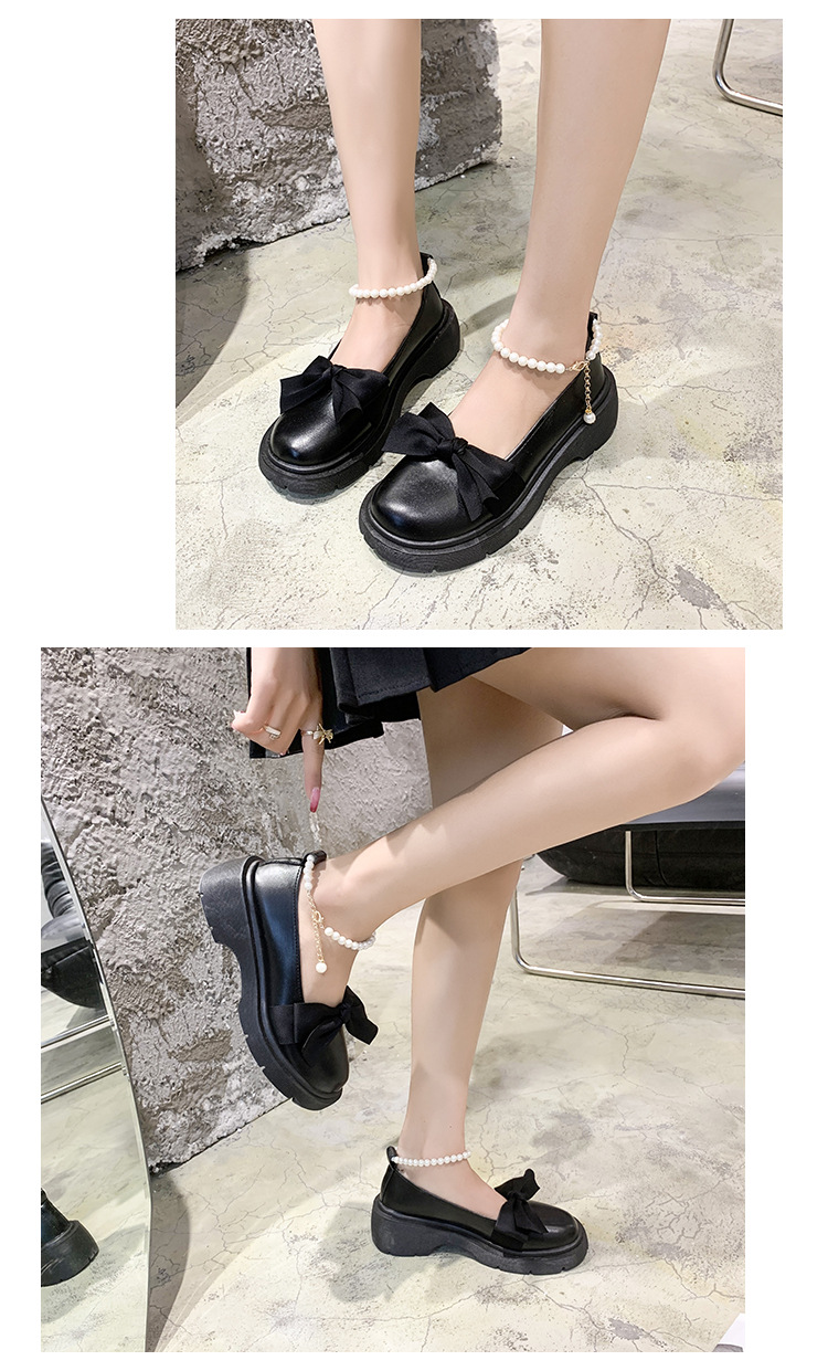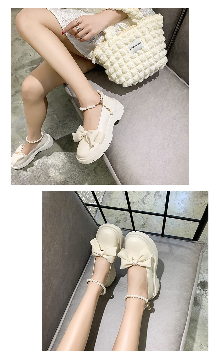 프랑스 스타일 메리 제인 신발 여성의 2024 봄과 가을 새로운 진주 활 소녀 신발 두꺼운 힐 요정 스타일 로퍼스토어 가기