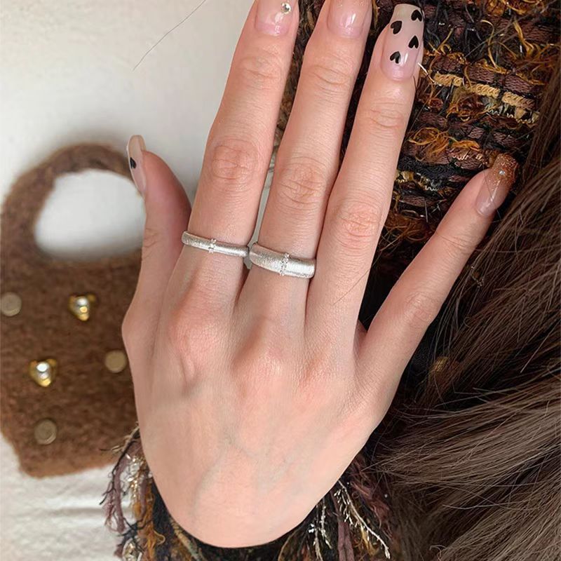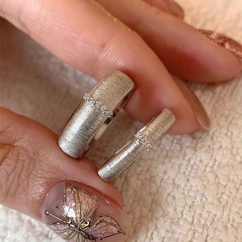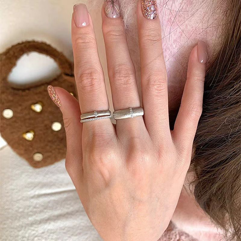 한국 틈새 솔질 금속 마이크로 인레이 지르콘 링 매일 통근 간단한 고급 성격 패션 올 매치 링스토어 가기