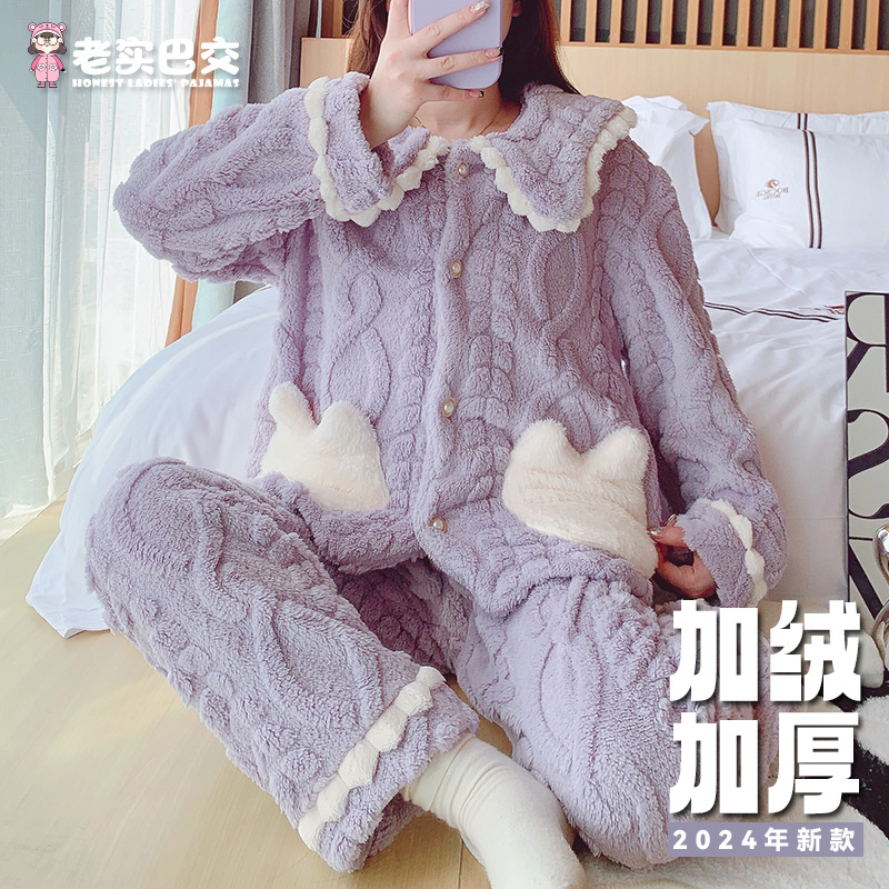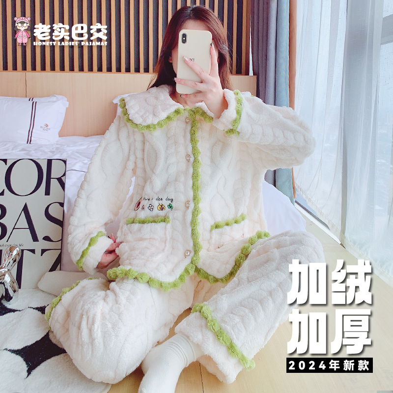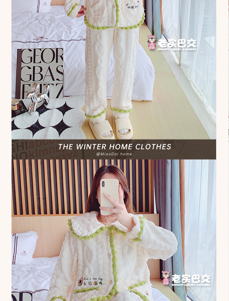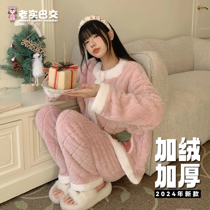 [업그레이드 된 두꺼운] 겨울 잠옷 여성 기모 느슨한 플러스 사이즈 스타일 학생 스타일 가정용 문 세트 세트 착용스토어 가기