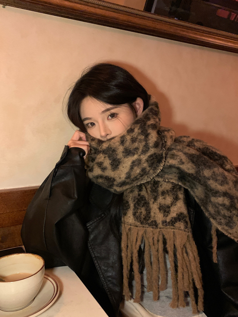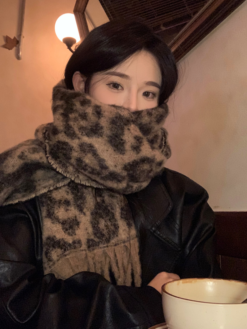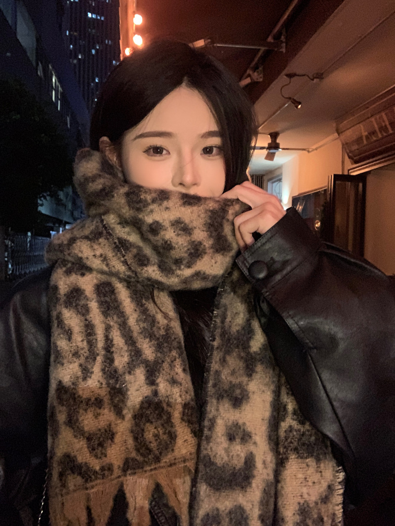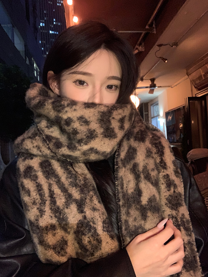 빈티지 하이 엔드 레오파드 봉제 스카프 여성의 2024 가을과 겨울 두꺼운 따뜻한 목도리 목 보호 냉랭한 목 패션스토어 가기
