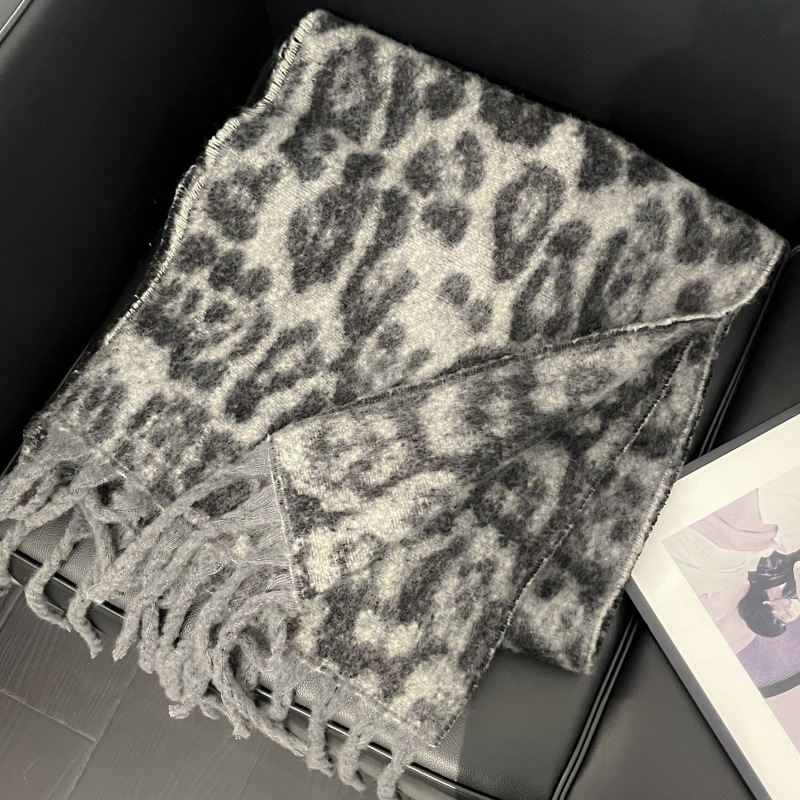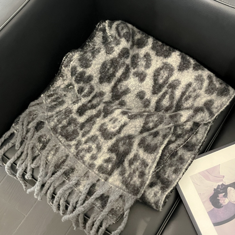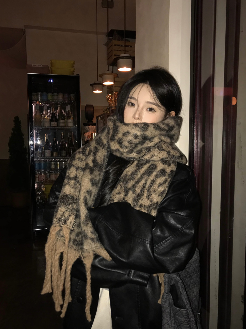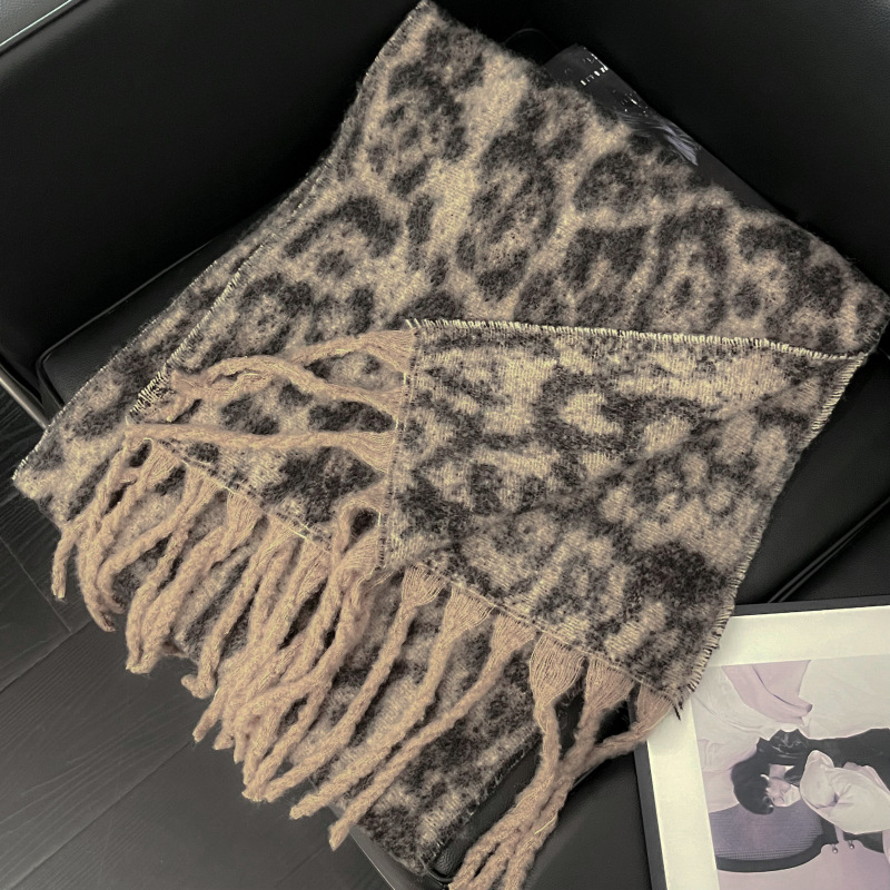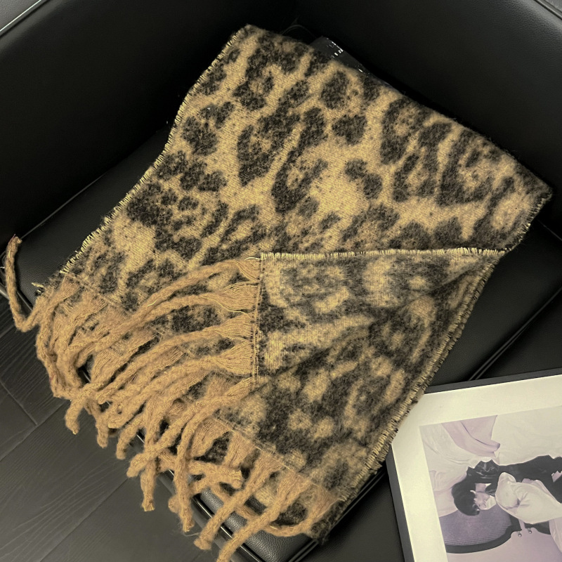 빈티지 하이 엔드 레오파드 봉제 스카프 여성의 2024 가을과 겨울 두꺼운 따뜻한 목도리 목 보호 냉랭한 목 패션스토어 가기
