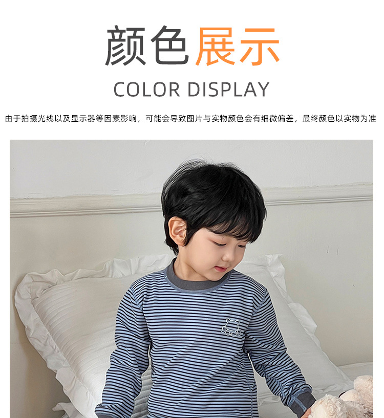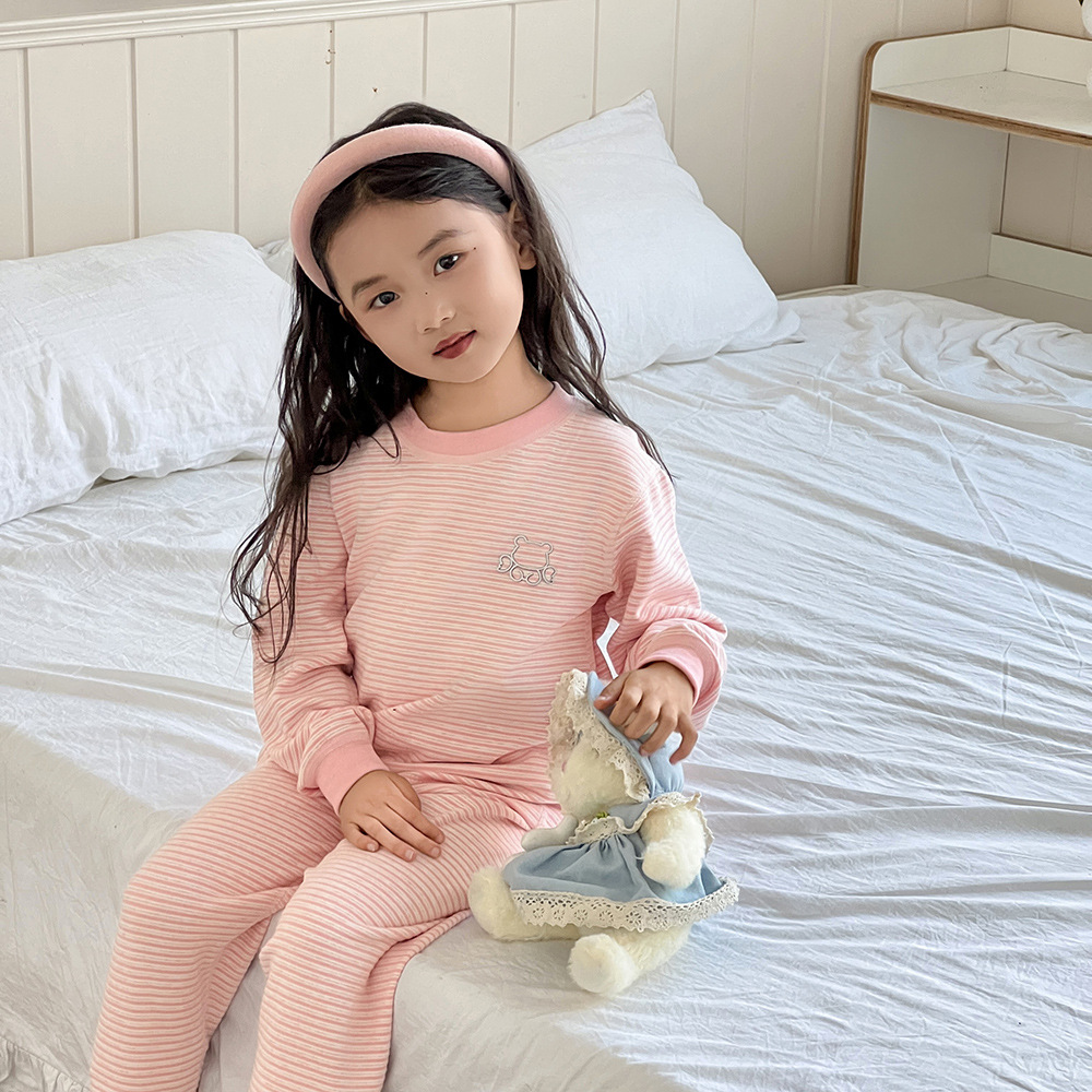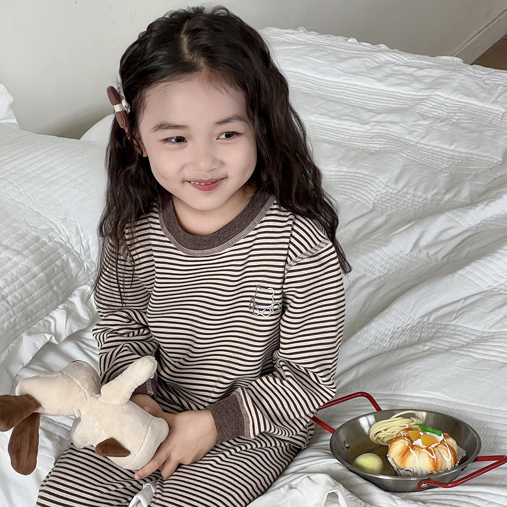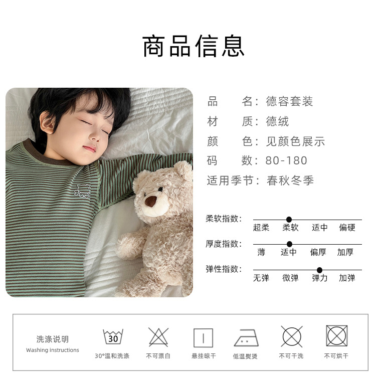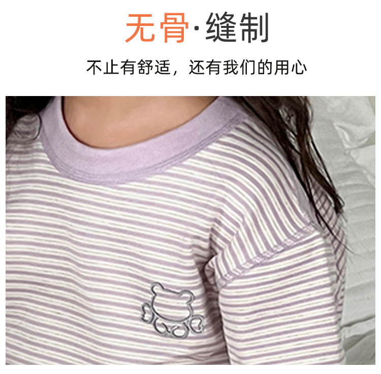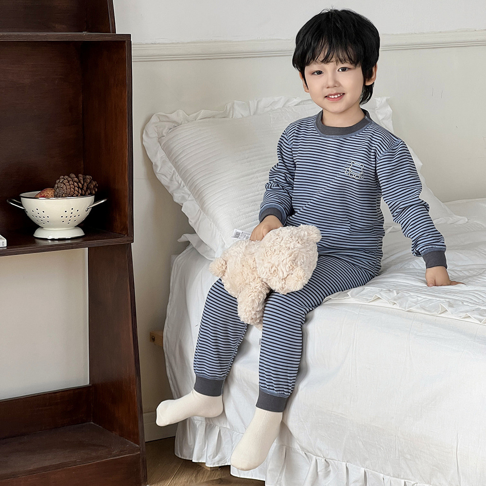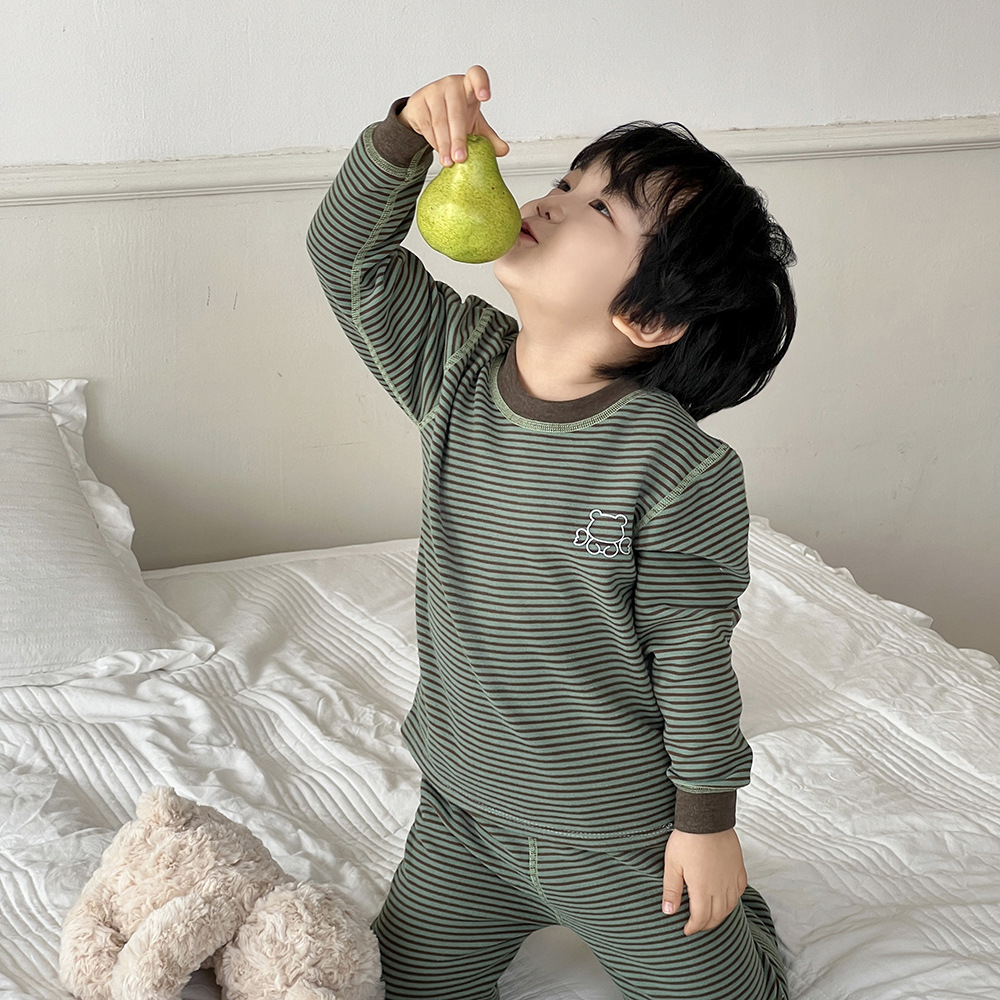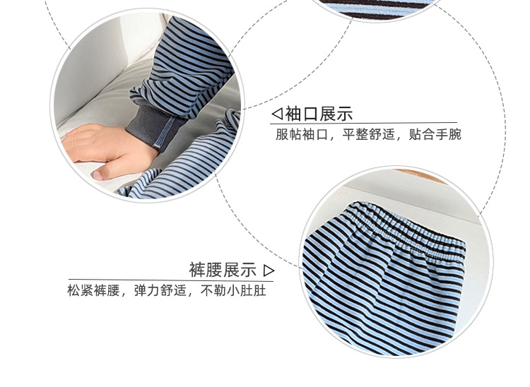 새 아동복 뼈없는 울 실크 세트 아기 소년과 소녀 가을 옷과 바지 항균 큰 아이들 줄무늬 가을과 겨울 집스토어 가기