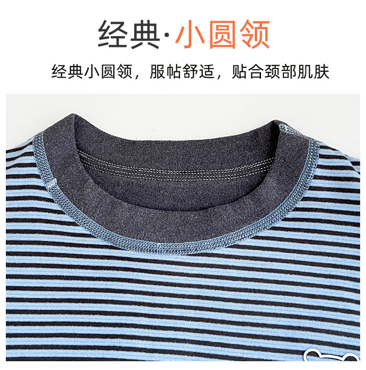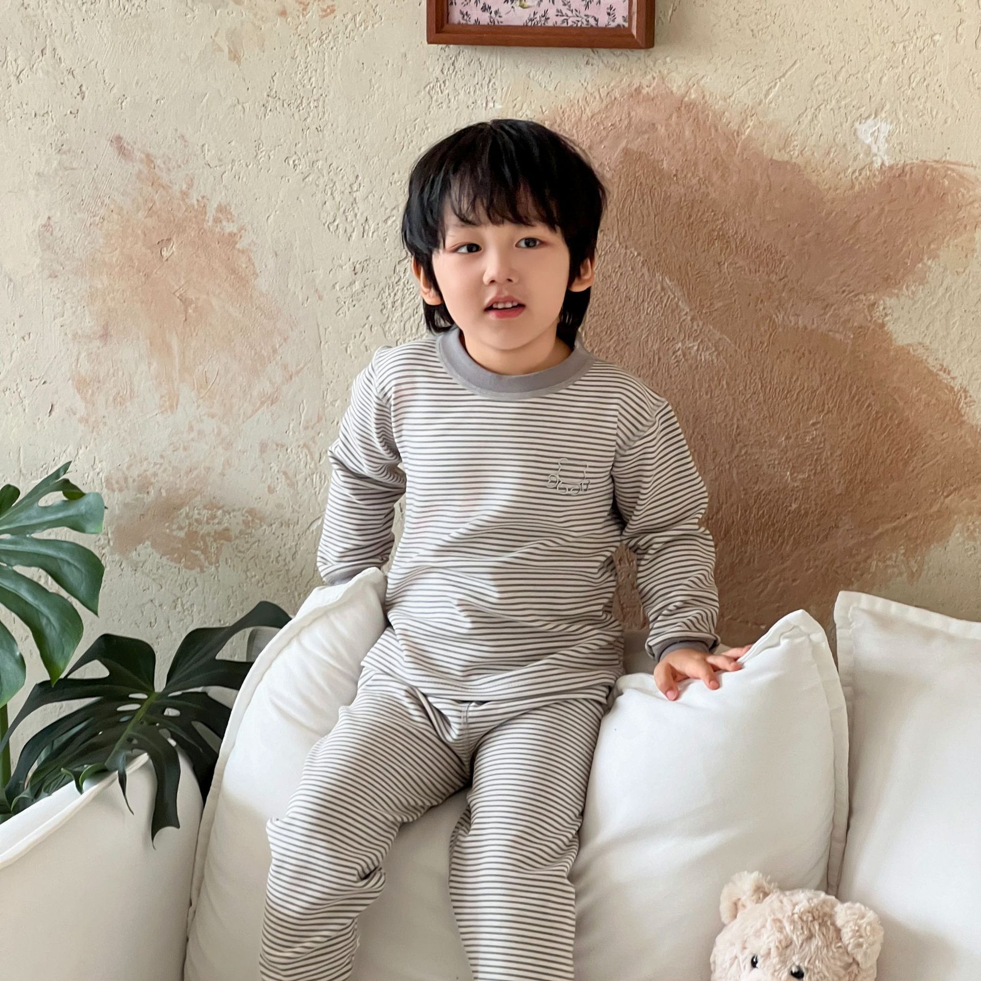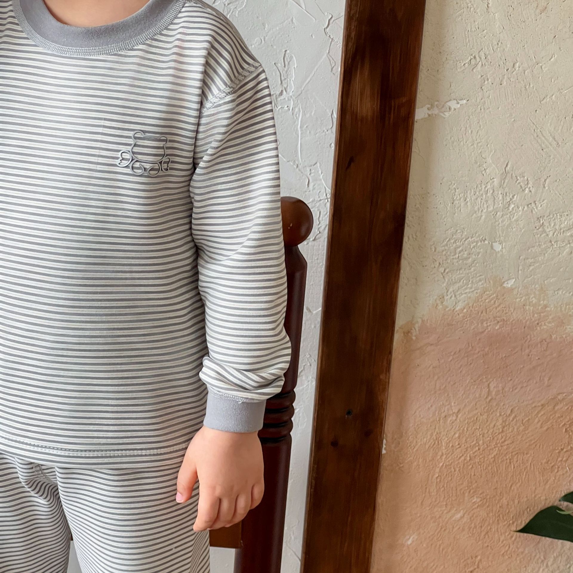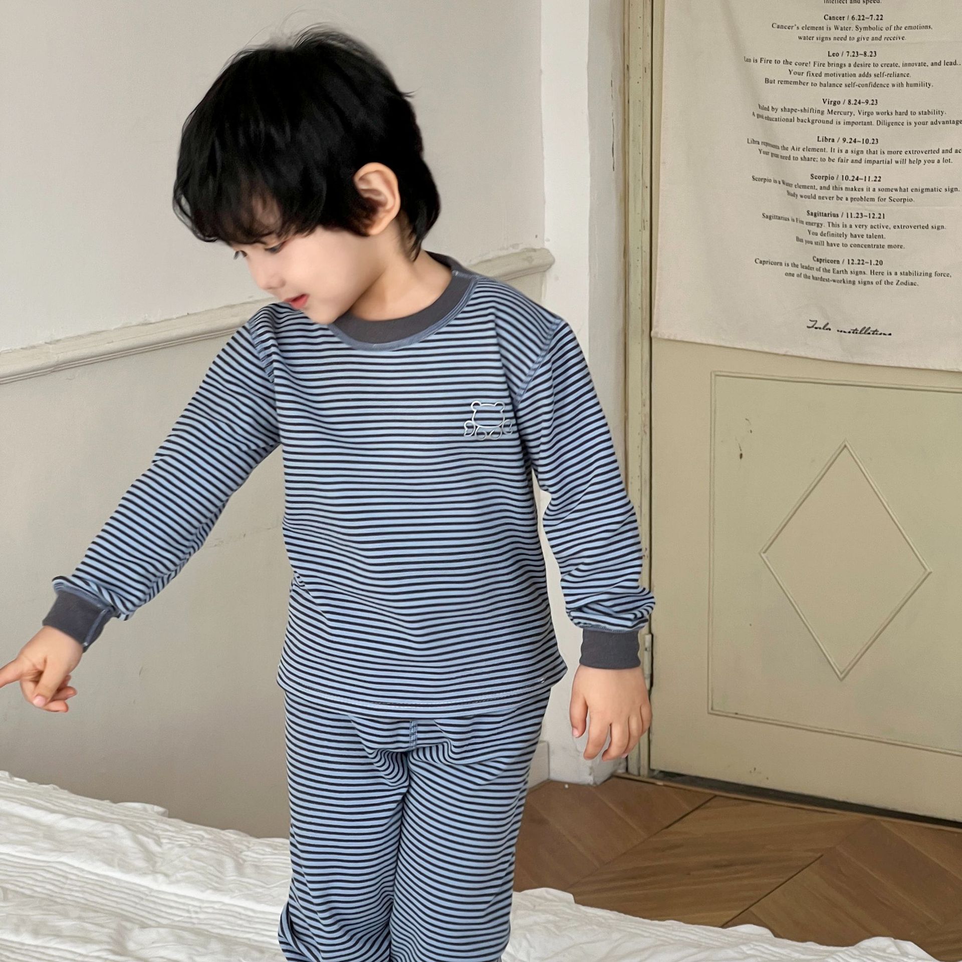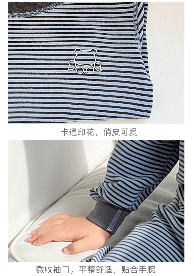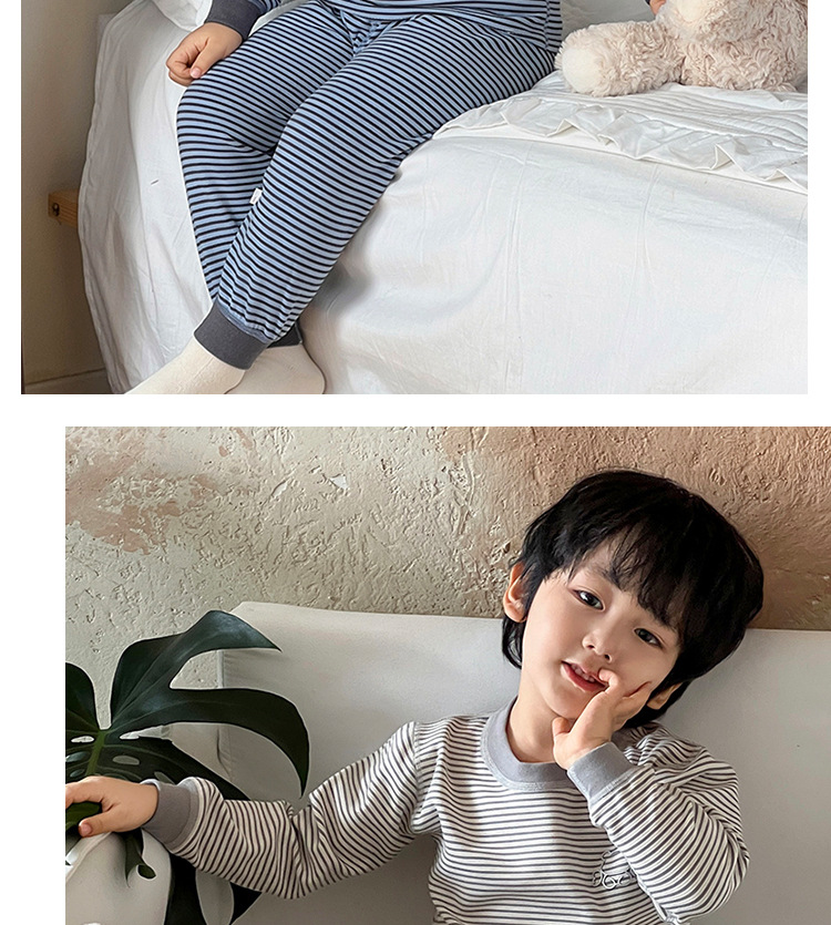 새 아동복 뼈없는 울 실크 세트 아기 소년과 소녀 가을 옷과 바지 항균 큰 아이들 줄무늬 가을과 겨울 집스토어 가기