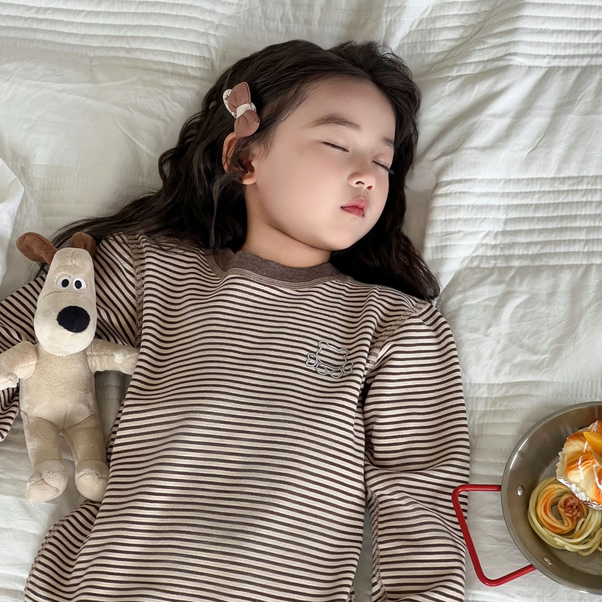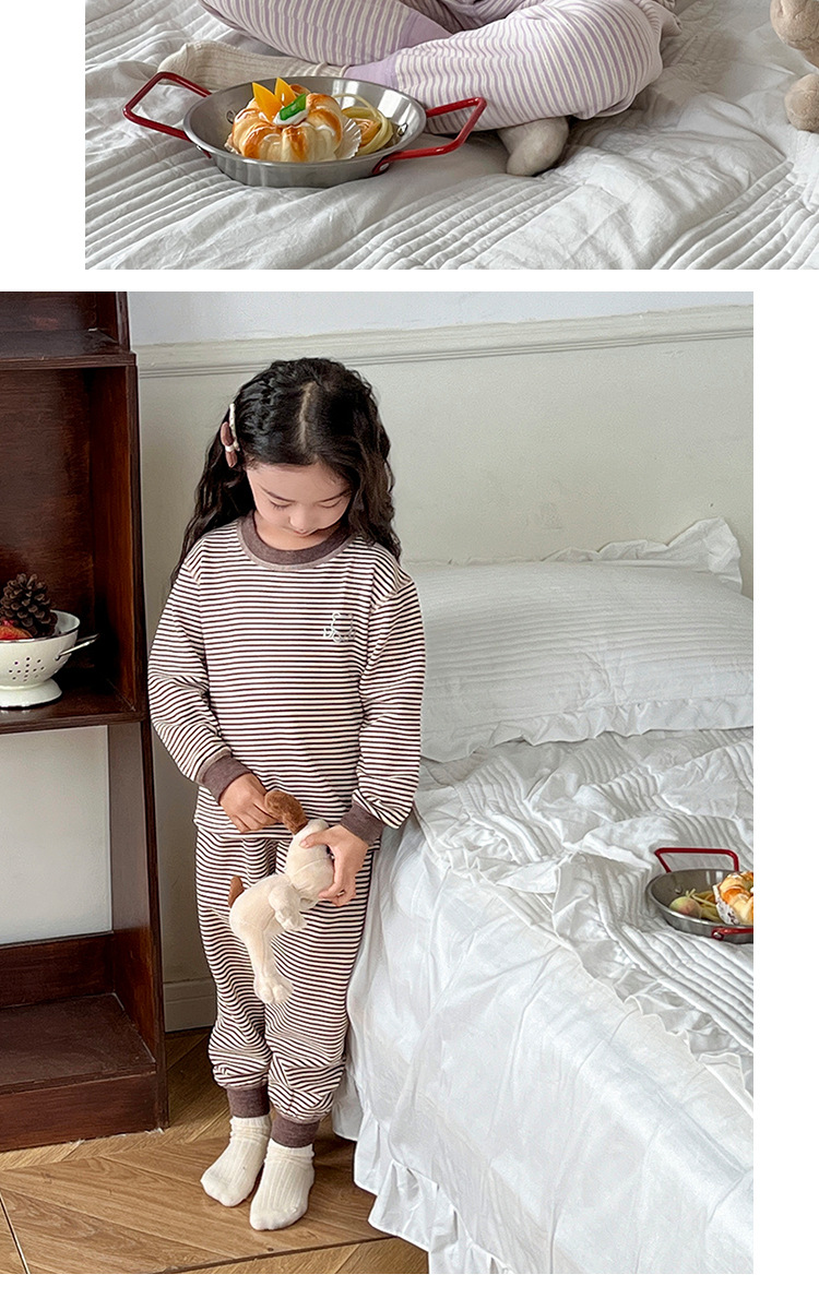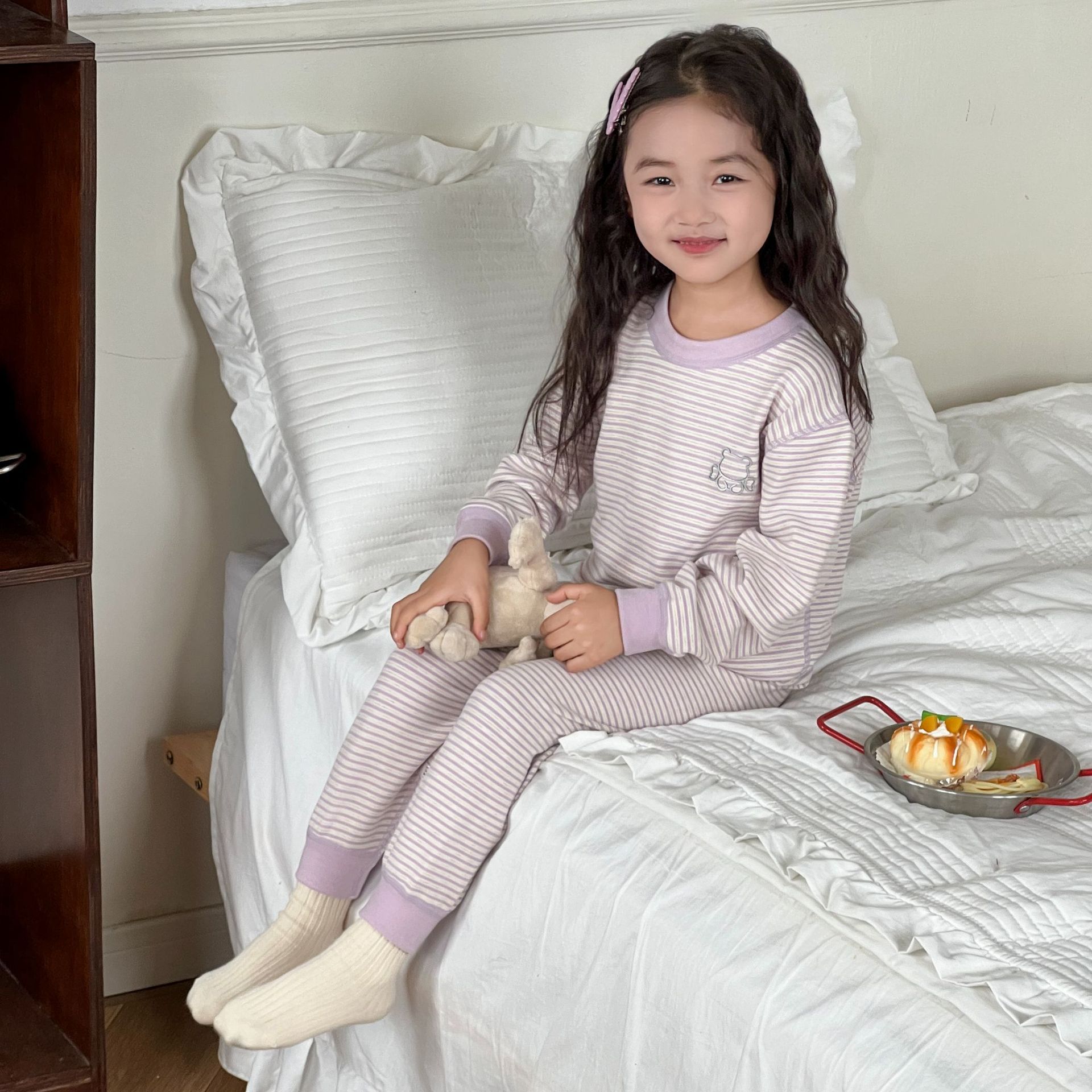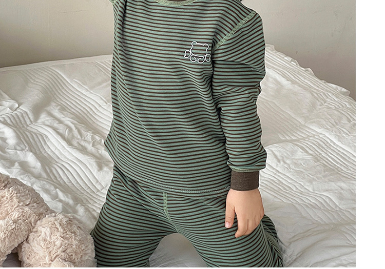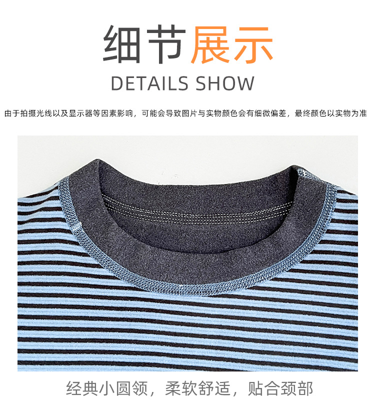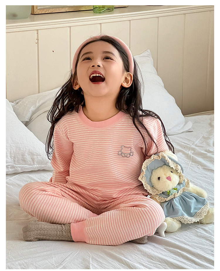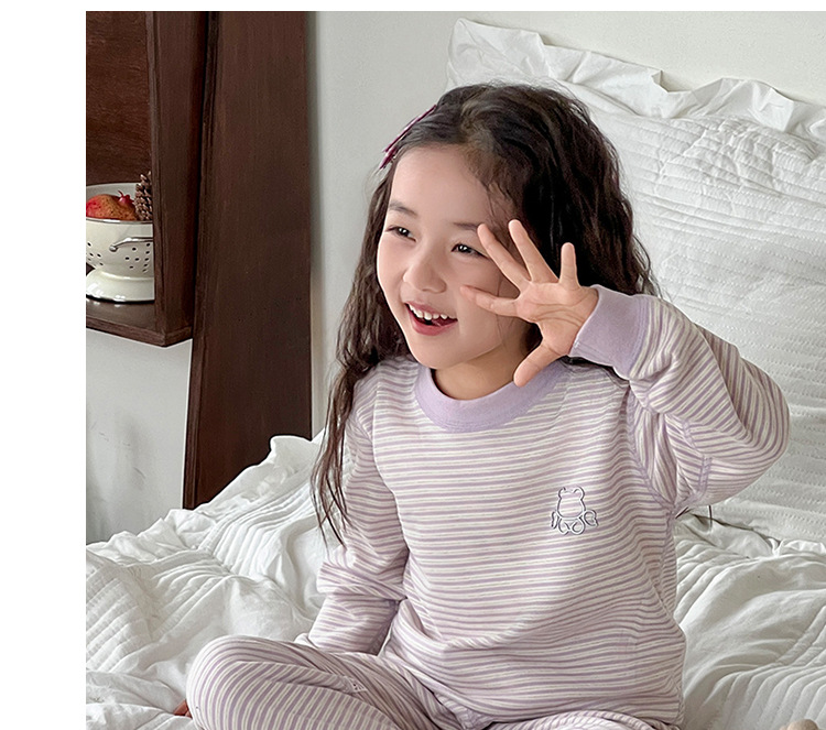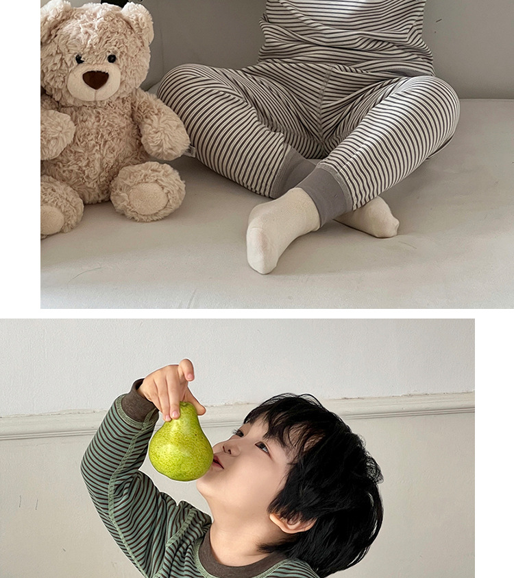 새 아동복 뼈없는 울 실크 세트 아기 소년과 소녀 가을 옷과 바지 항균 큰 아이들 줄무늬 가을과 겨울 집스토어 가기