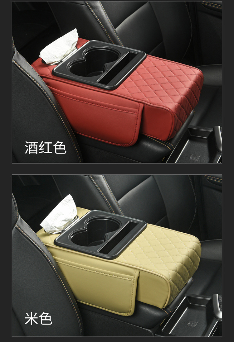 Z4P 자동차 팔걸이 박스 패드 부스터 패드 4-in-1 자동차 티슈 박스 보관 가방 워터 컵 홀더 다기능 보관스토어 가기