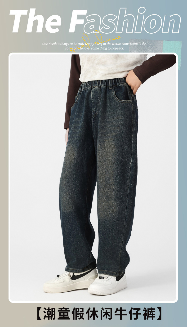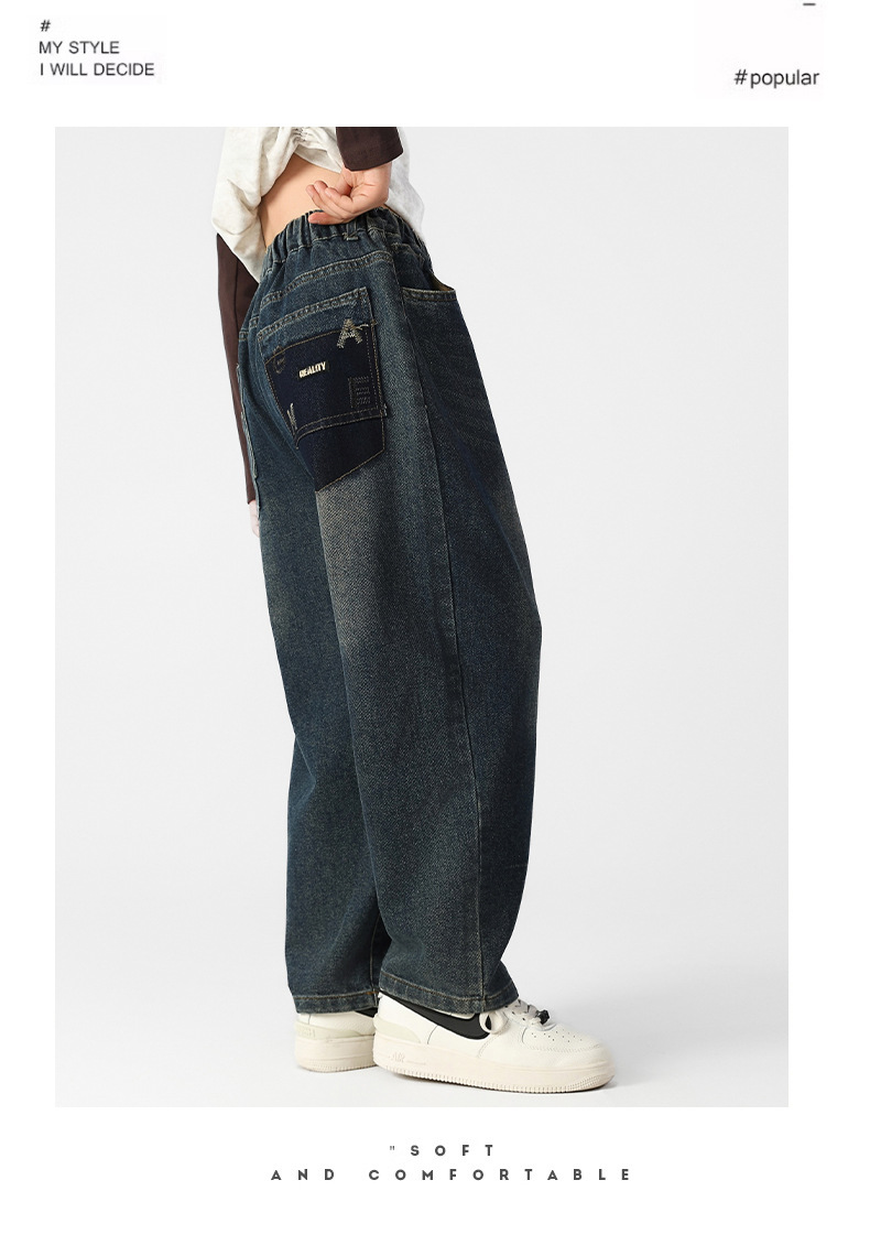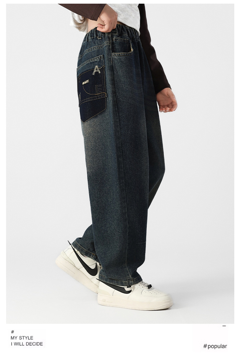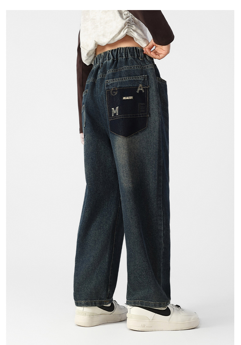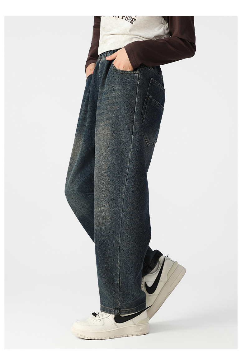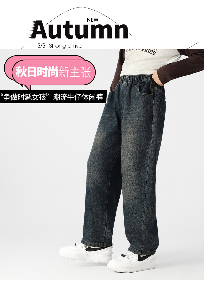 여아 기모 청바지 가을과 겨울 플러스 사이즈 느슨한 스트레이트 바지 중학생 10 대 허리 데님스토어 가기
