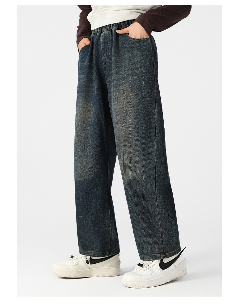 여아 기모 청바지 가을과 겨울 플러스 사이즈 느슨한 스트레이트 바지 중학생 10 대 허리 데님