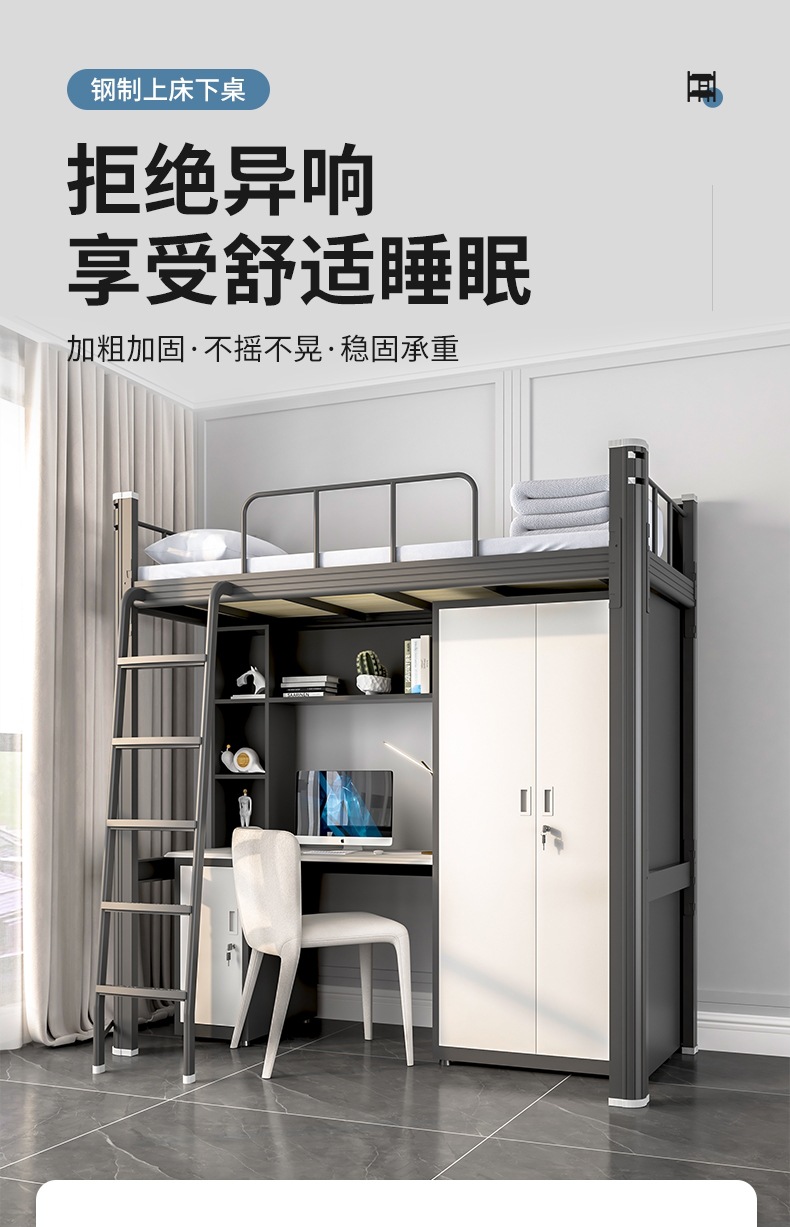 학생 아파트 침대 침대 낮은 테이블 조합 침대 직원 기숙사 철 프레임 침대 바닥 등반 사다리 더블 레이어 상하 벙크 우한스토어 가기