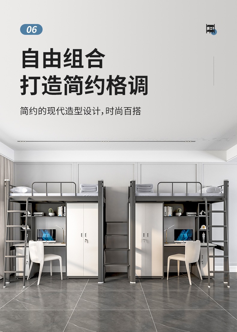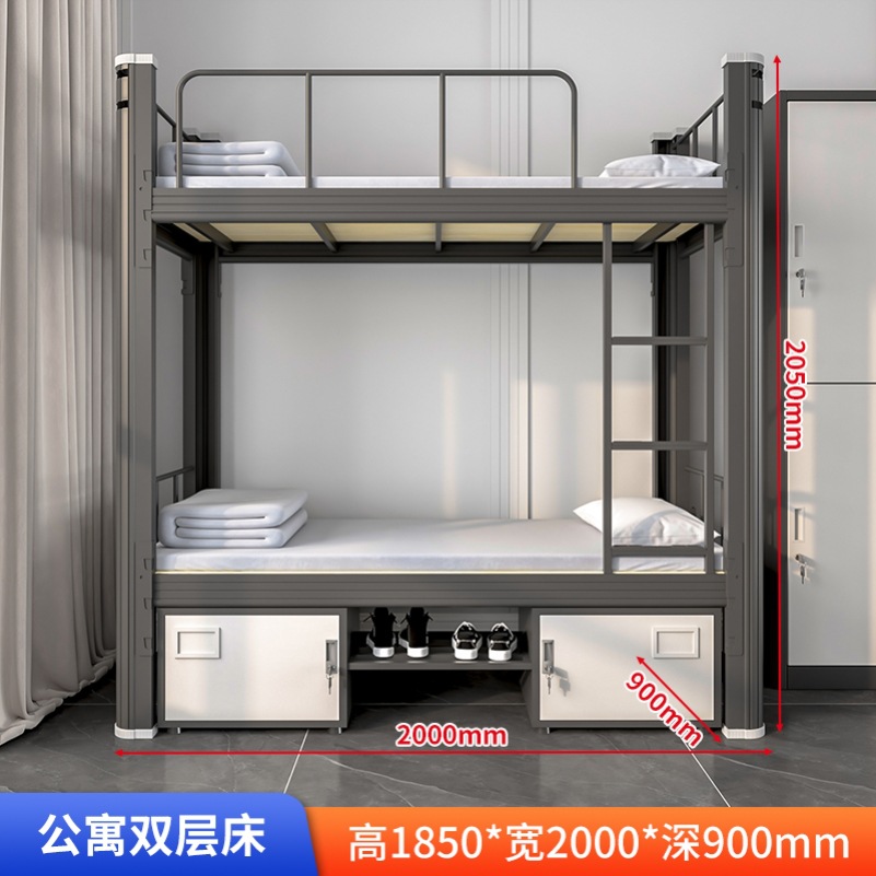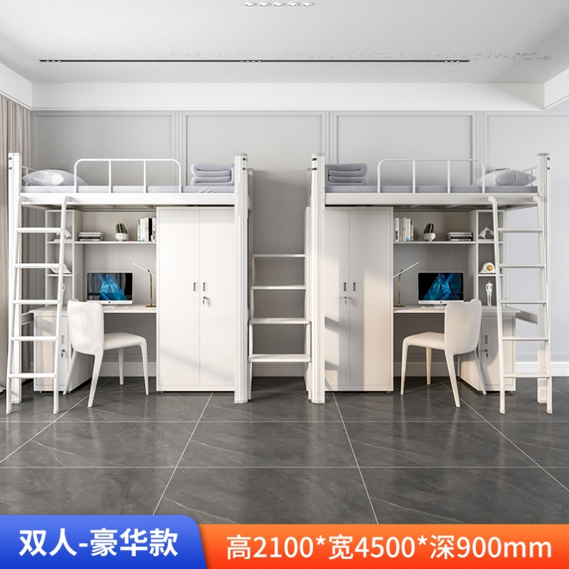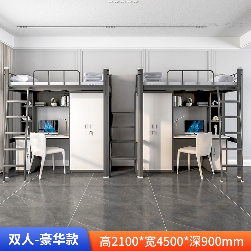 학생 아파트 침대 침대 낮은 테이블 조합 침대 직원 기숙사 철 프레임 침대 바닥 등반 사다리 더블 레이어 상하 벙크 우한