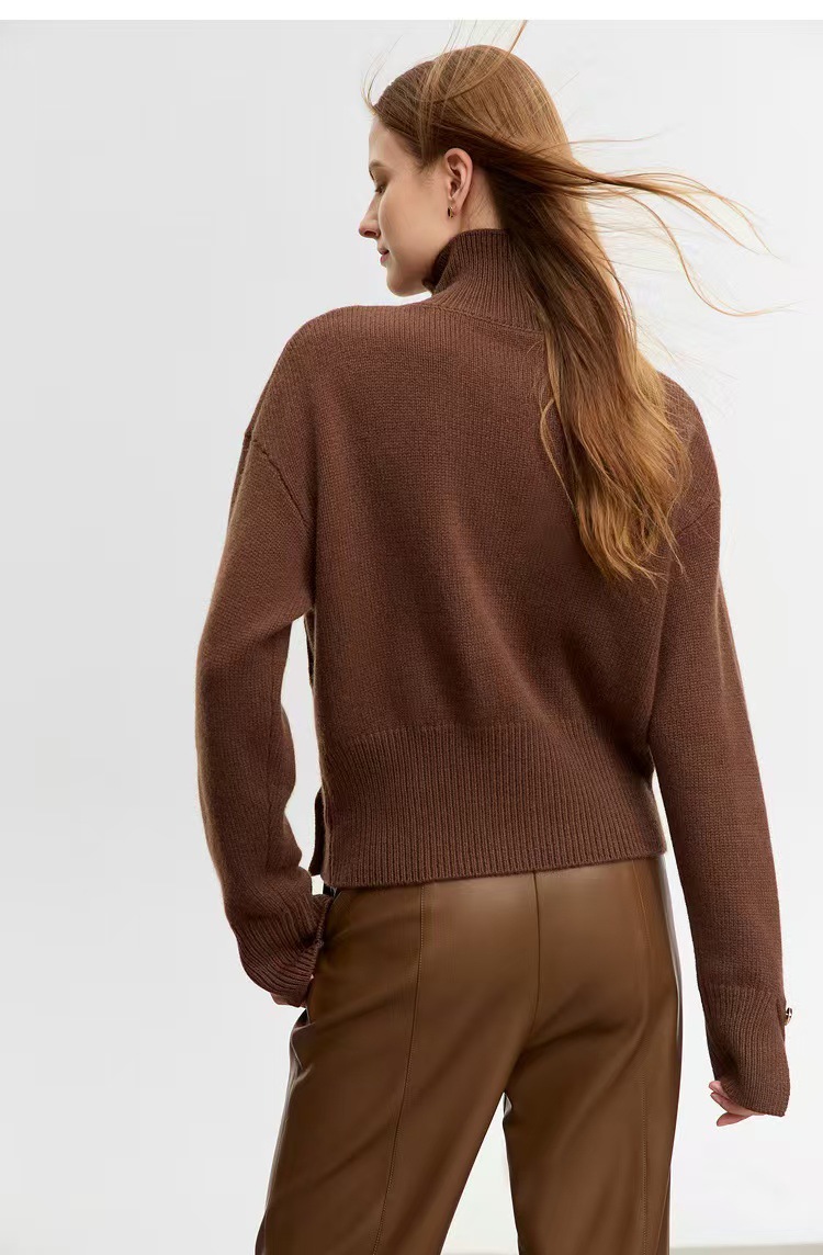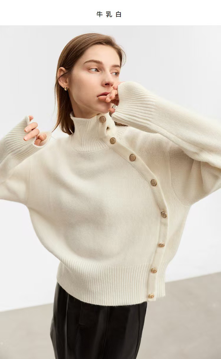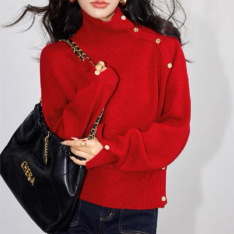 100 순수 양모 스웨터 여성용 소프트 왁스 게으른 스타일 터틀넥 버클 스웨터 레드 디자인 센스 캐시미어 니트베이스 셔츠스토어 가기