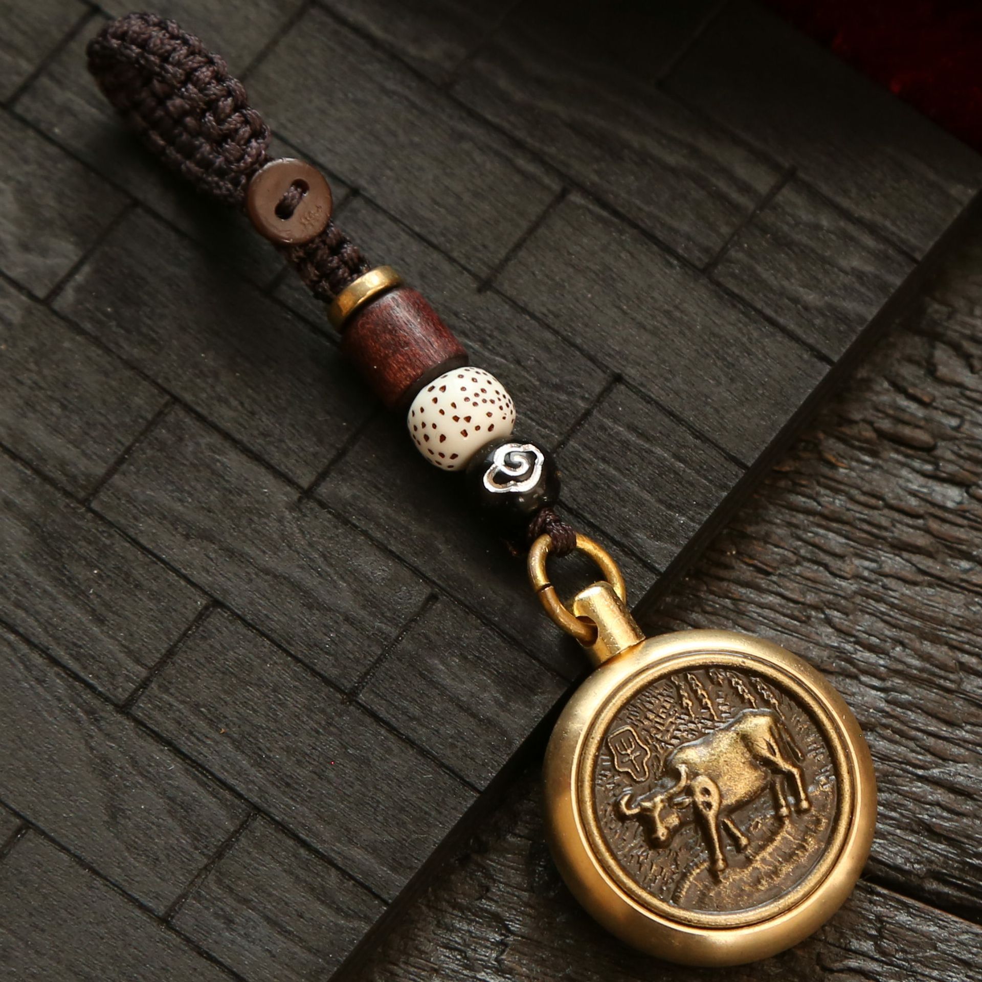 황동 조디악 키 체인 턴 루킹 보물 손잡이 자동차 펜던트 도매 선물 펜던트 펜던트스토어 가기