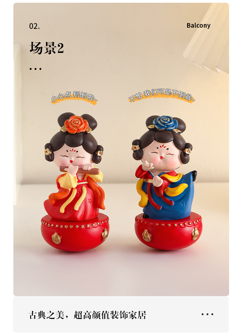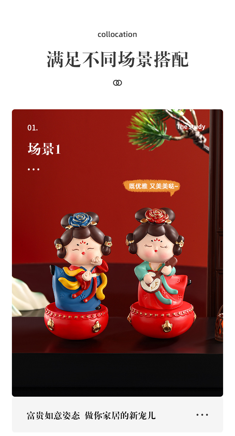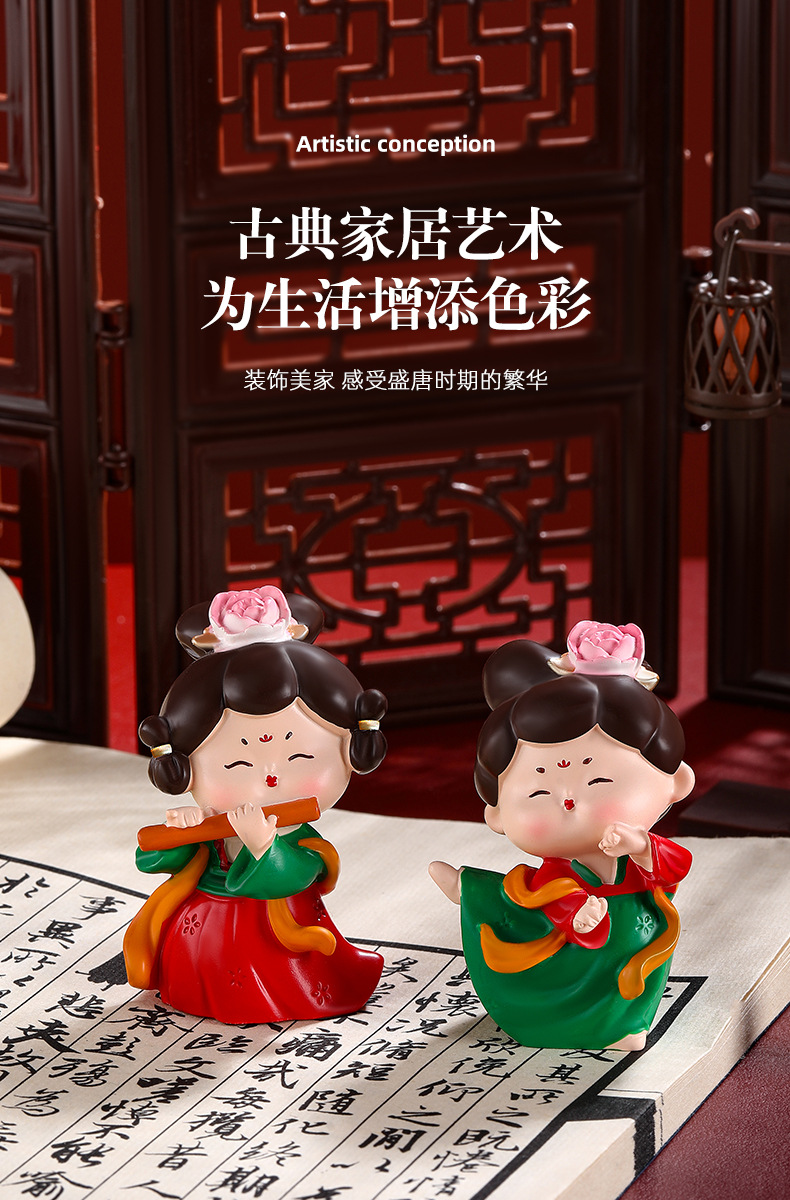 창조적 인 국가 조수 당나라 궁전 푸 텀블러 작은 자매 장식품 국가 스타일 사무실 홈 장식 문화 및 창조적 인 선물
