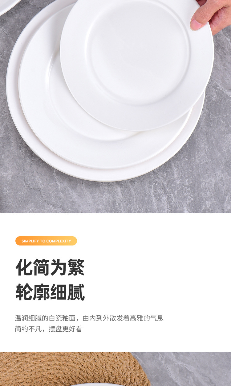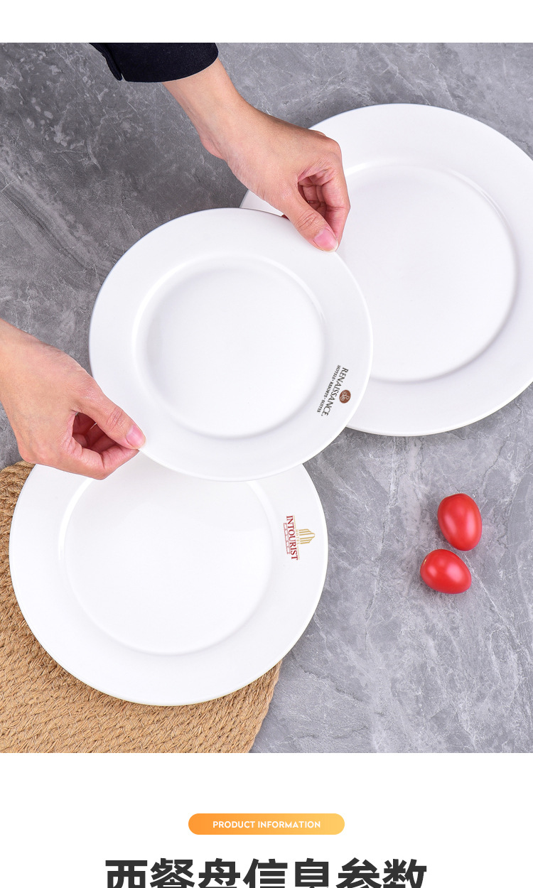 스테이크 플레이트 퓨어 화이트 호텔 세라믹 라운드 웨스턴 푸드 플레이트 접시 얕은 플레이트 플랫 접시 접시 식기 도매스토어 가기