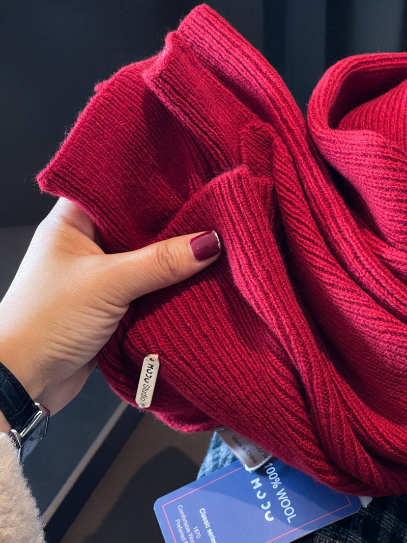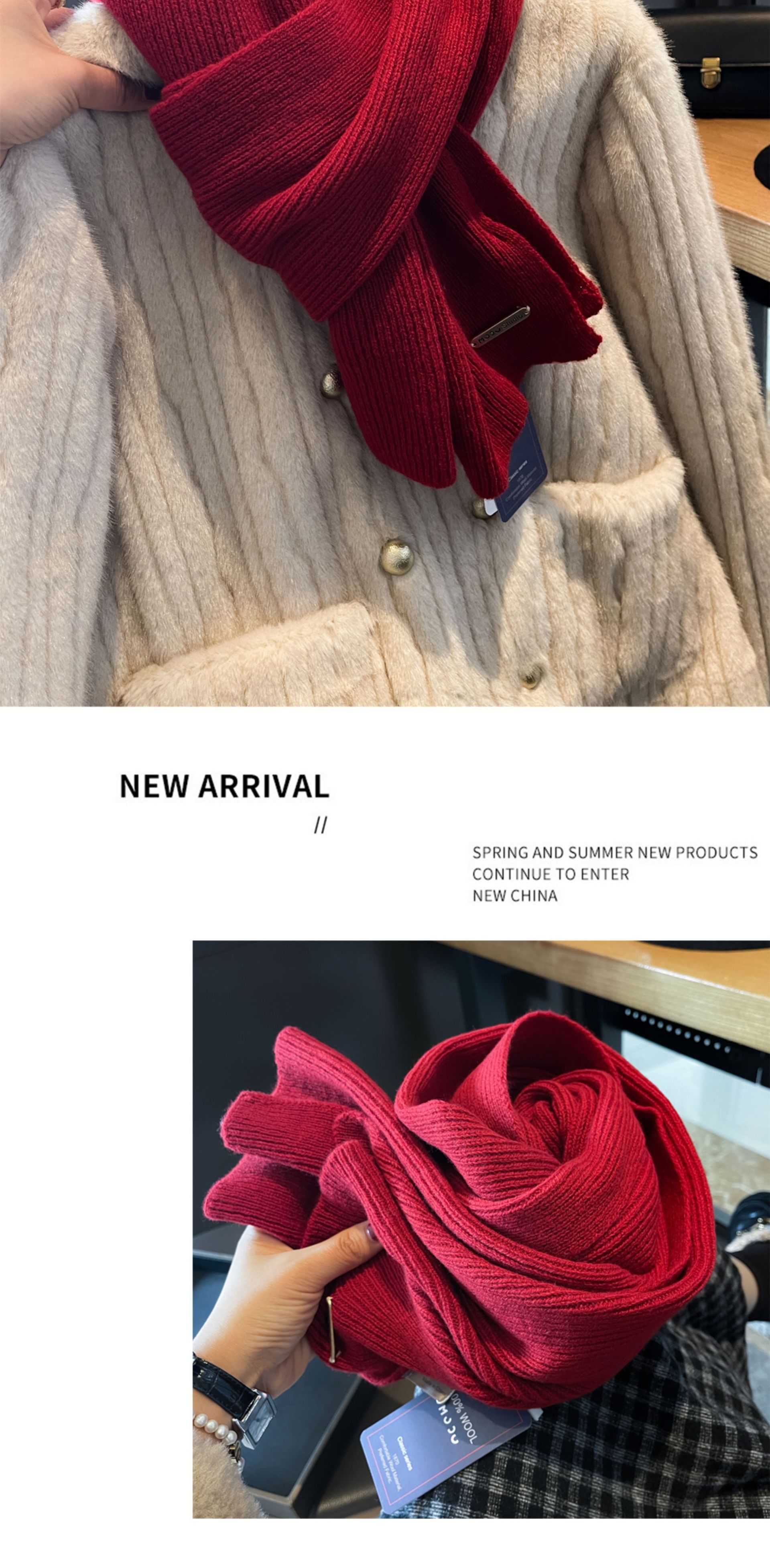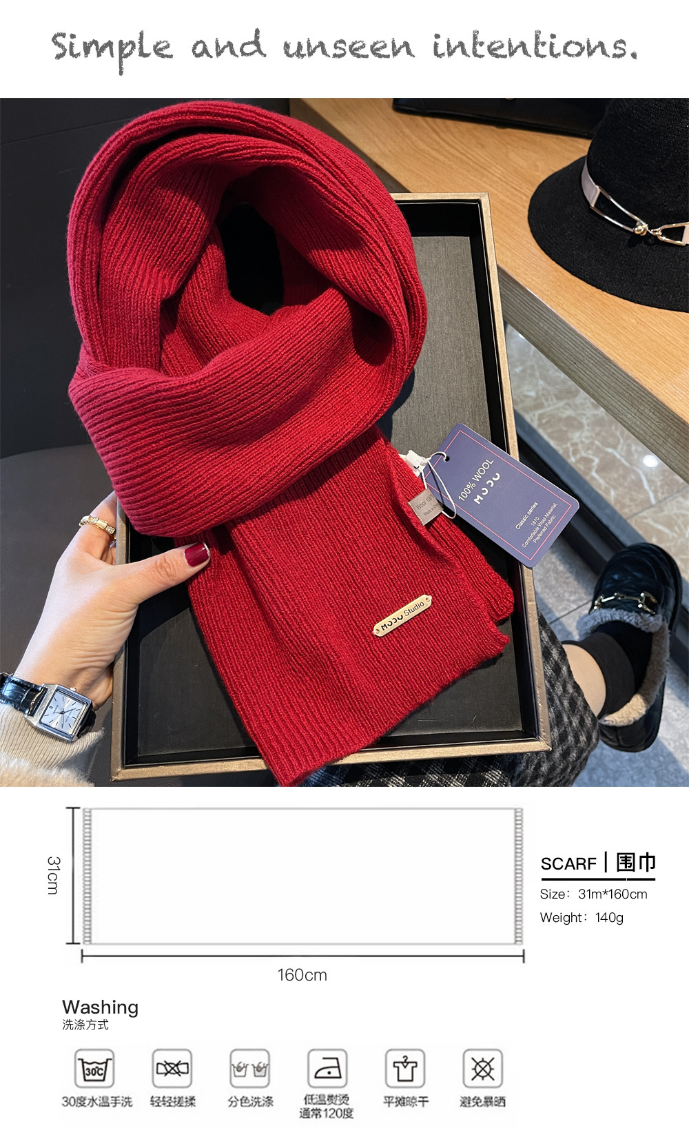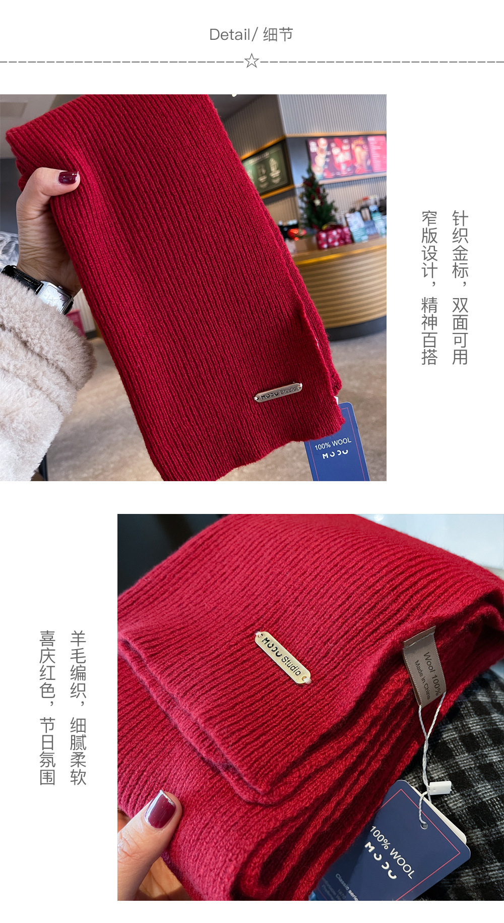 호주 퓨어 울 100 캐시미어 스카프 여자 겨울 크리스마스 새해 레드 따뜻한 니트 좁은 목 올매치