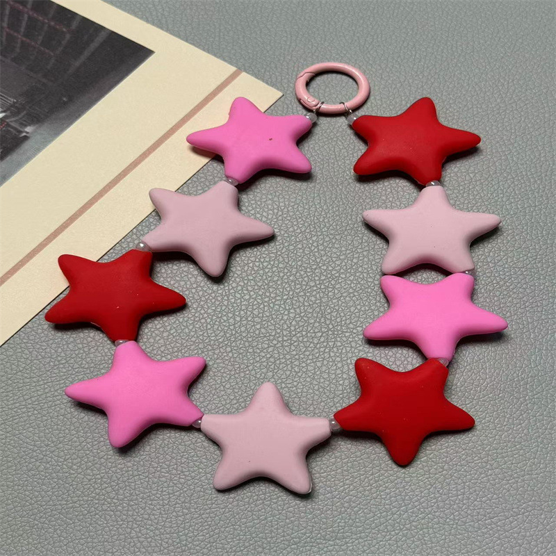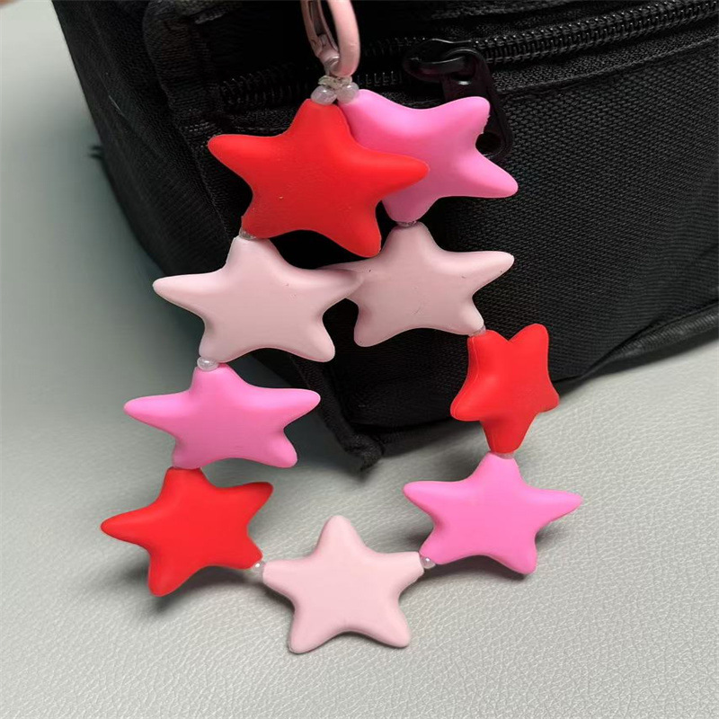 한국식 다채로운 실리콘 스타 명암 컬러 현 시음 스타일 패션 액세서리 허리 매달려 5 점 스타 키 체인 여성용 귀여운 액세서리