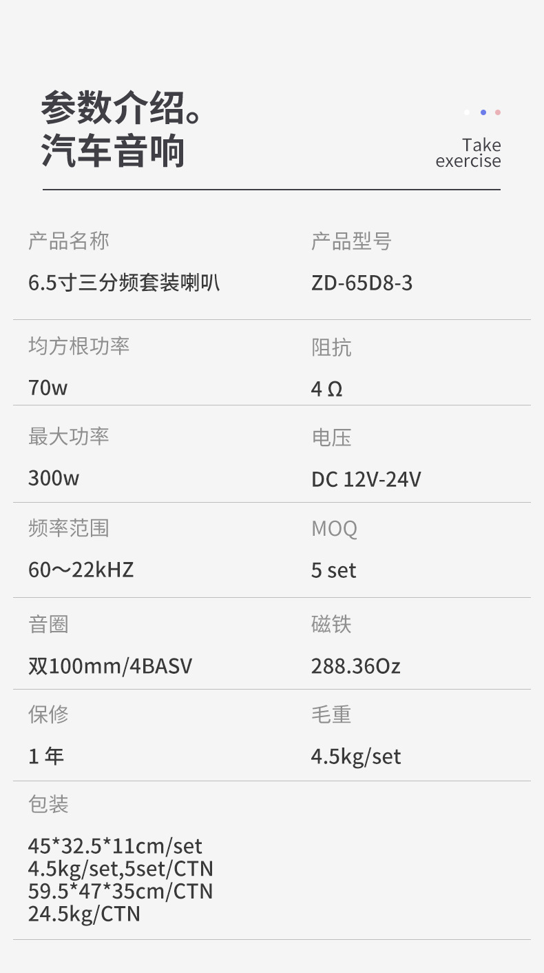 자동차 오디오 6.5inch 세트 스피커 3웨이 개조 고음, 중음, 저음 전용 서브우퍼스토어 가기