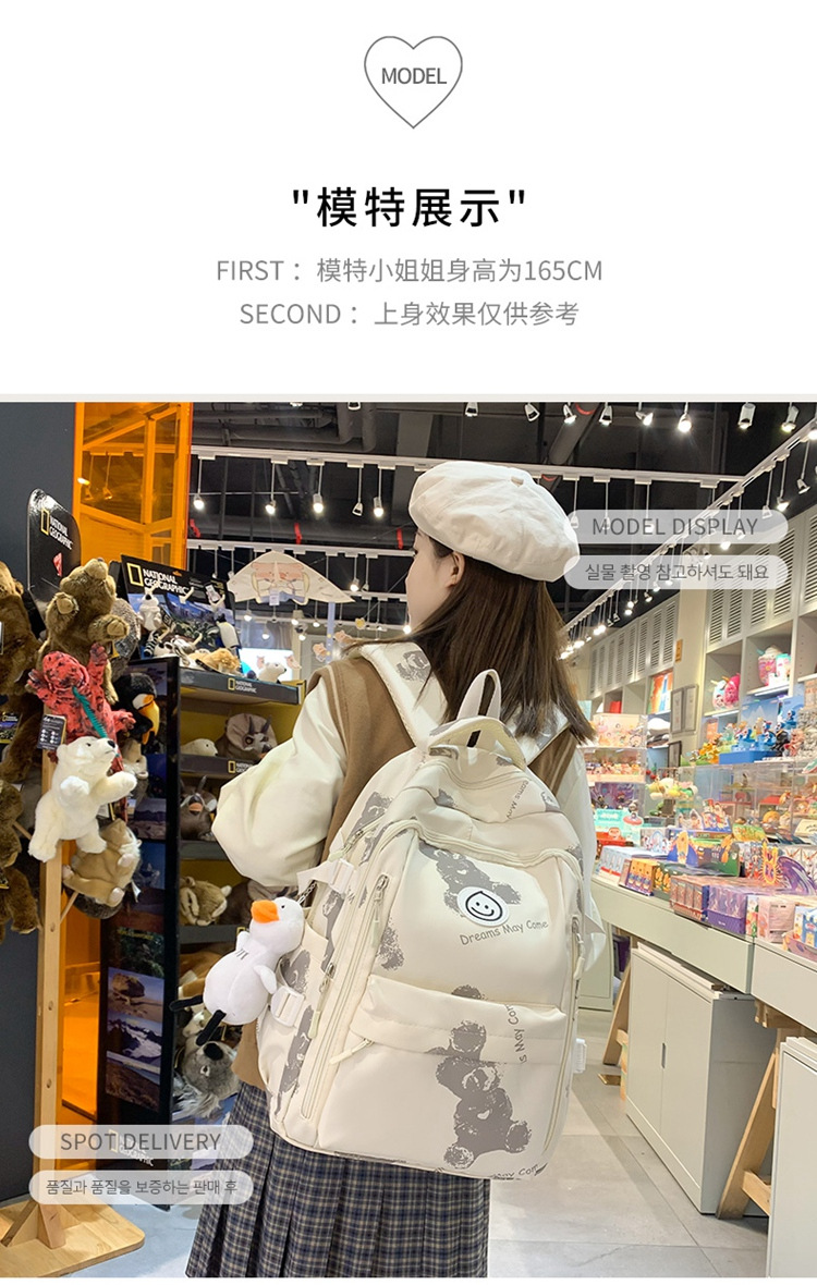 웃는 학생 Schoolbag 새로운 인쇄 배낭 여성 한국 스타일 간단한 대용량 배낭 통기성 캐주얼 여행 가방스토어 가기