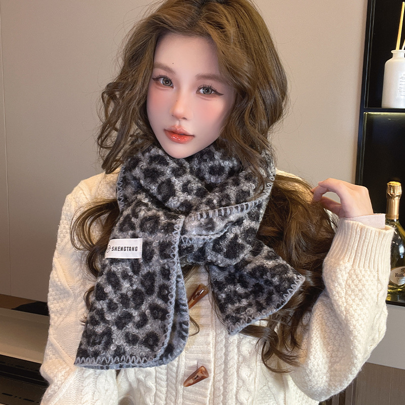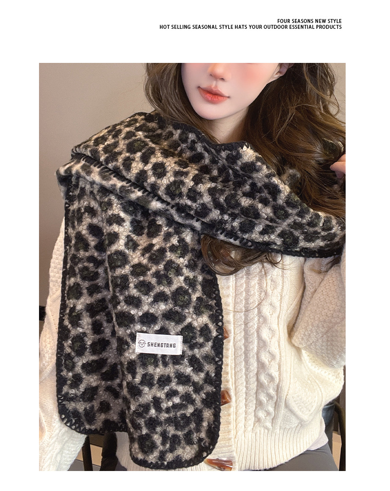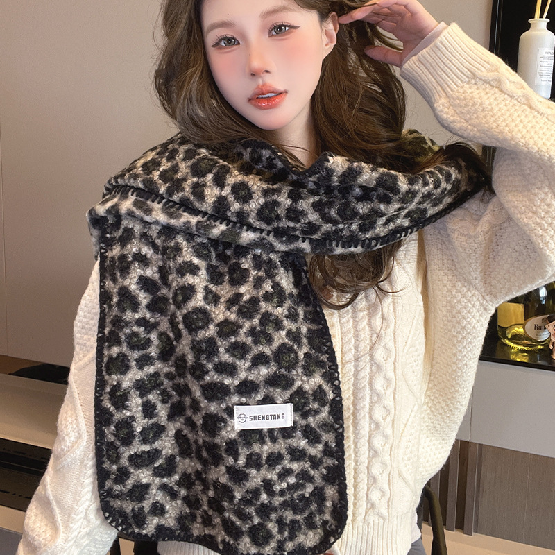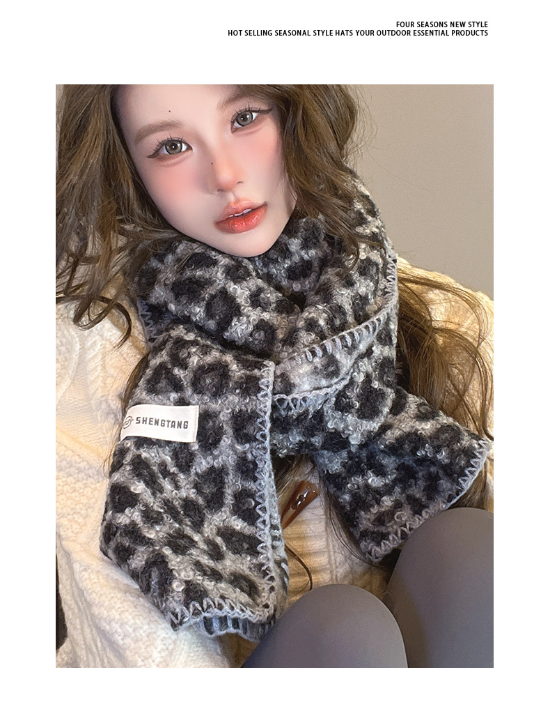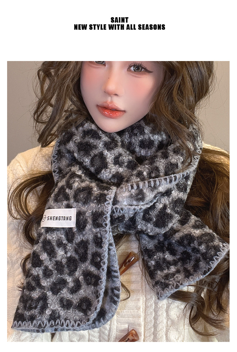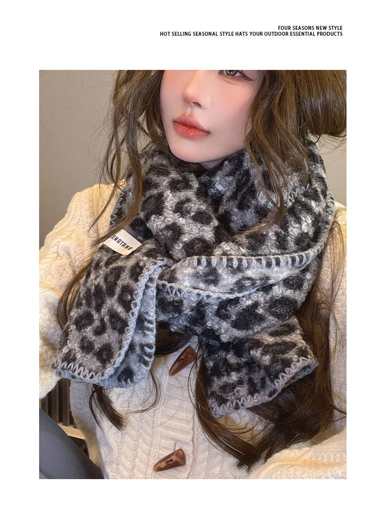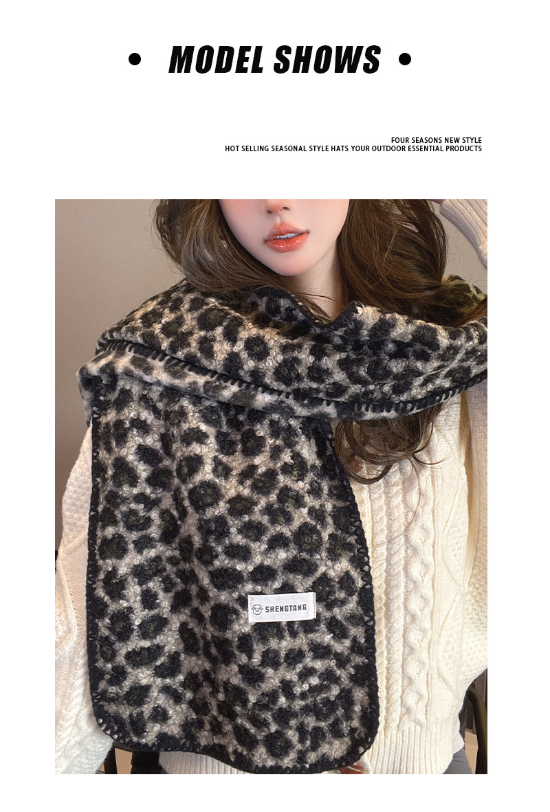 2024 새로운 스타일 스카프 여자 겨울 한국 스타일 양면 착용 레오파드 무늬 스카프 여성을위한 고급 두꺼운 따뜻한 목도리스토어 가기