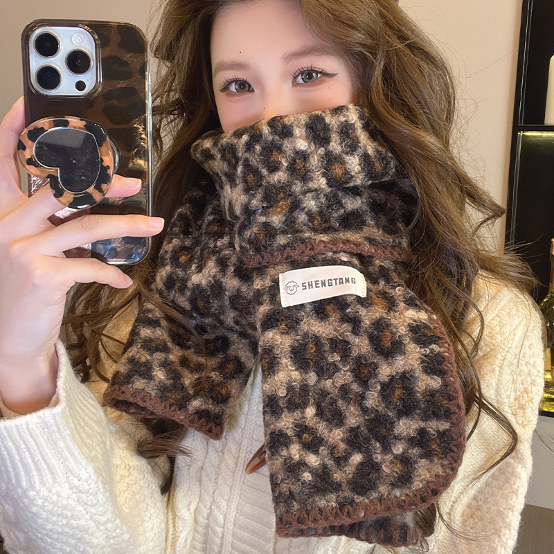 2024 새로운 스타일 스카프 여자 겨울 한국 스타일 양면 착용 레오파드 무늬 스카프 여성을위한 고급 두꺼운 따뜻한 목도리