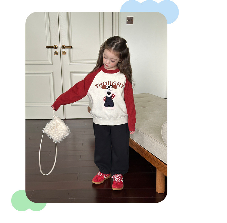 TUTU 아기 코끼리 소녀 스웨터 2024 가을, 겨울 새로운 어린이 니트 아동 의류 서양식 긴팔 아기 따뜻한상의