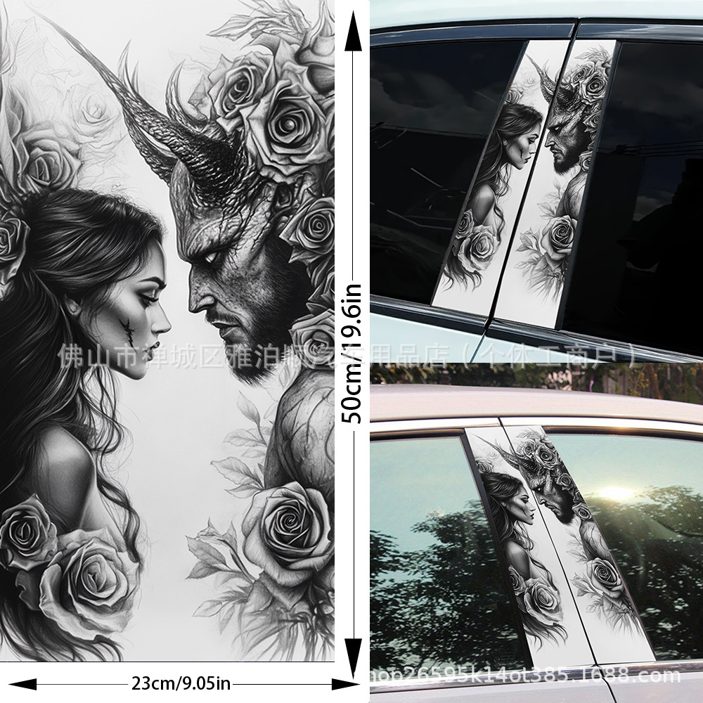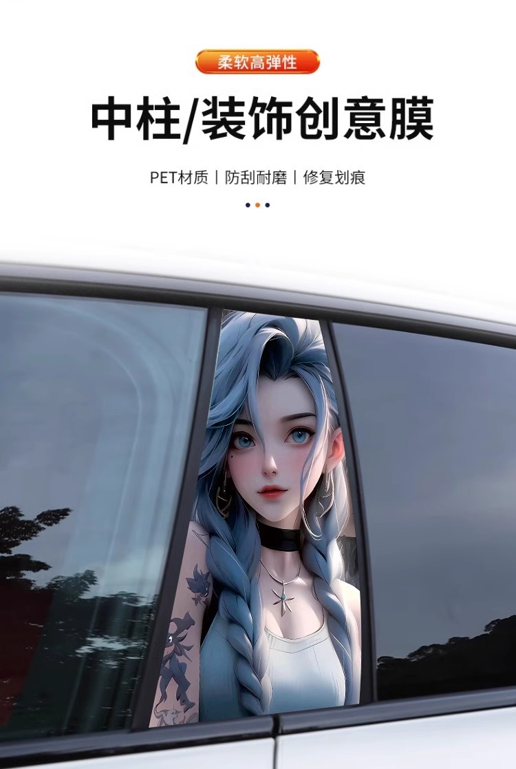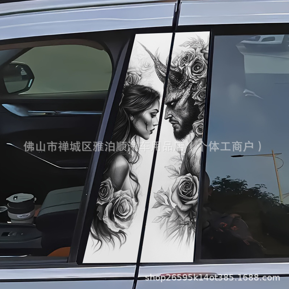 자동차 센터 칼럼 3 차원 만화 애니메이션 성격 장식 스티커 자동차 B-필라 스프레이 페인팅 보호 필름 자동차 스티커 DIY 스티커