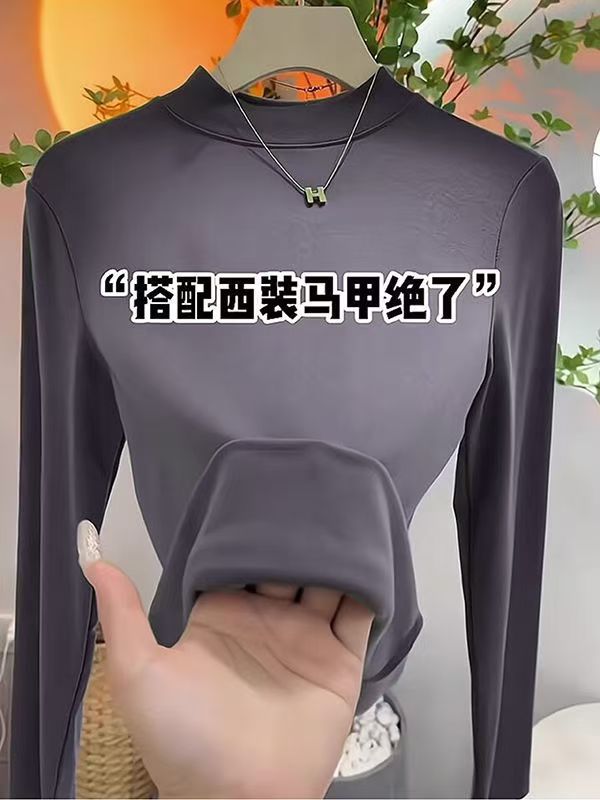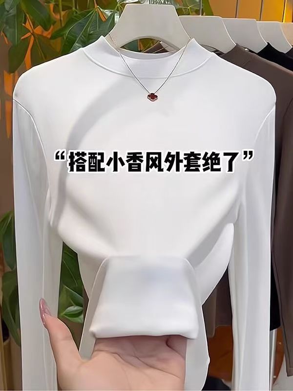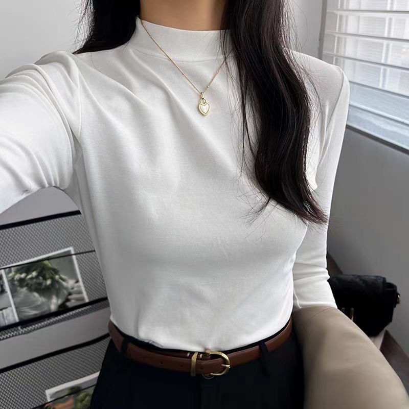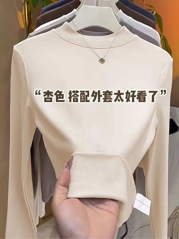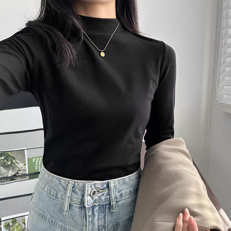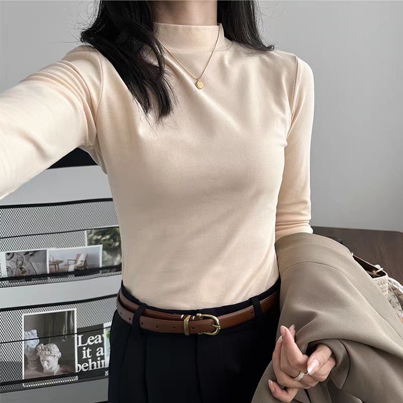 슬림 한 기질 세미 하이 칼라 긴 소매 티셔츠 여성용 바닥 재킷이있는 가을과 겨울 독일 벨벳 따뜻한 인테리어