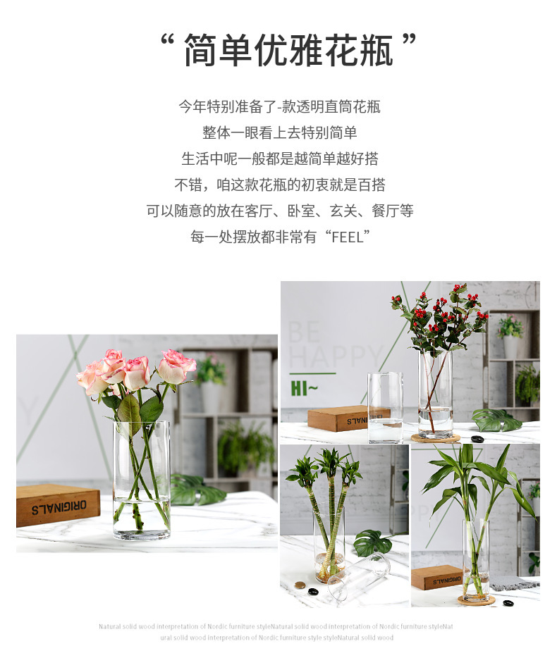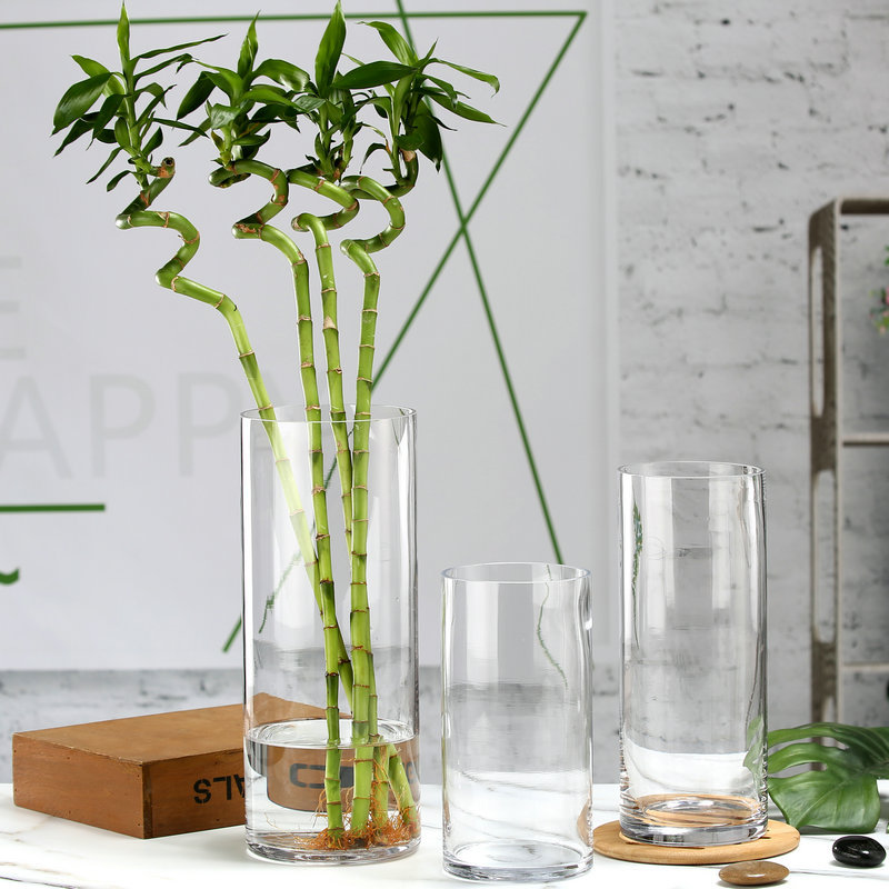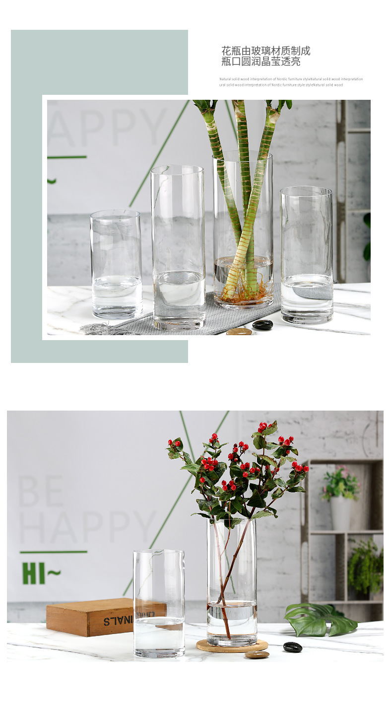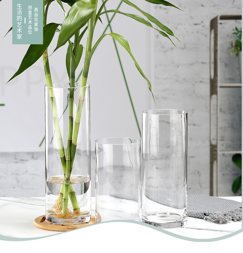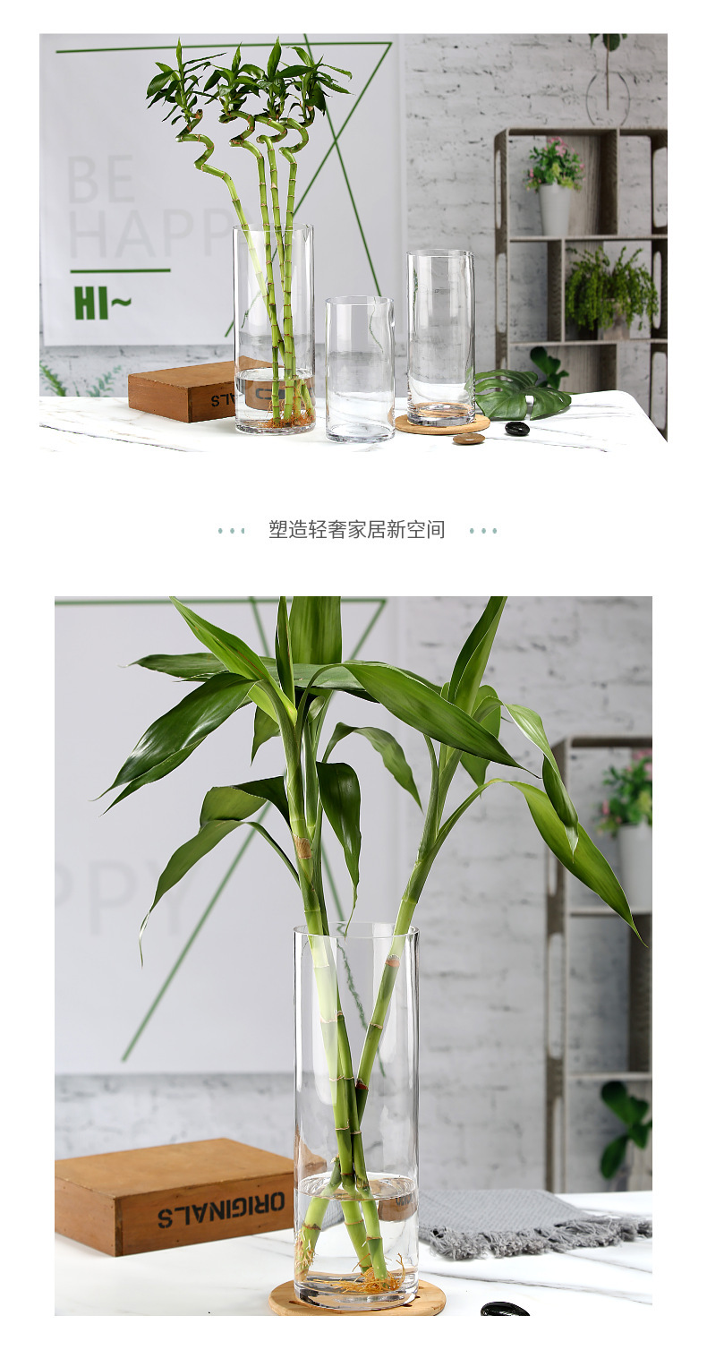 심플한 대형 투명 바닥부터 천장까지 직선형 꽃병 꽃꽂이 수경 재배 부자 대나무 마취 나무 거실 장식 꽃병스토어 가기