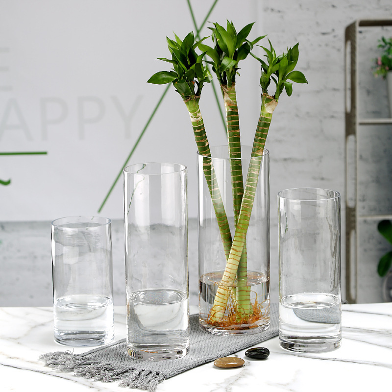 심플한 대형 투명 바닥부터 천장까지 직선형 꽃병 꽃꽂이 수경 재배 부자 대나무 마취 나무 거실 장식 꽃병