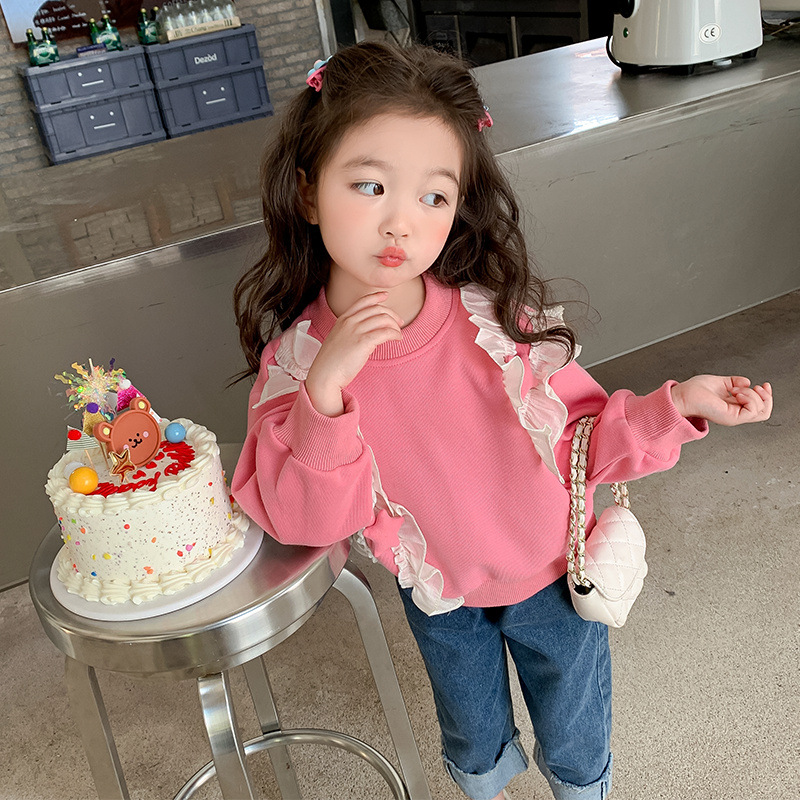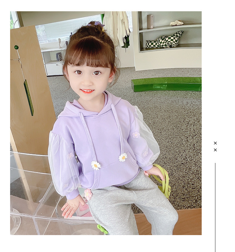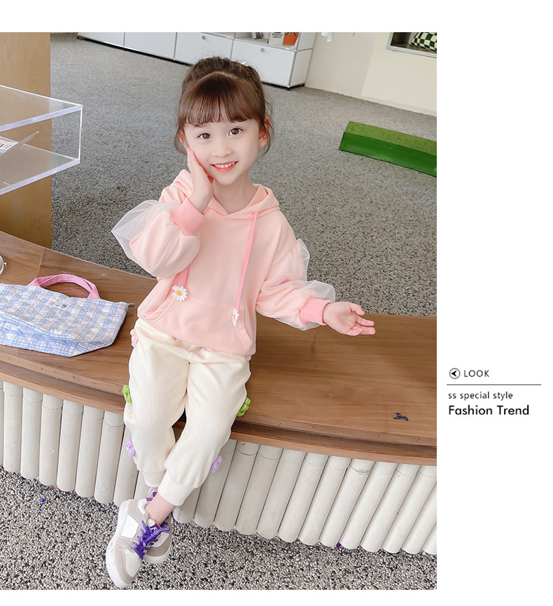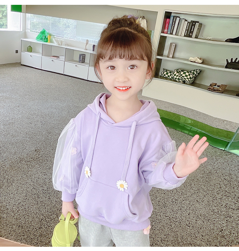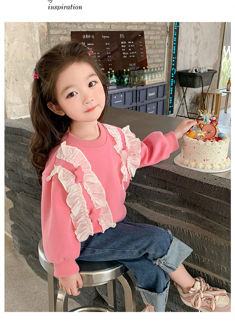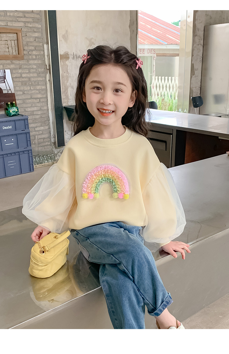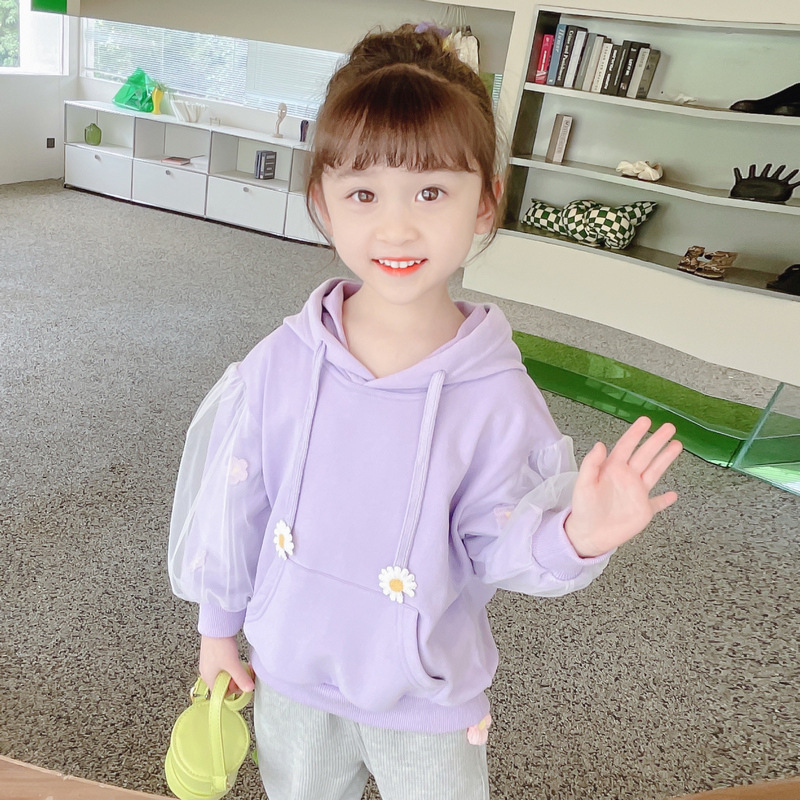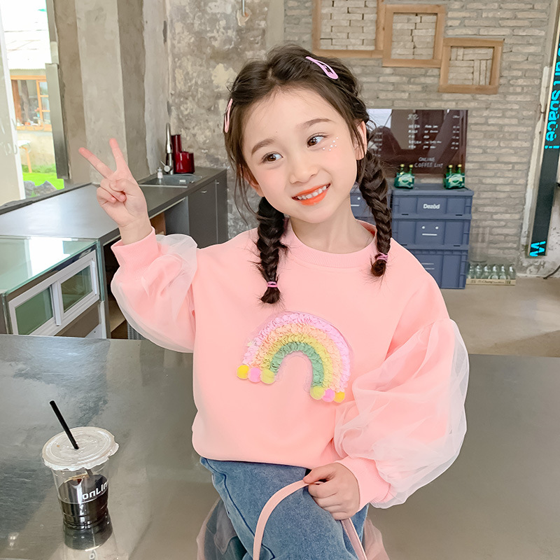 소녀의 봄과 가을 스웨트 셔츠 새로운 스타일 소녀 아기 세련된 최고 어린이 메쉬 긴 소매 세련된 3 차원 옷 유행스토어 가기