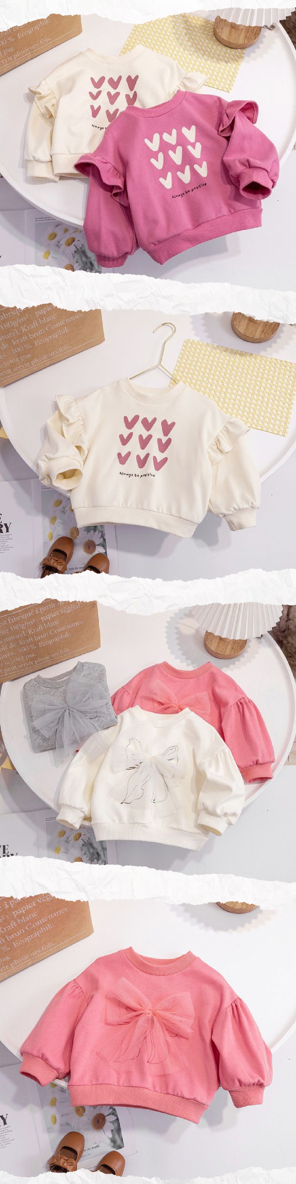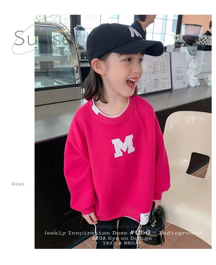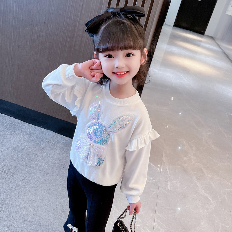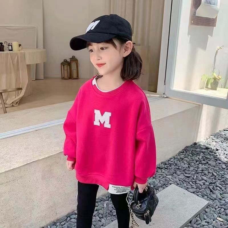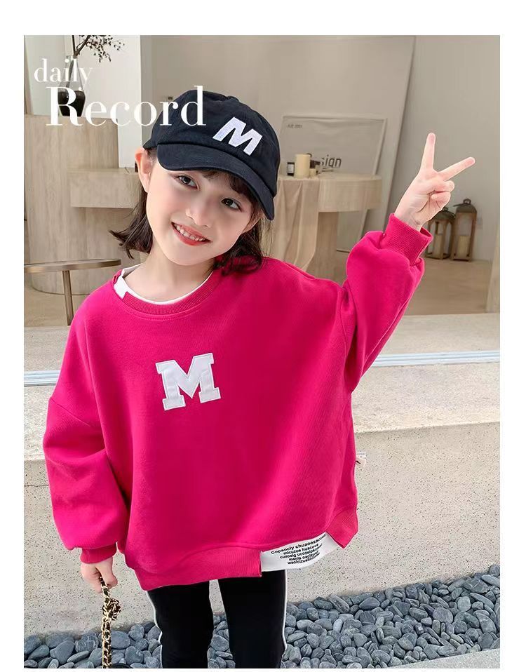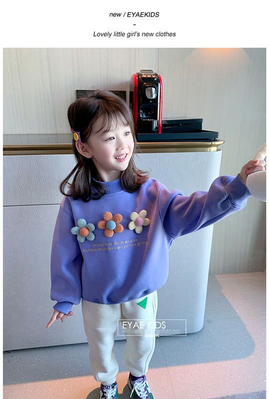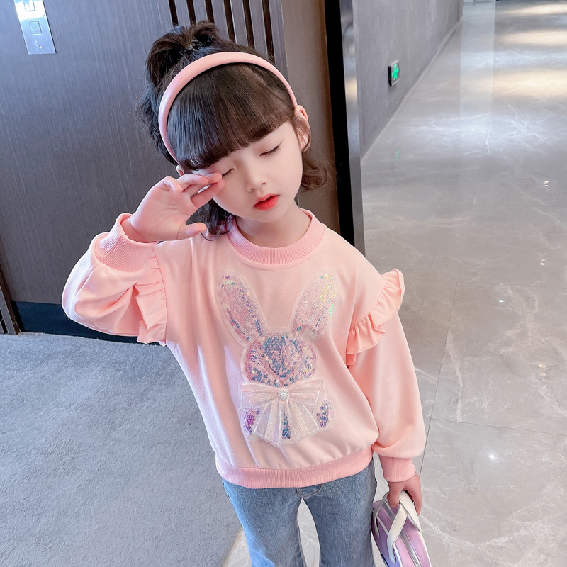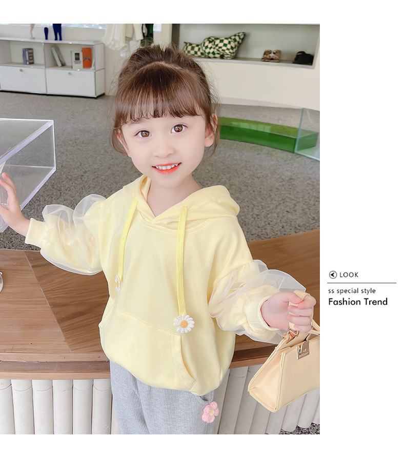 소녀의 봄과 가을 스웨트 셔츠 새로운 스타일 소녀 아기 세련된 최고 어린이 메쉬 긴 소매 세련된 3 차원 옷 유행스토어 가기