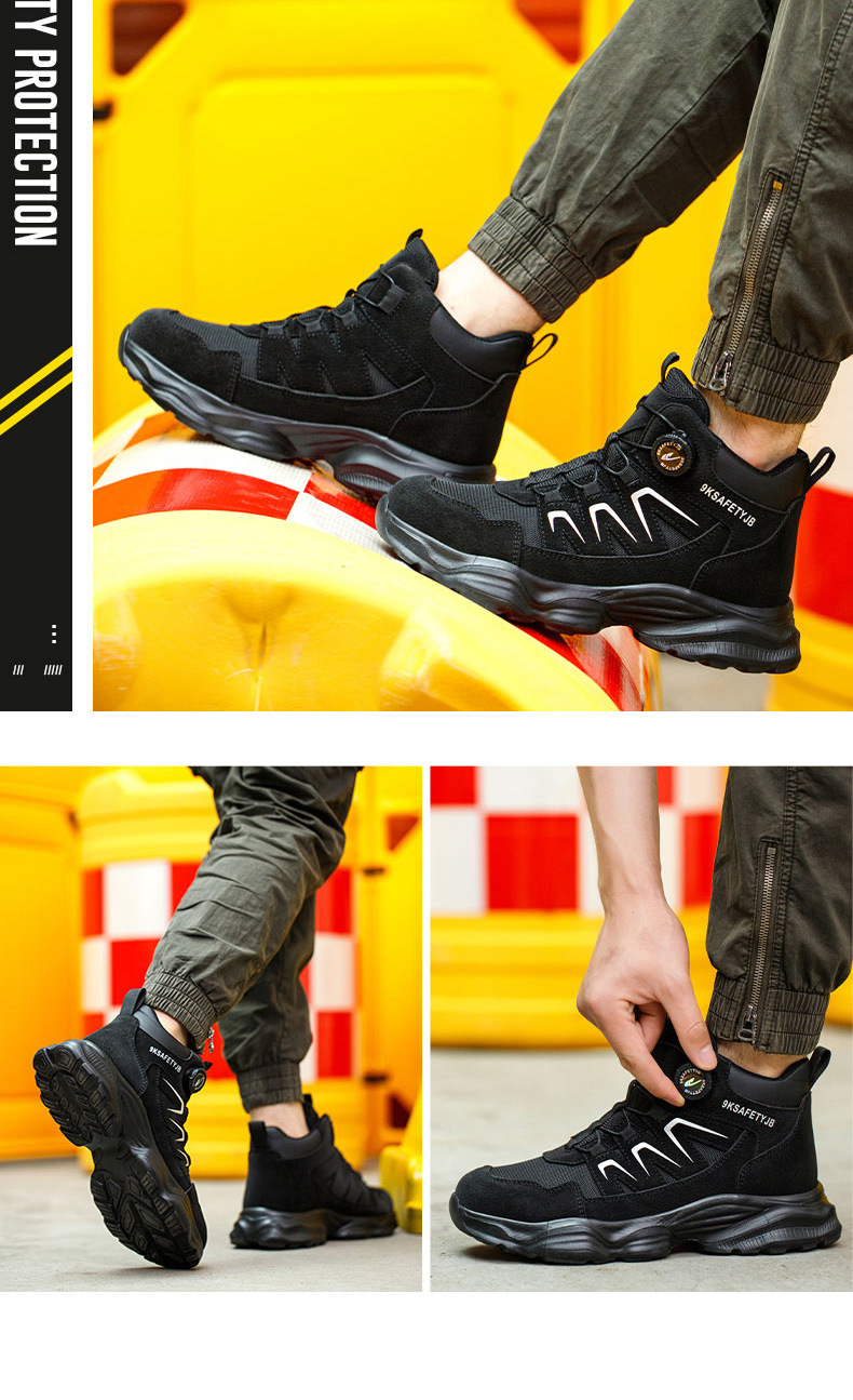 새로운 높은 배럴 노동 보호 신발 미끄럼 방지 오일 방지 방지 스매싱 방지 펑크 내마모성 신발 회전 버클 노동 보호 신발은 오랫동안 피곤하지 않습니다.스토어 가기