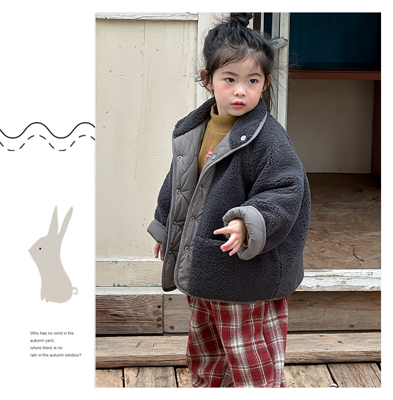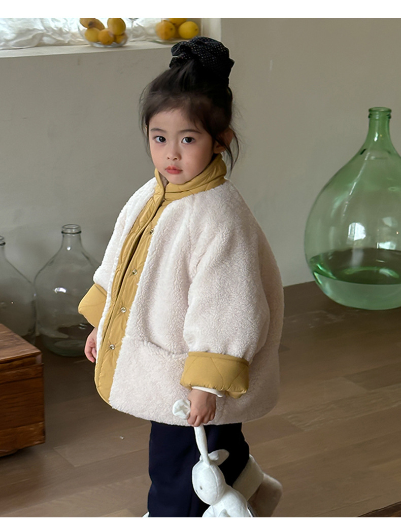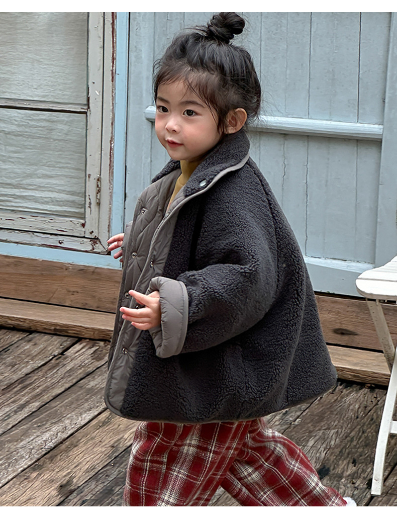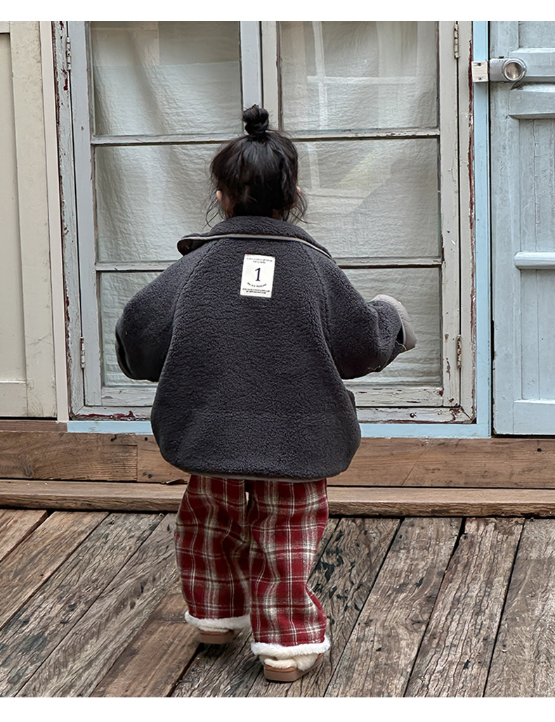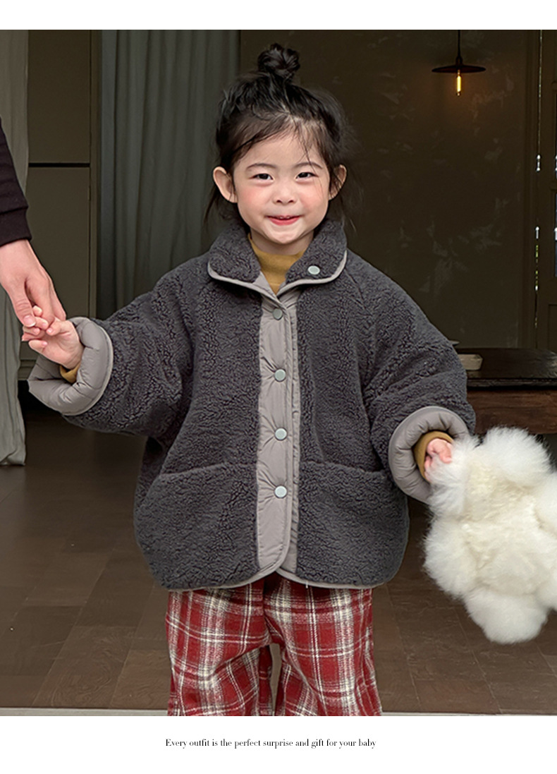 어린이용 호리병 모양 양면 재킷 2025 겨울 신상 한국 스타일 레터링 라벨 양털 재킷
