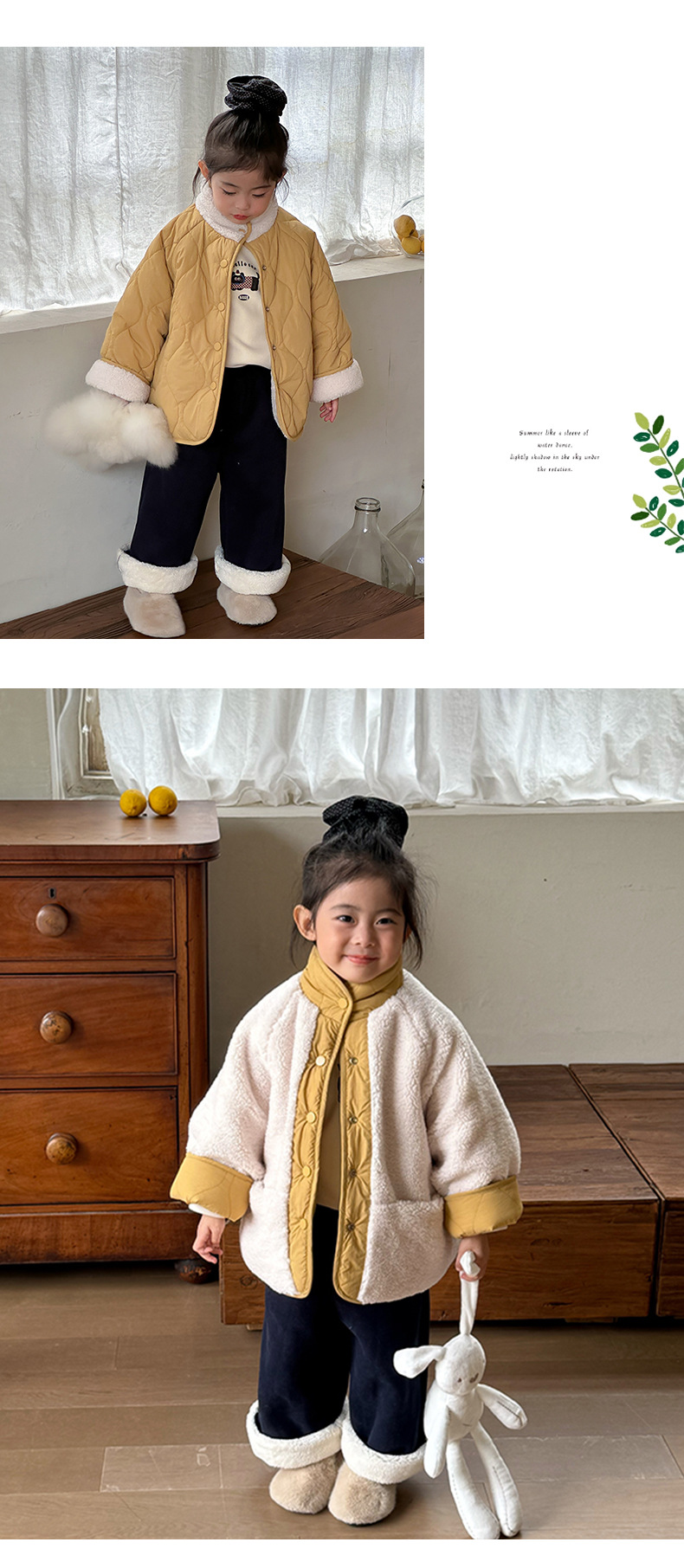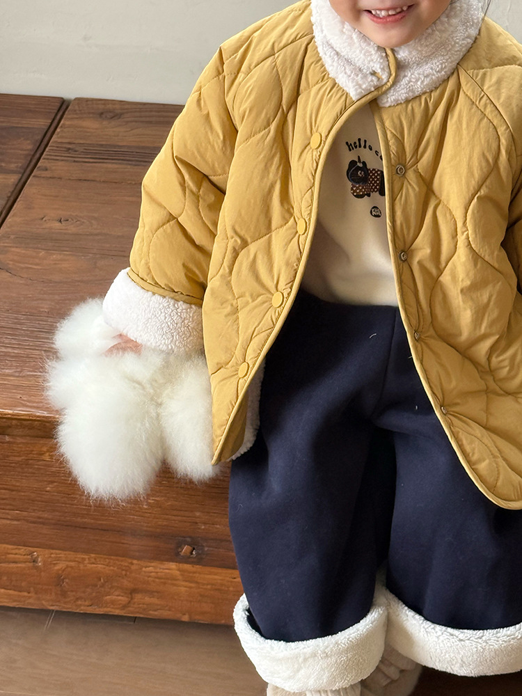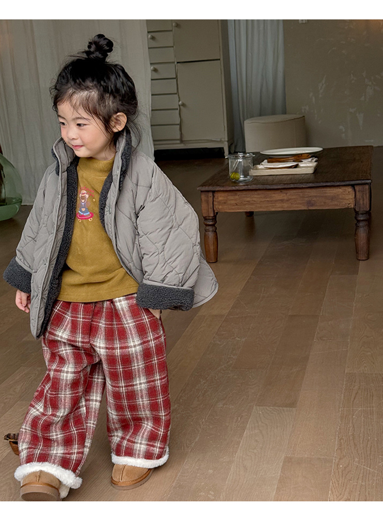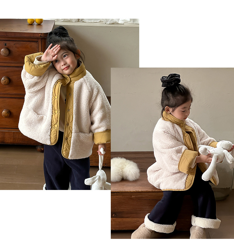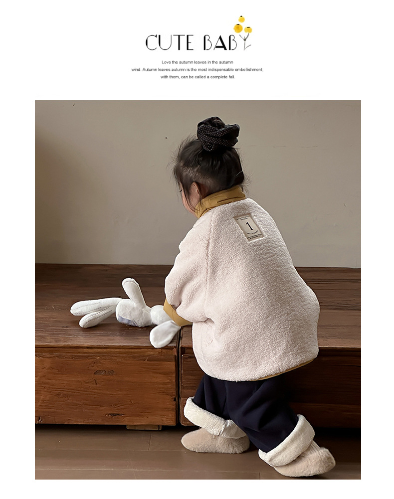 어린이용 호리병 모양 양면 재킷 2025 겨울 신상 한국 스타일 레터링 라벨 양털 재킷