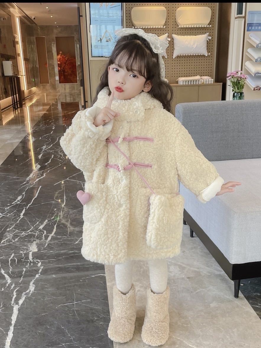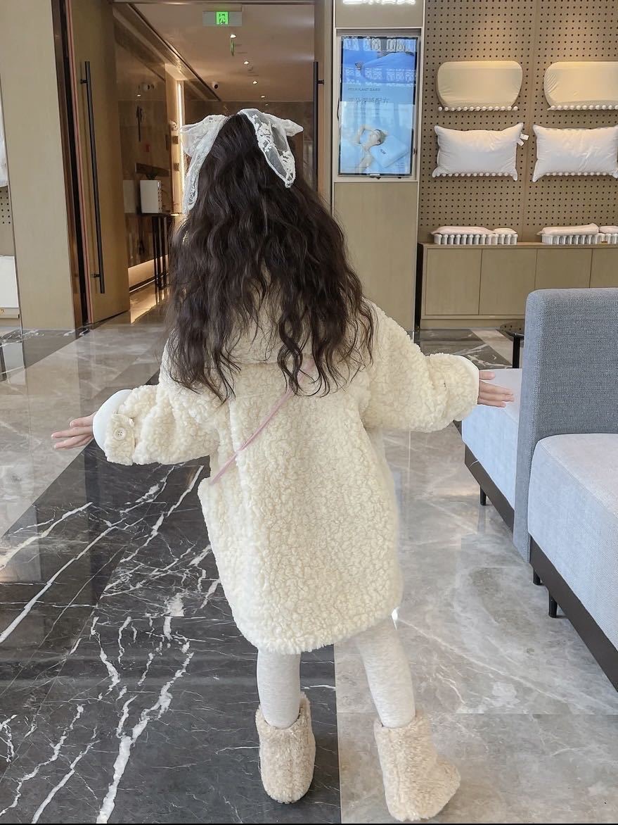 소녀 가을과 겨울 코트 2024 어린이 중장 양면 양고기 양모 및 캐시미어 코트 여성용 트렌디 한 외국식 모직 스웨터스토어 가기