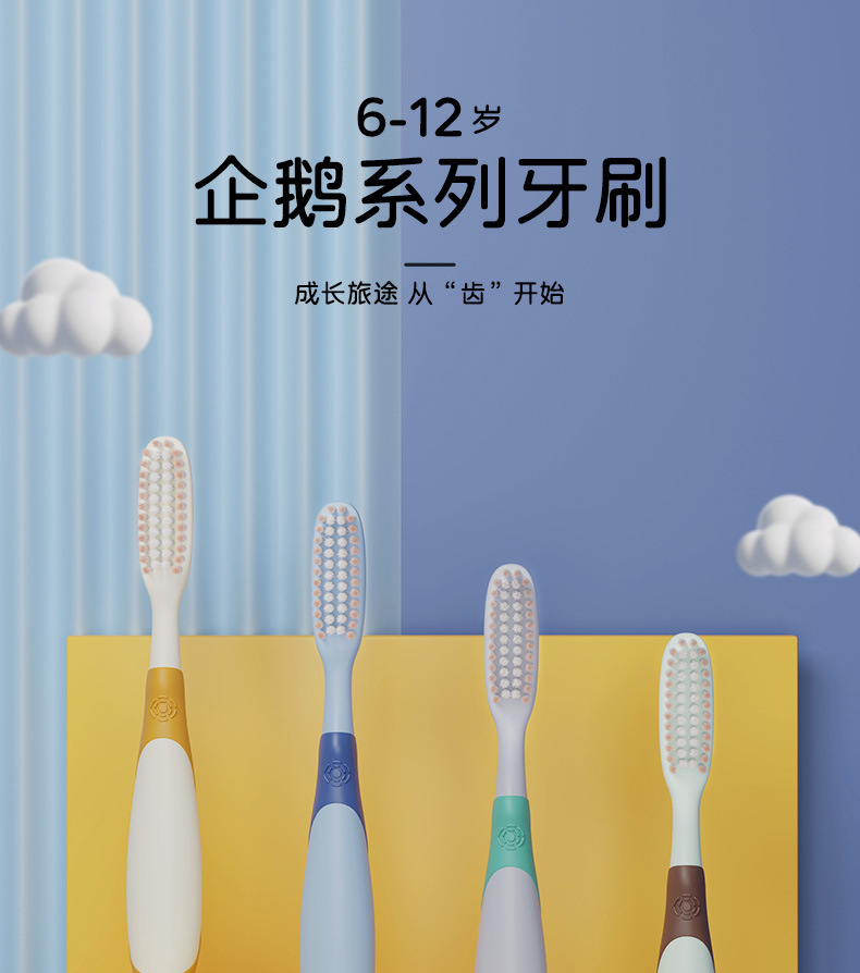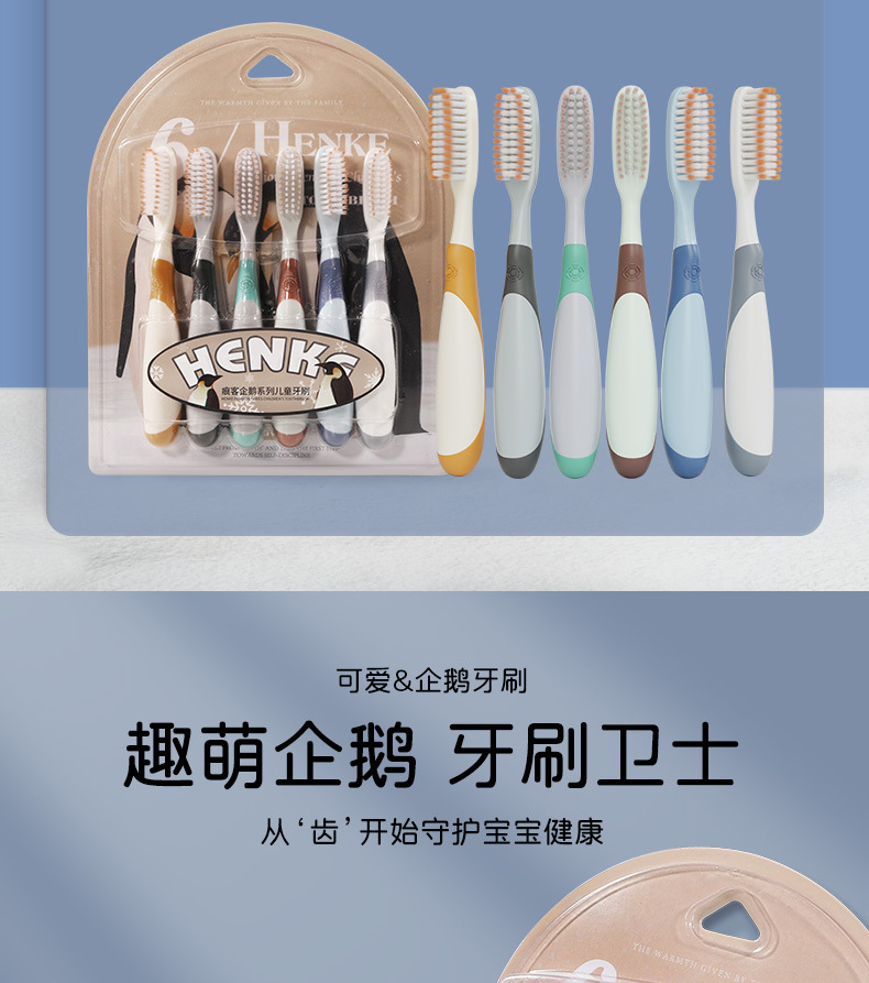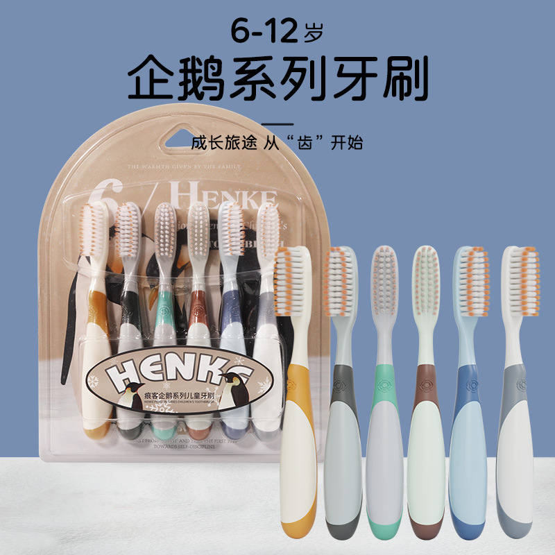 [마크 게스트] 6 팩 펭귄 긴 머리 큰 머리 부드러운 머리 어린이 칫솔 6-12 세 효율적인 청소 미끄럼 손잡이스토어 가기