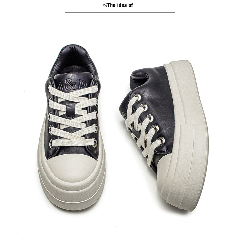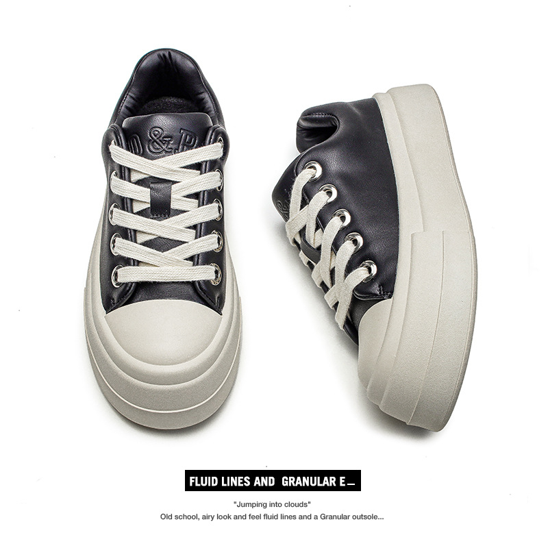2024 새로운 여름 로우 탑 가죽 신발 통기성 라운드 발가락 두꺼운 바닥 유행 신발 유행 캐주얼 올 매치 높은 보드 신발스토어 가기