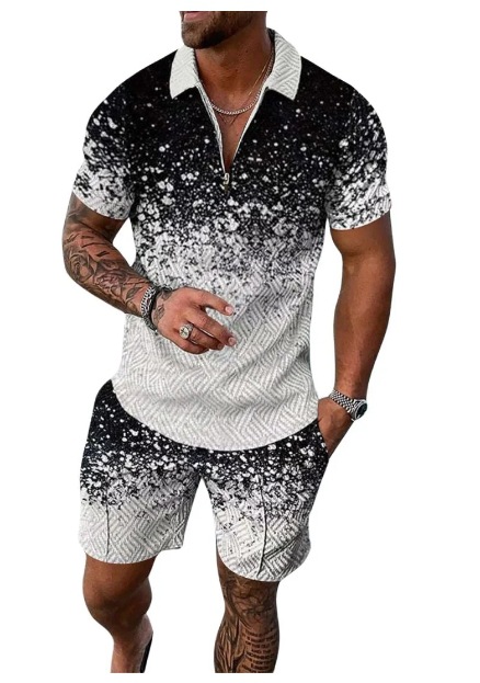 2024POLO 지퍼 셔츠 짧은 소매 세트 독립 역 국경 유럽 및 미국 남성의 새로운 독립 역 공급 레저 운송
