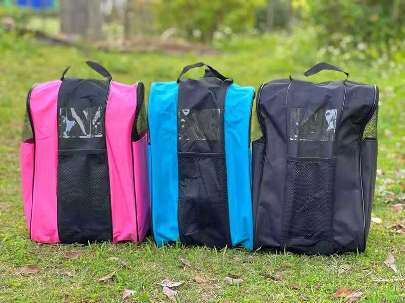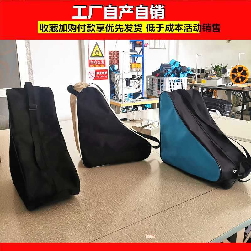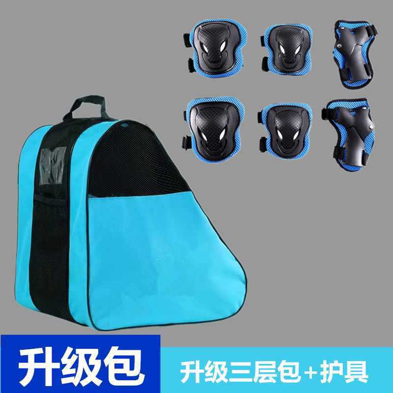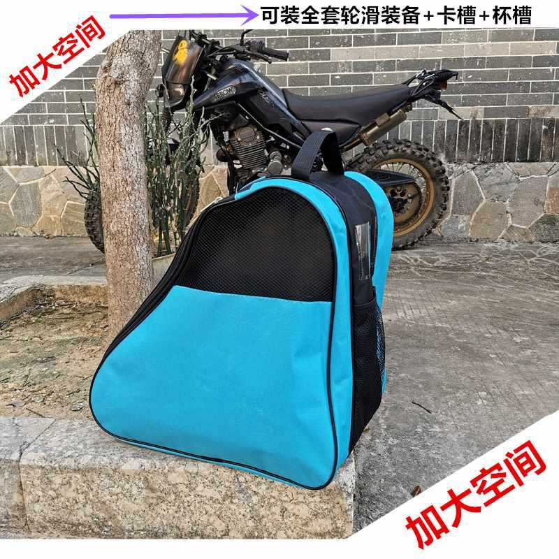 • 검정색과 파란색의 이중 수납 숄더백은 롤러 스케이트 전체 세트를 수용할 수 있습니다.