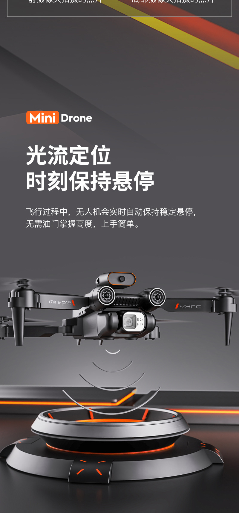 드론 P12 드론 쿼드콥터 HD 항공 사진 장애물 회피 광학 흐름 긴 배터리 수명 원격 제어 항공기 장난감스토어 가기
