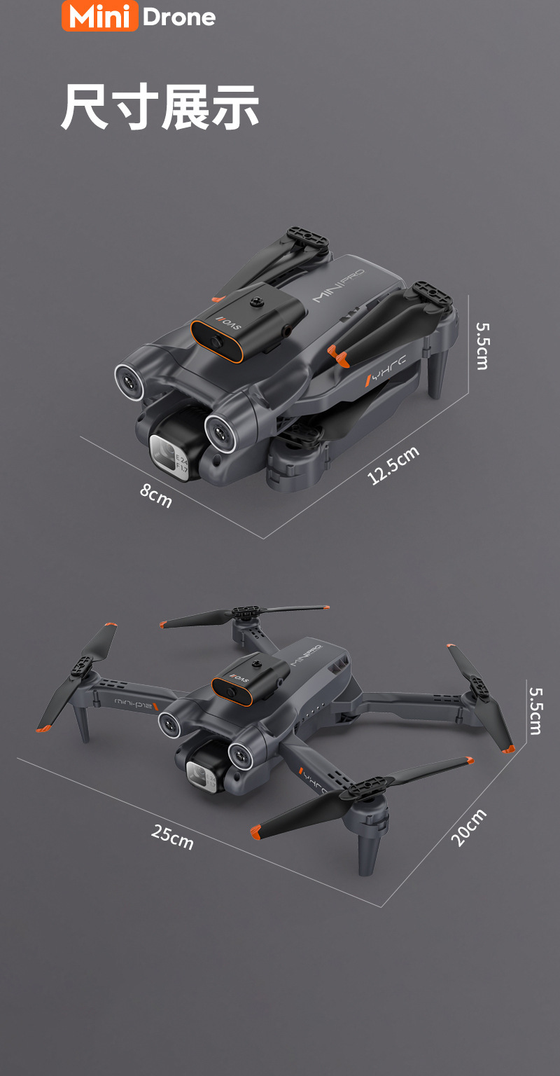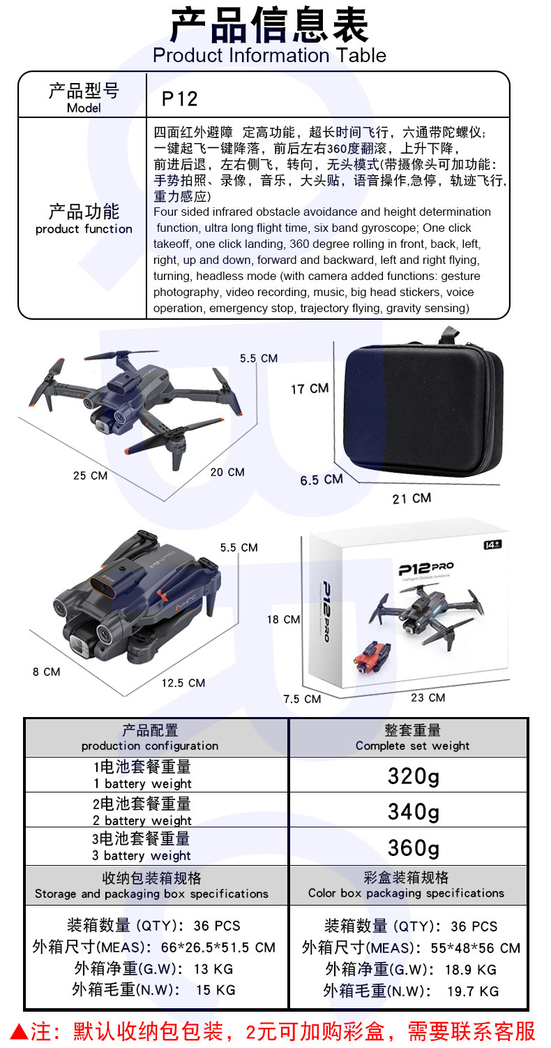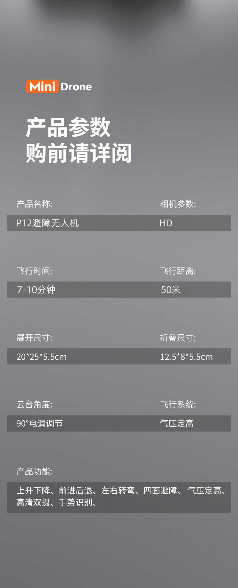 • [일반 브러시 버전] P12 블랙 [브러시리스 모터 + 4면 장애물 회피 + 광학 흐름 + 전자 제어 듀얼 렌즈]