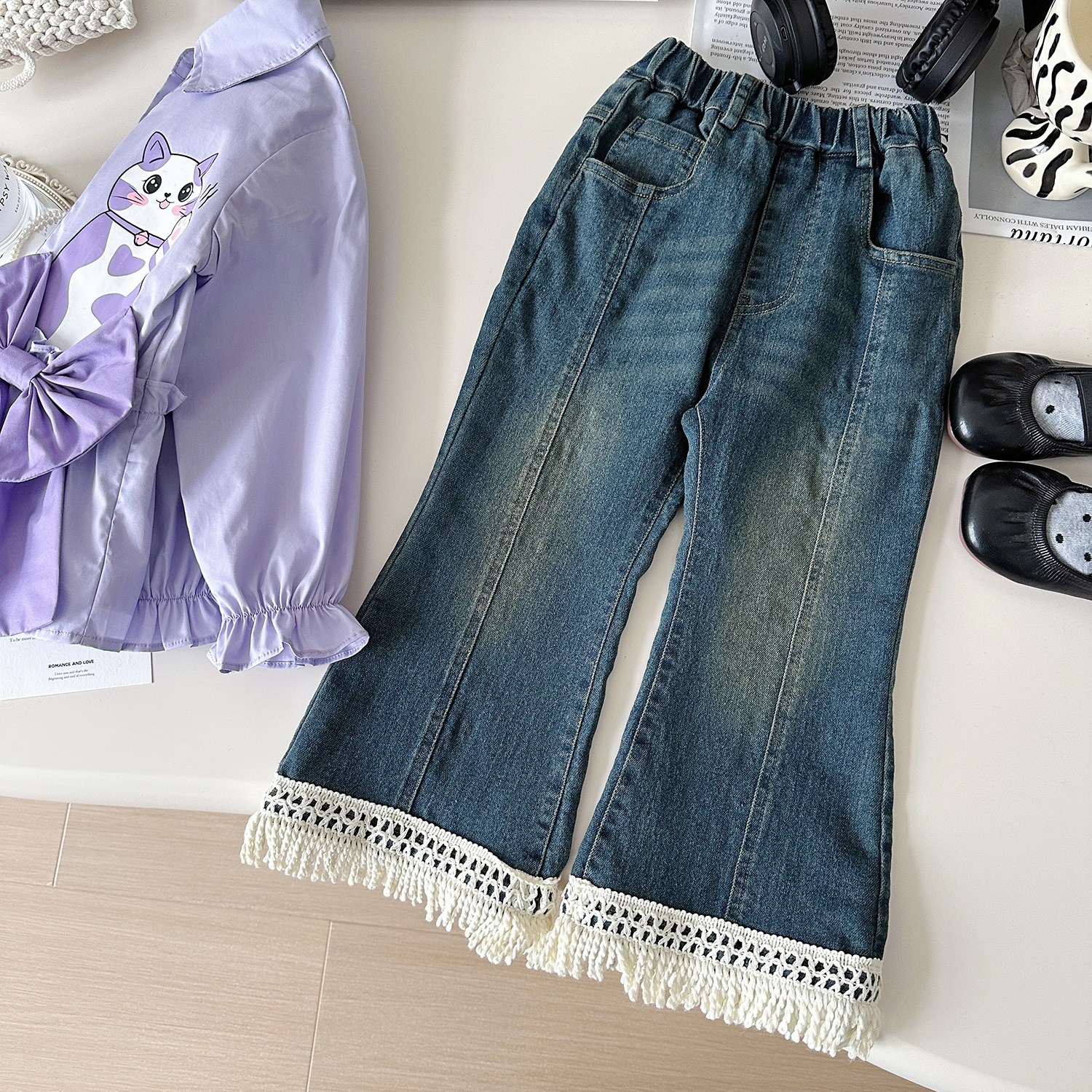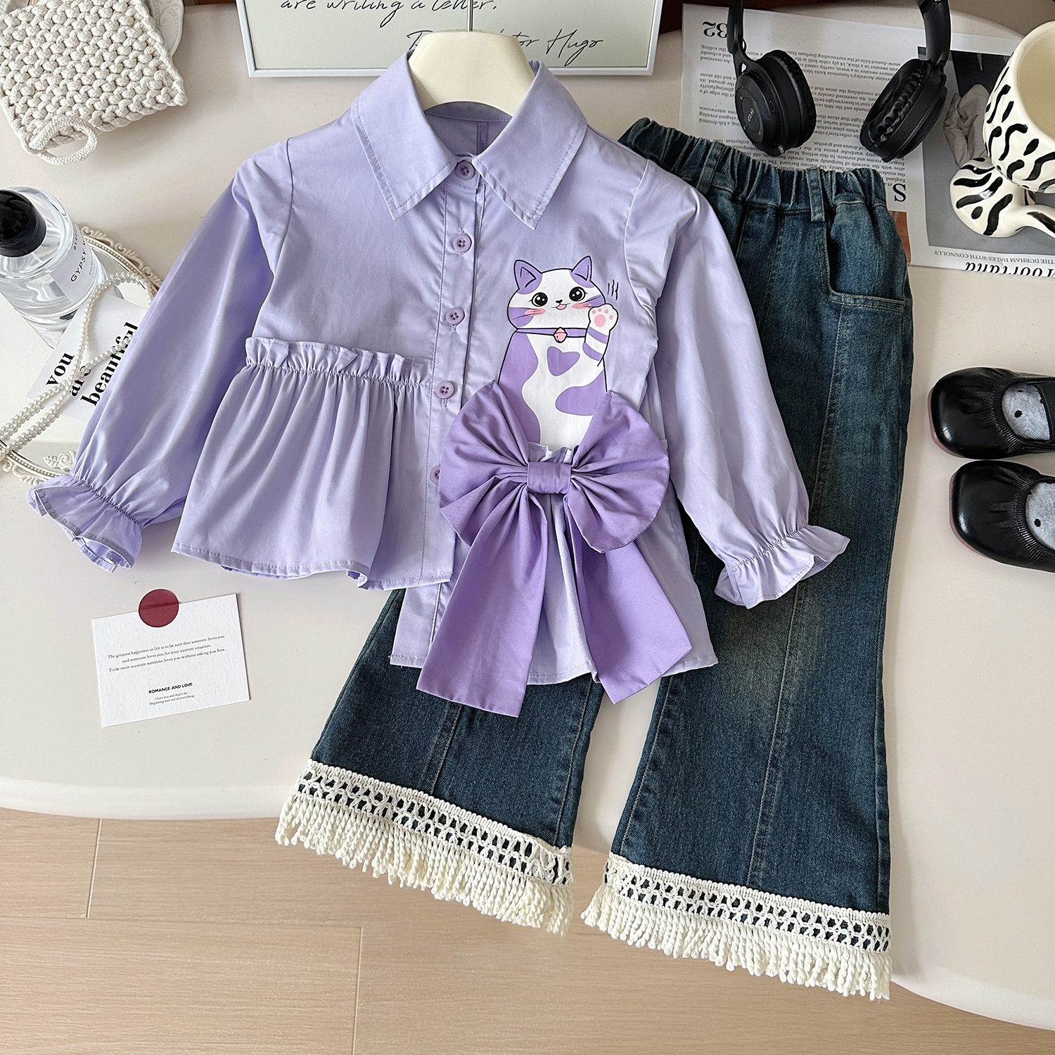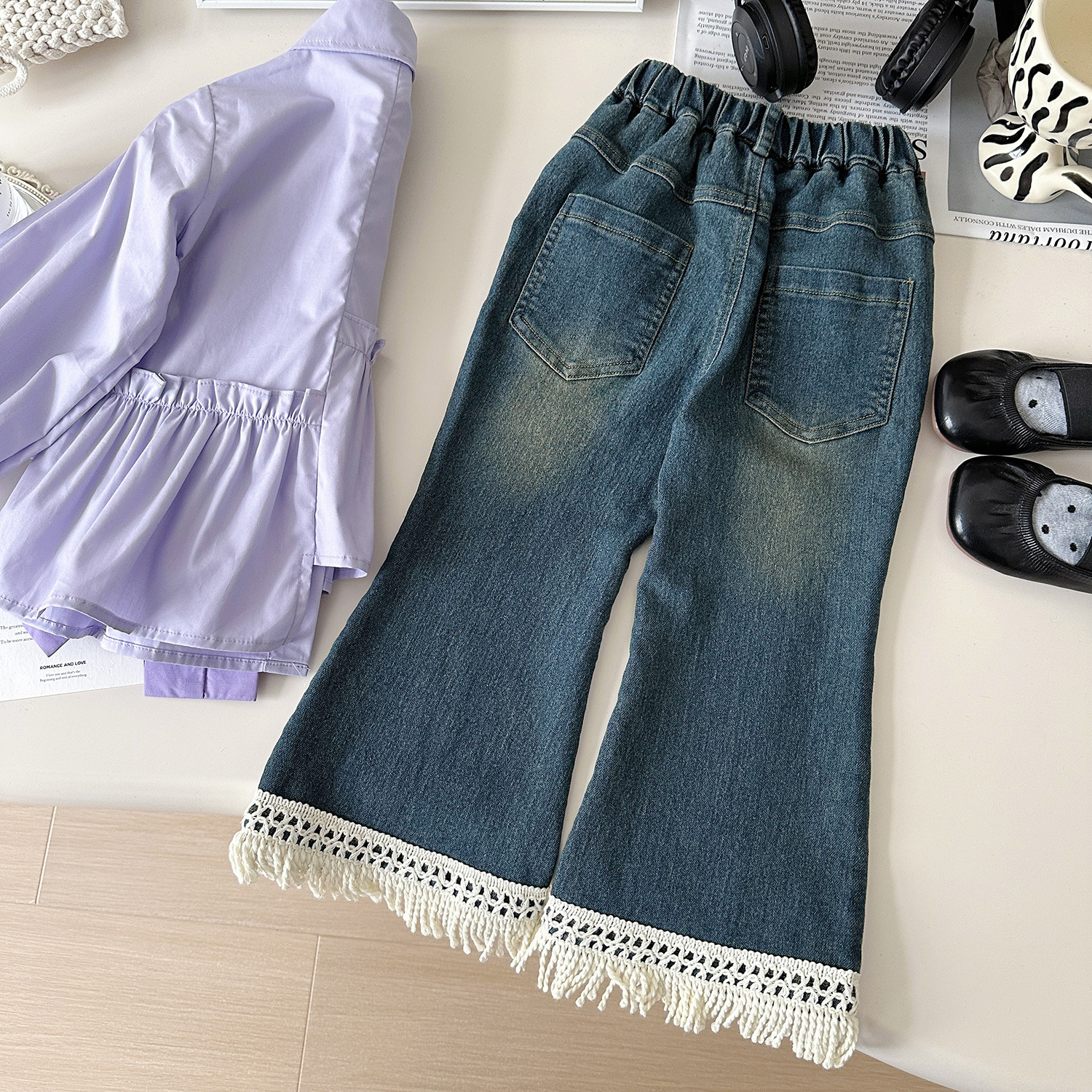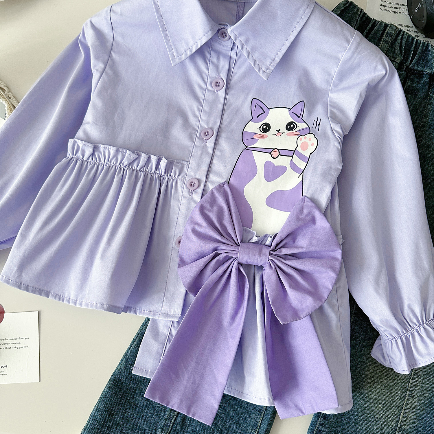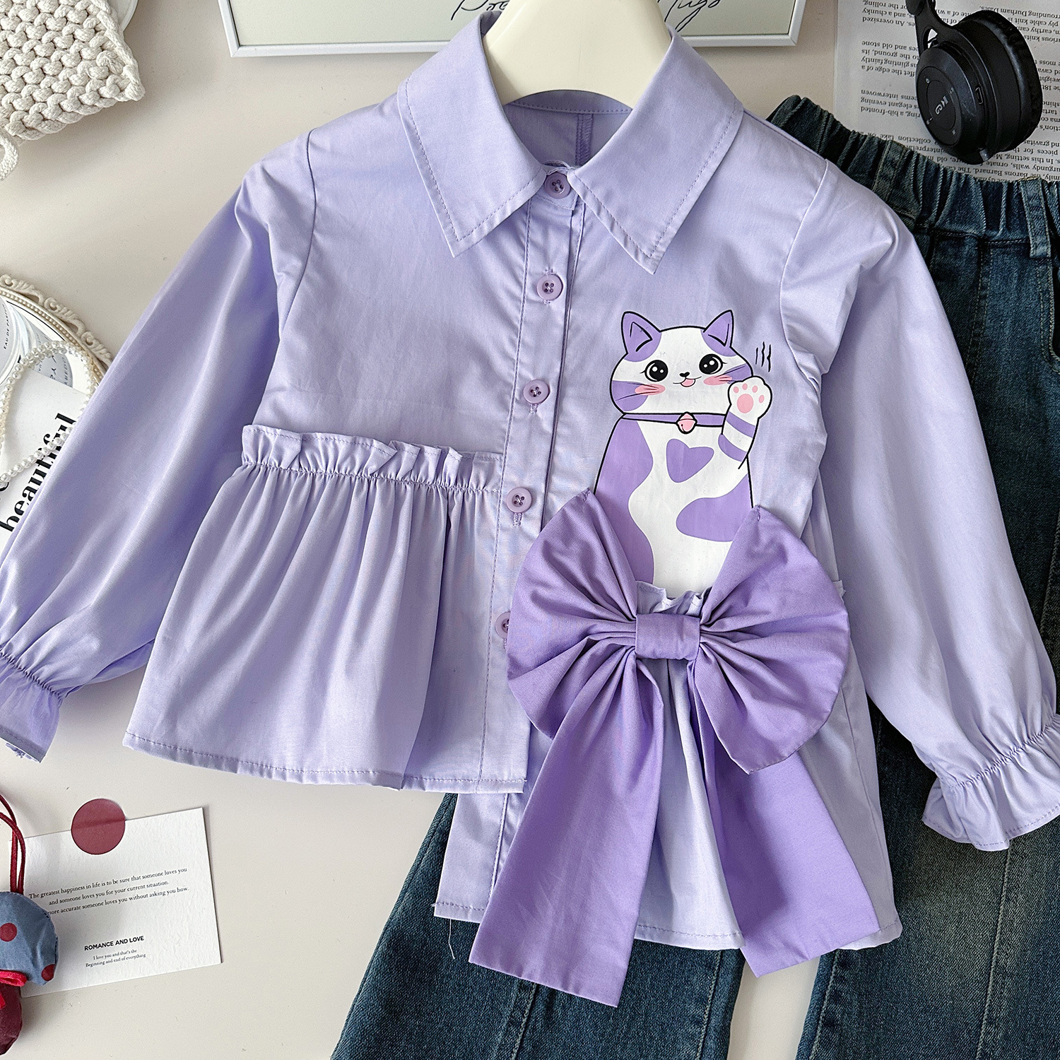 가을 2024 새로운 한국 소녀 보라색 셔츠 새끼 고양이 슬림 데님 바지 세트 67668스토어 가기