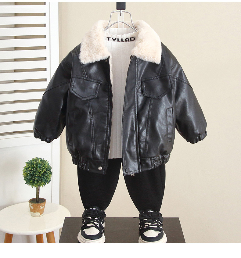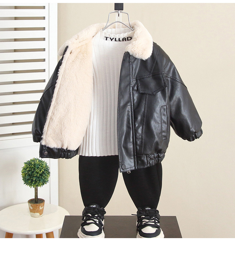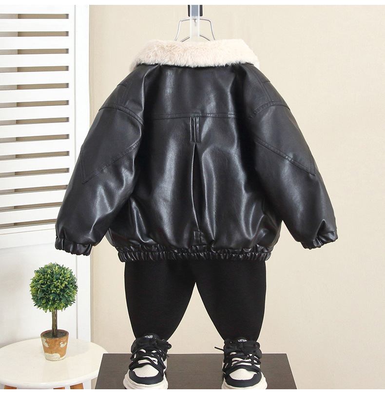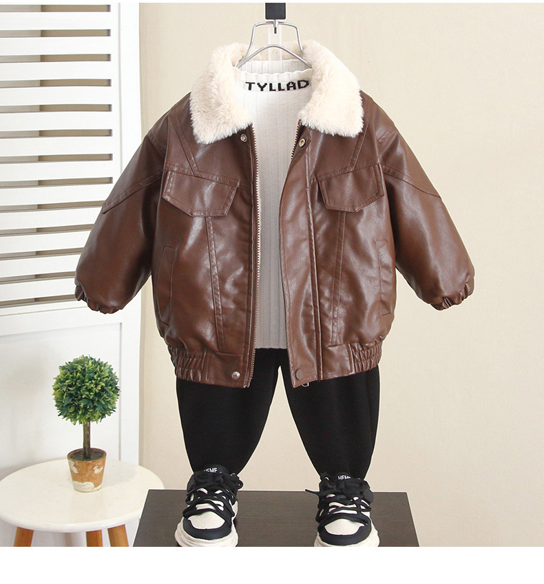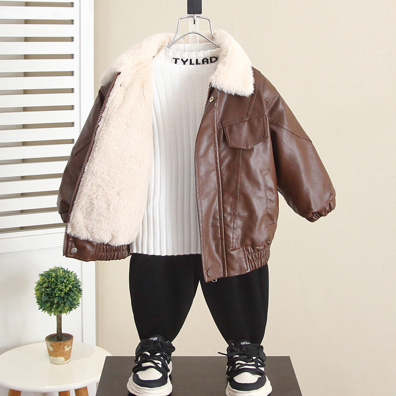 6758 소년 가을과 겨울 기모 가죽 코트 2024 새로운 어린이 ruffian 잘 생긴 가죽 자켓 겨울 아기 두꺼운스토어 가기