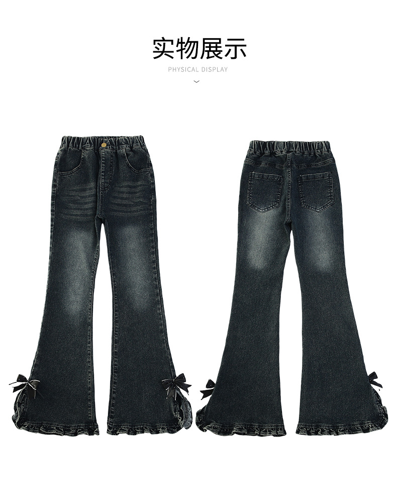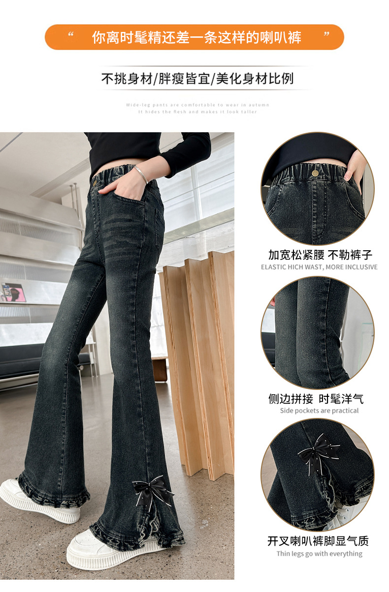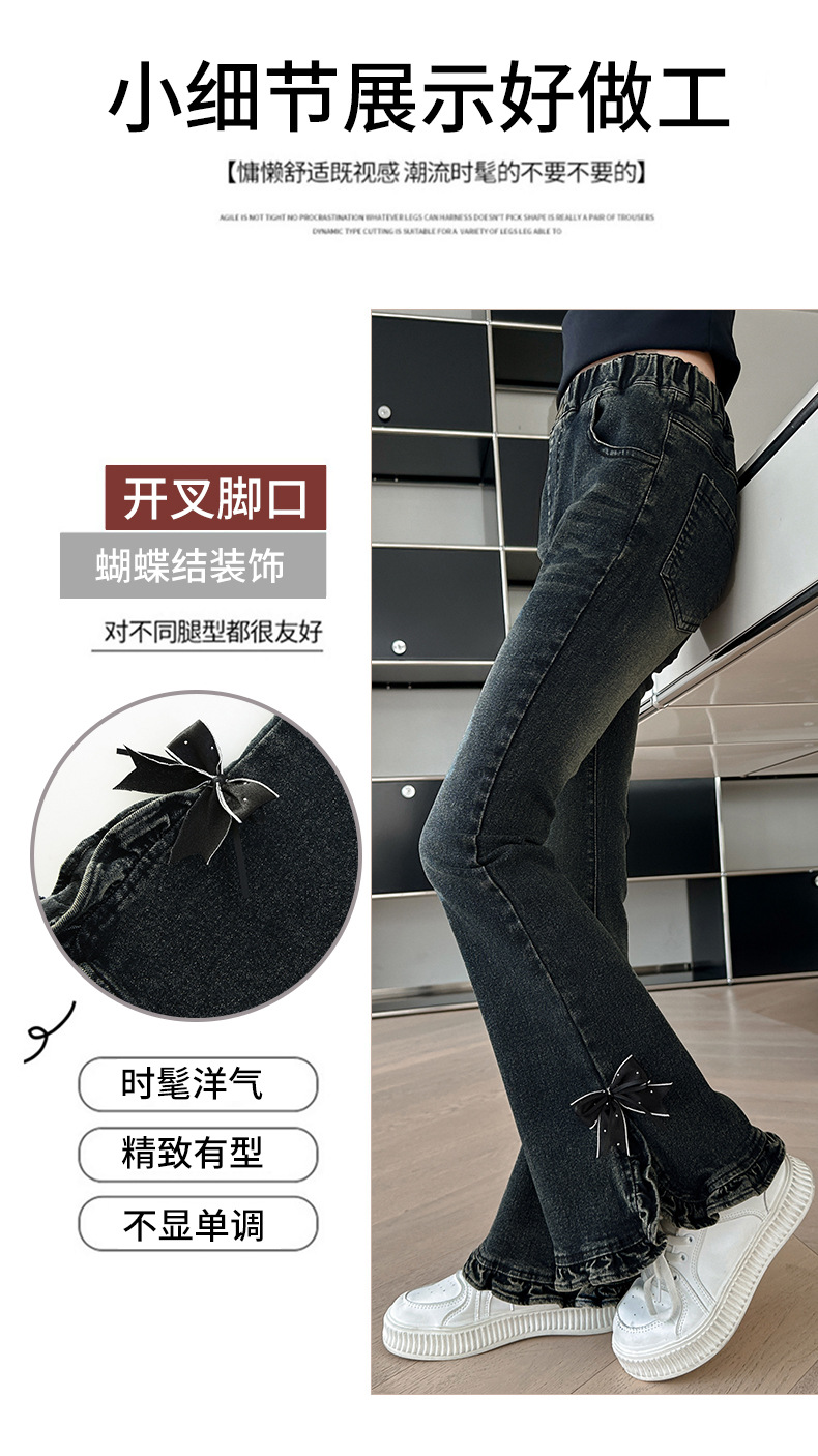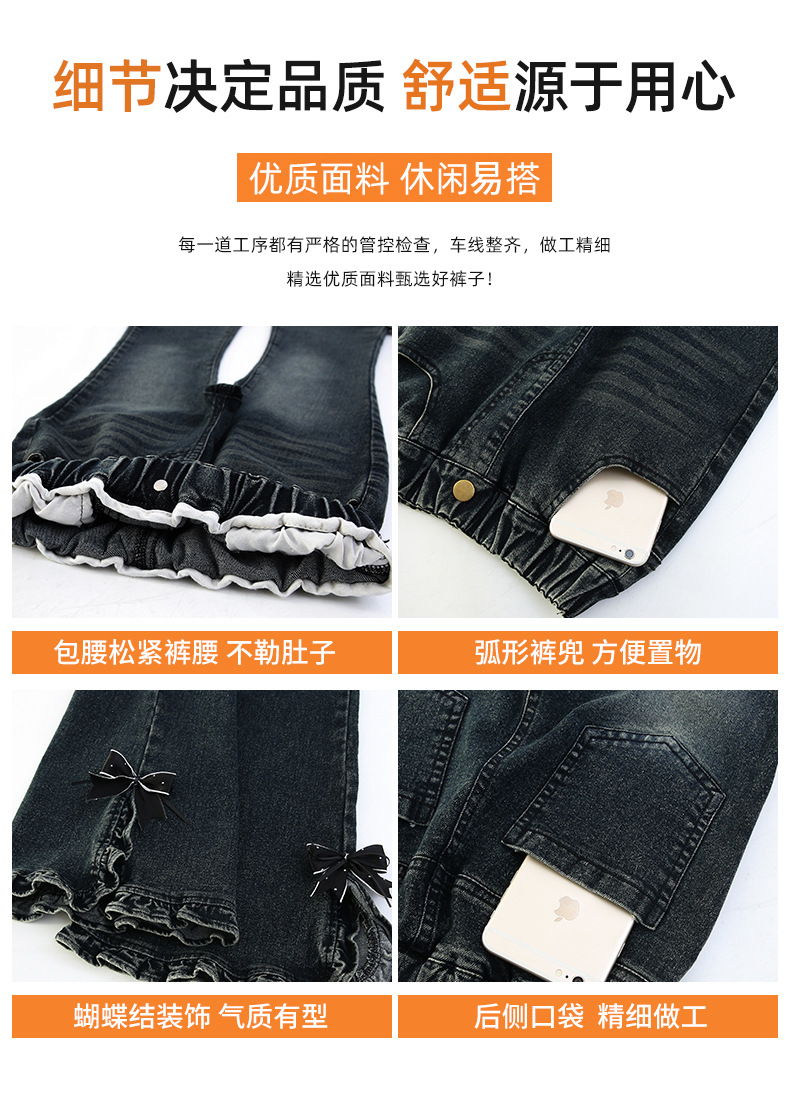 소녀 기모 가을 및 겨울 새로운 대형 어린이 두꺼운 원피스 슬림 바지 외국식 어린이 청바지스토어 가기